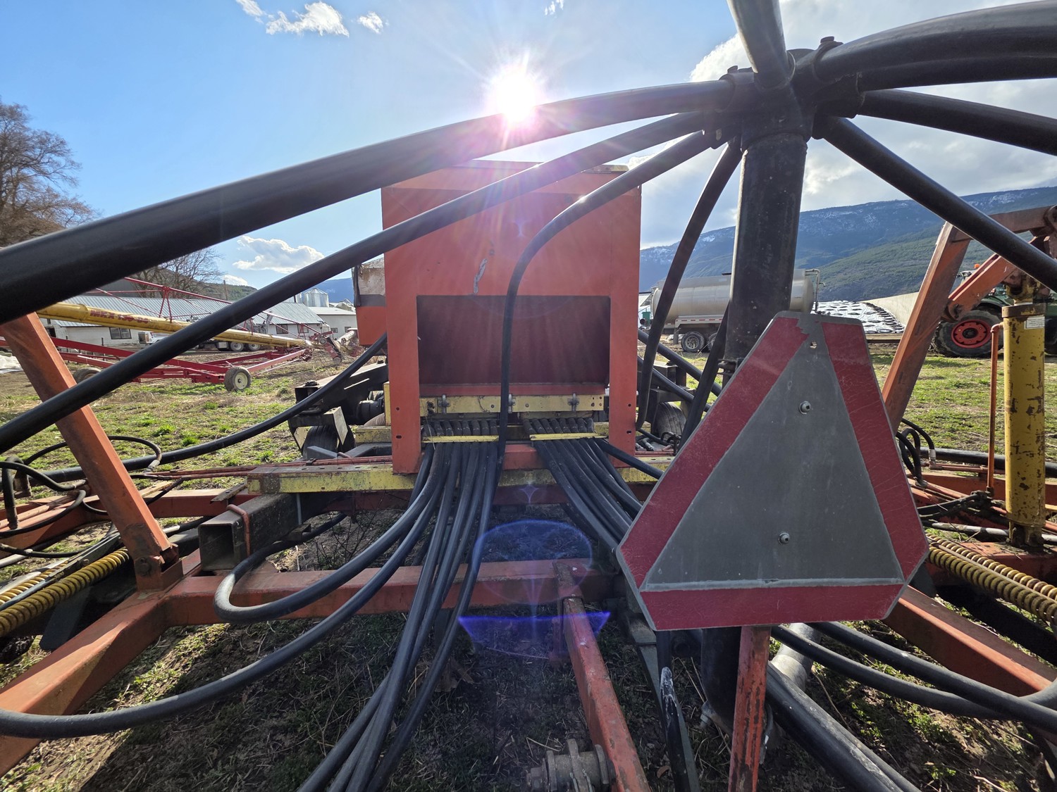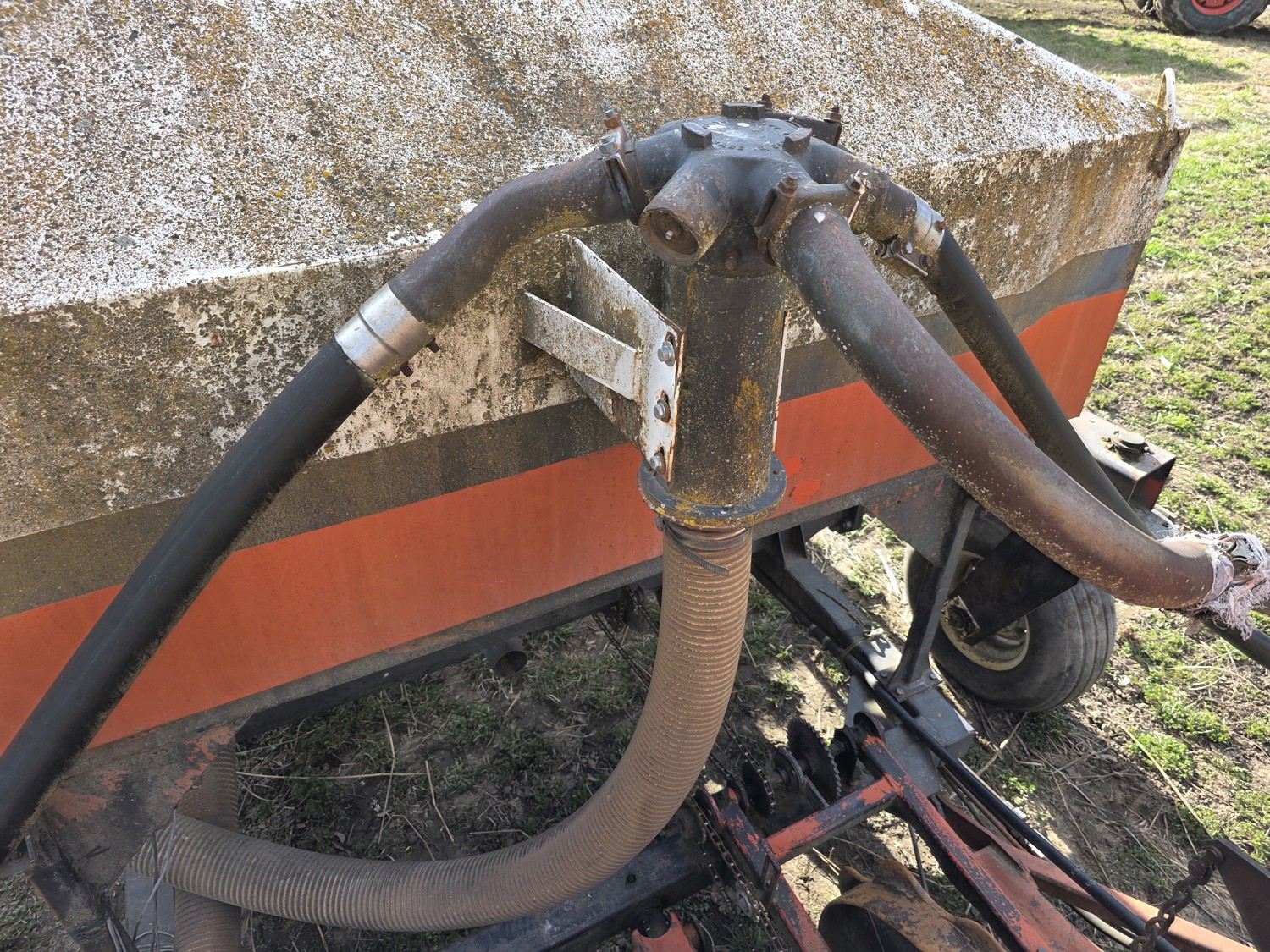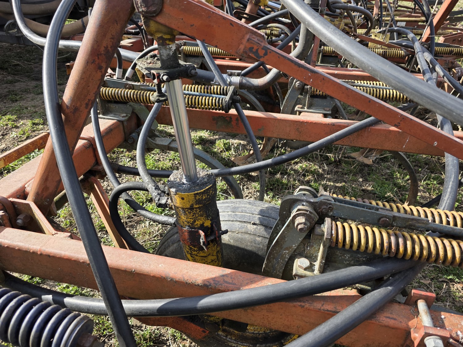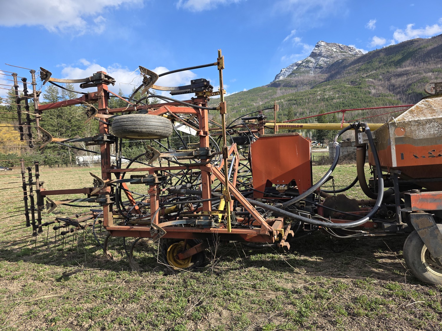 Air Cart: 2 compartments, 28.6' wide with 12.7 inch spacing between harrow tines, 11L-15SL front tires, 11L-15SL rear tires