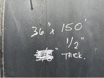 150 ft length x 36 inches, 1/2 inch thickness