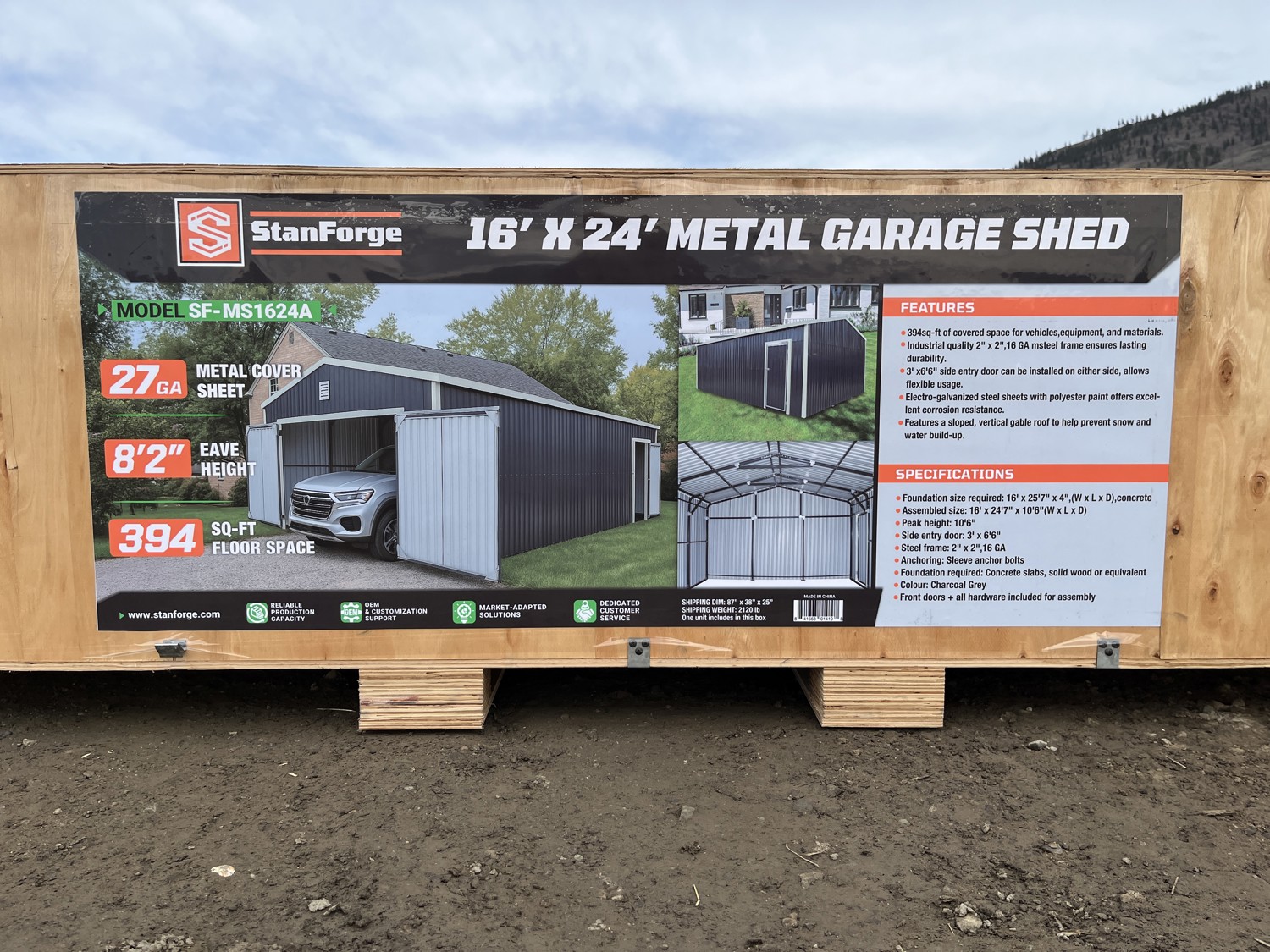 StanForge-MS1624 16 Ft X 24 Ft Metal Garage Shed with Double Front Doors (Unused)