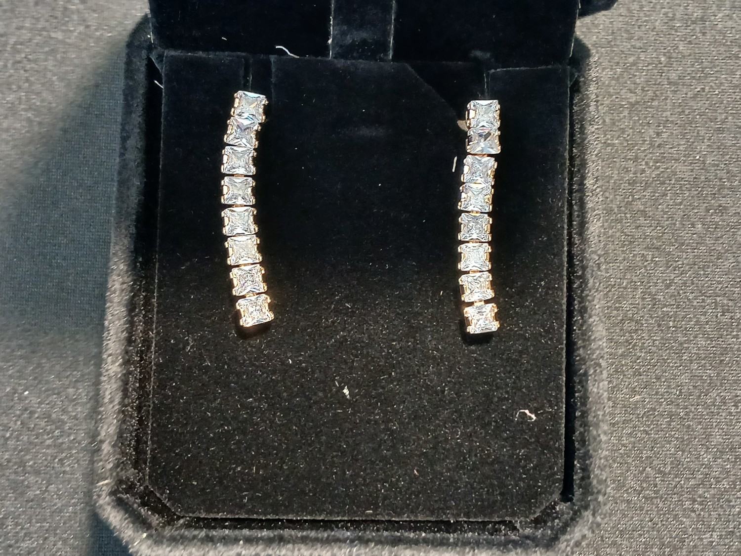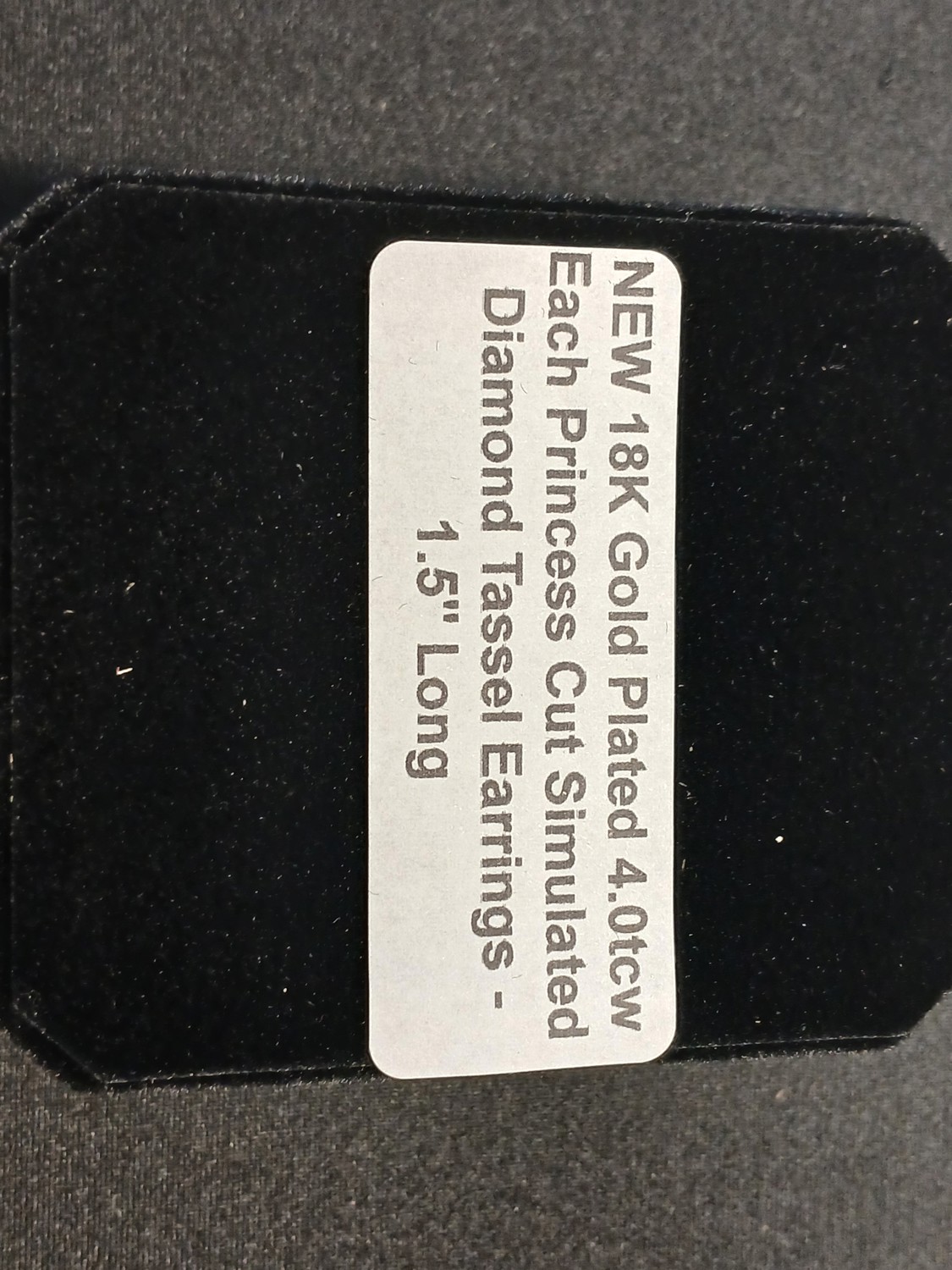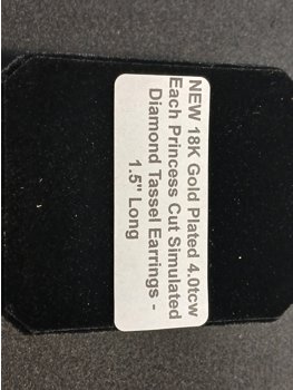 Gold plated, 4.0 ct Princess cut simulated diamonds (CZ), 1.5 inch length