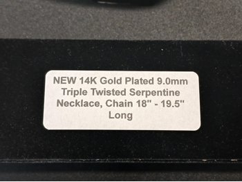 18K gold plated, 18in -19.5in long (has leader), lobster style latch.