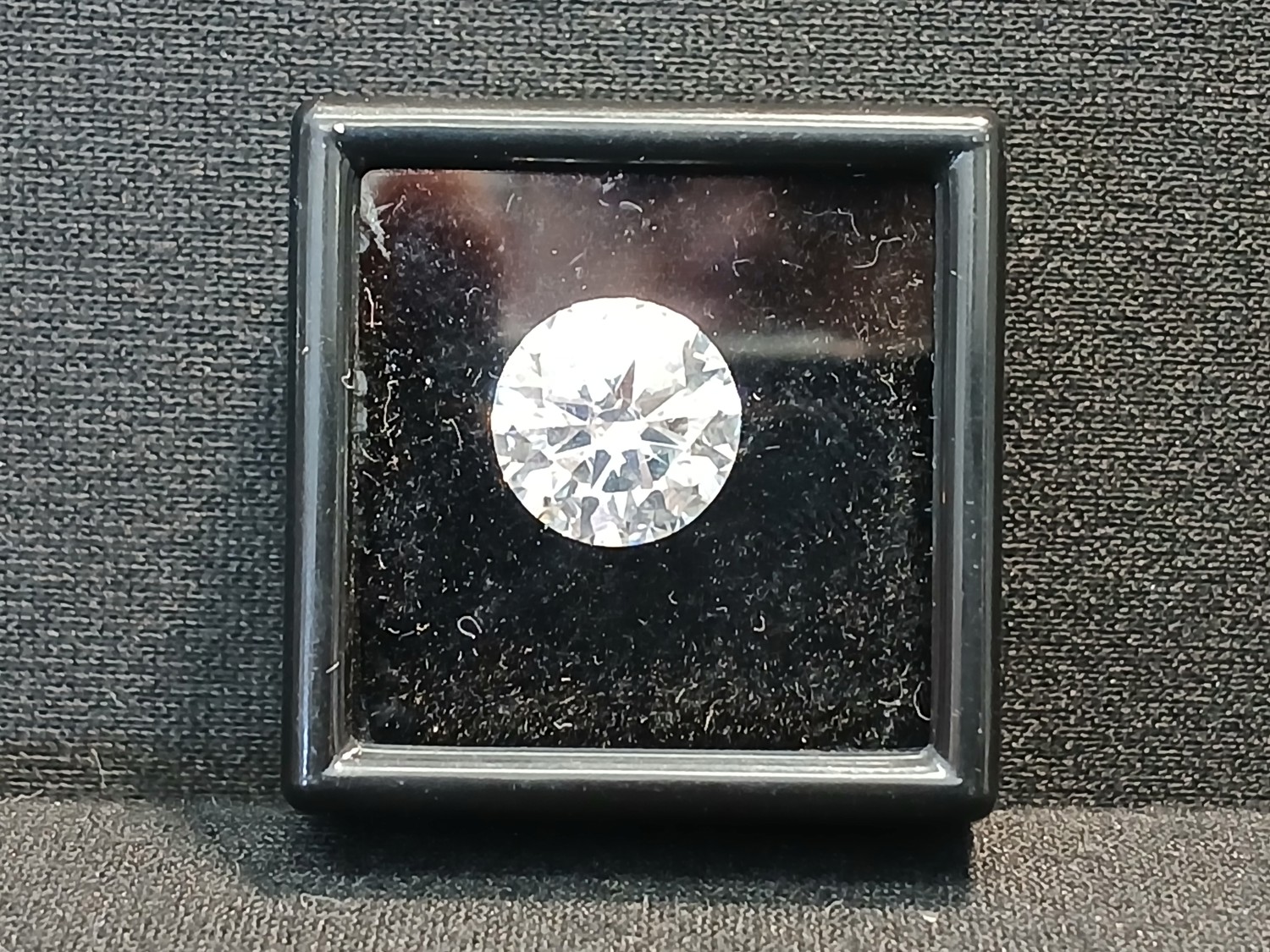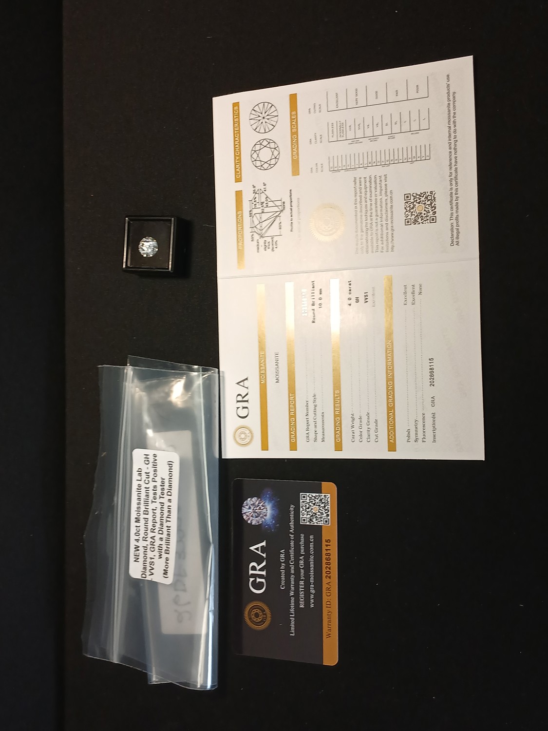 Round brilliant cut, GH-VVS1, GRA report, tests positive with diamond tester.
