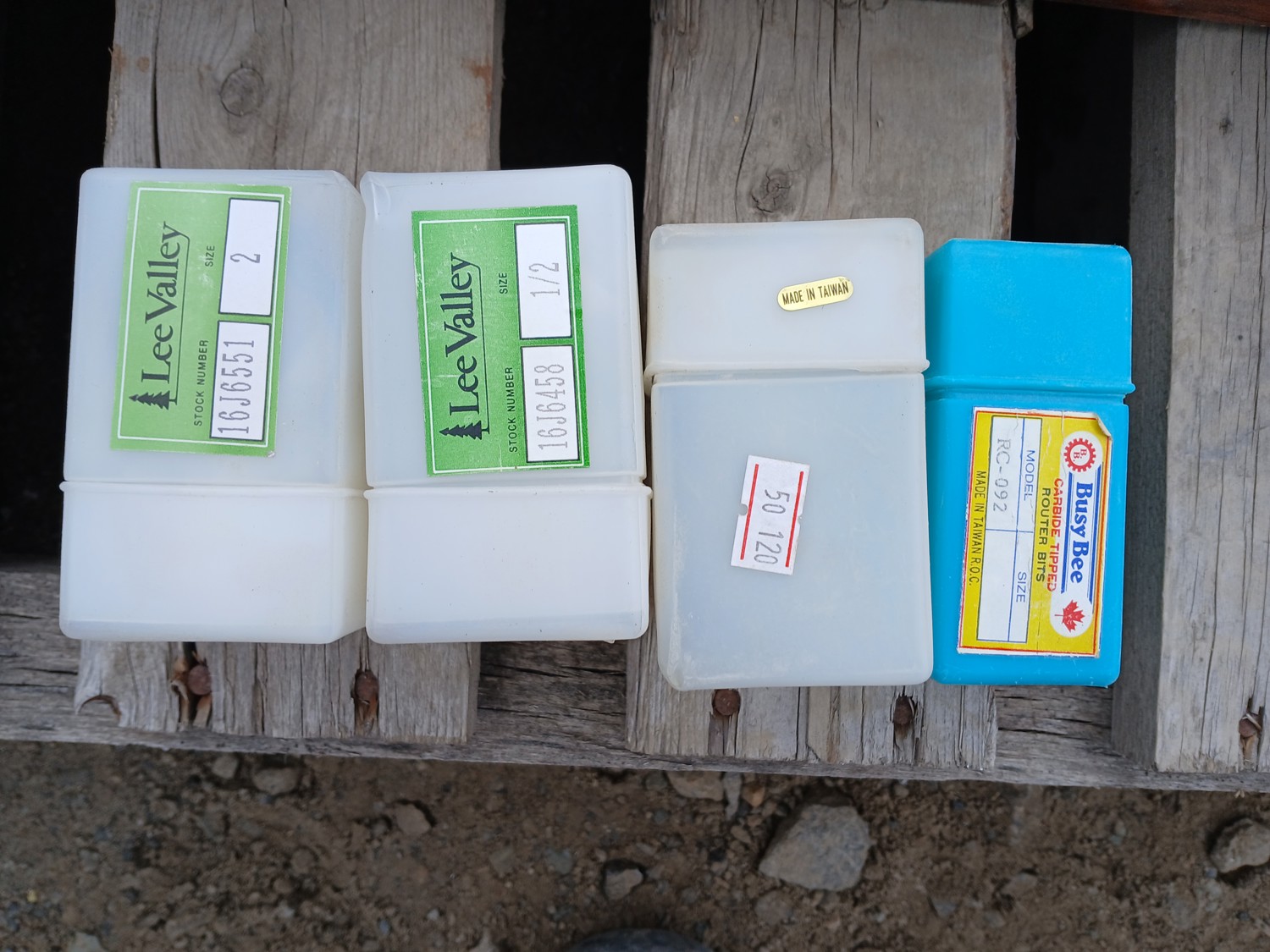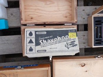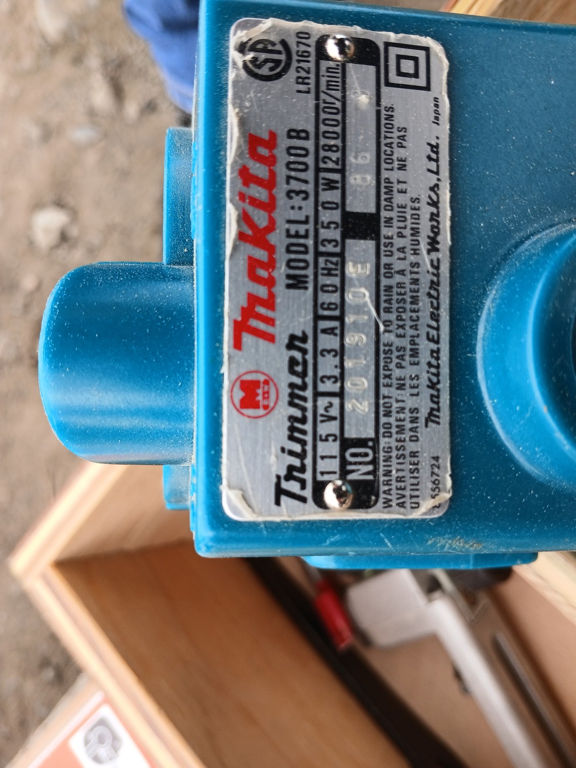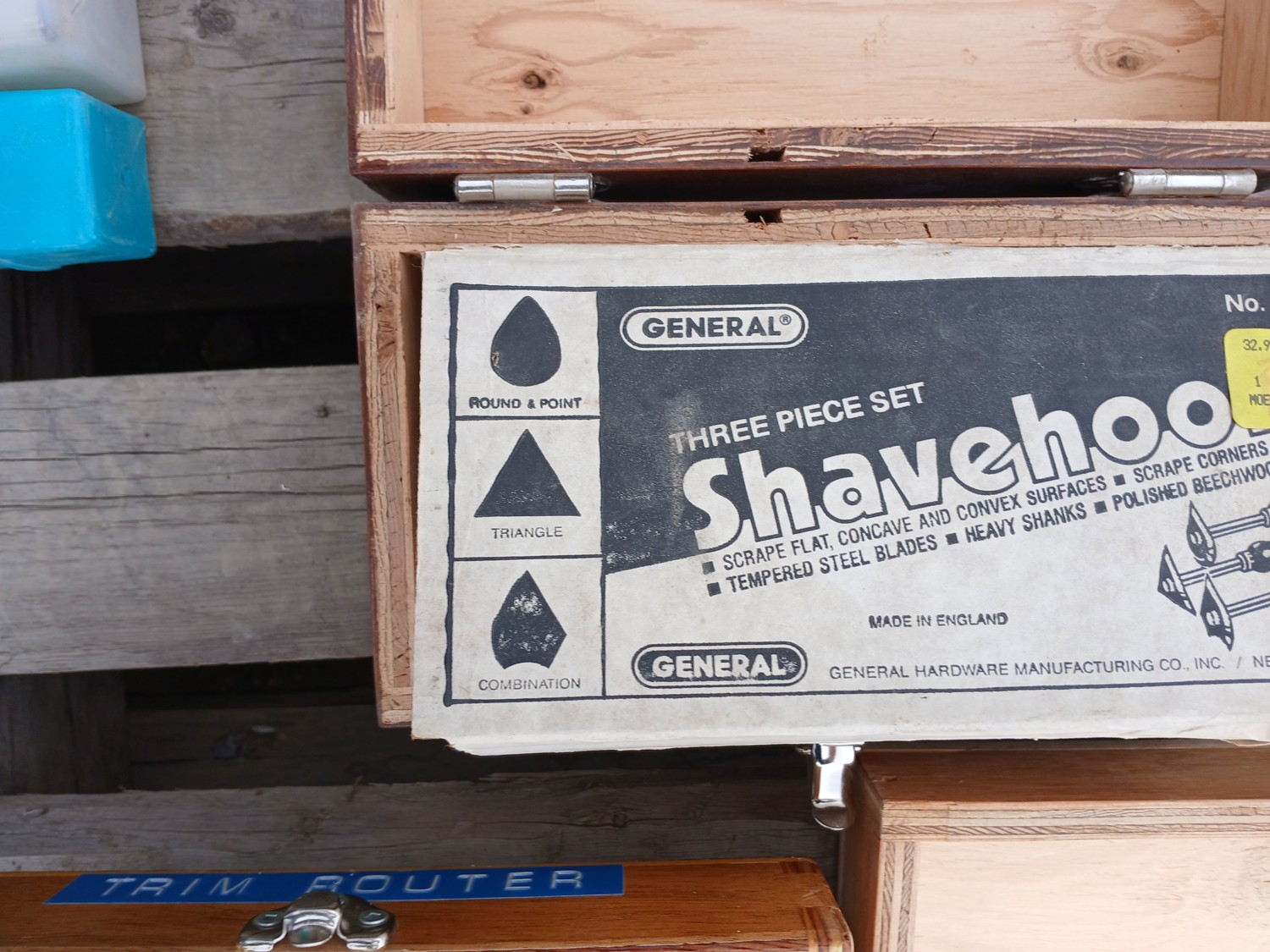 (1) 3 piece Shaver Hook set, (1) Makita 3700B Laminate Trimmer. , with numerous bits, (1) Vice, (1) Job saving tool, (1) Veritas cabinet making kit, (1) 2piece Remington power hammer set, (1) Flaring tool set.