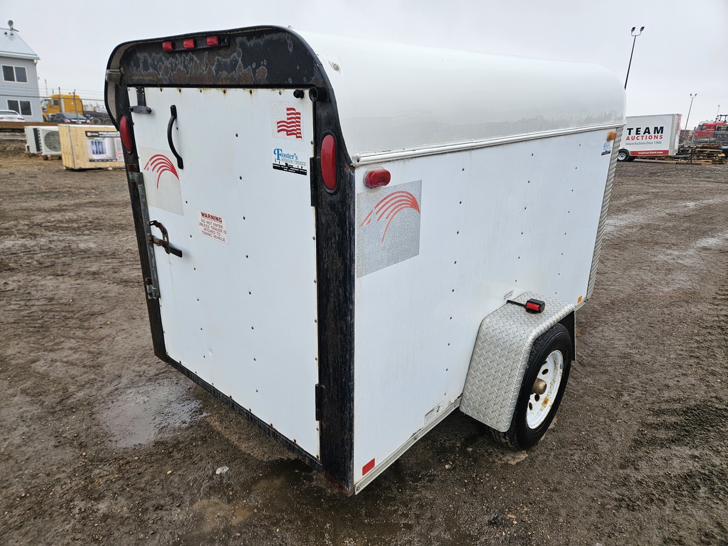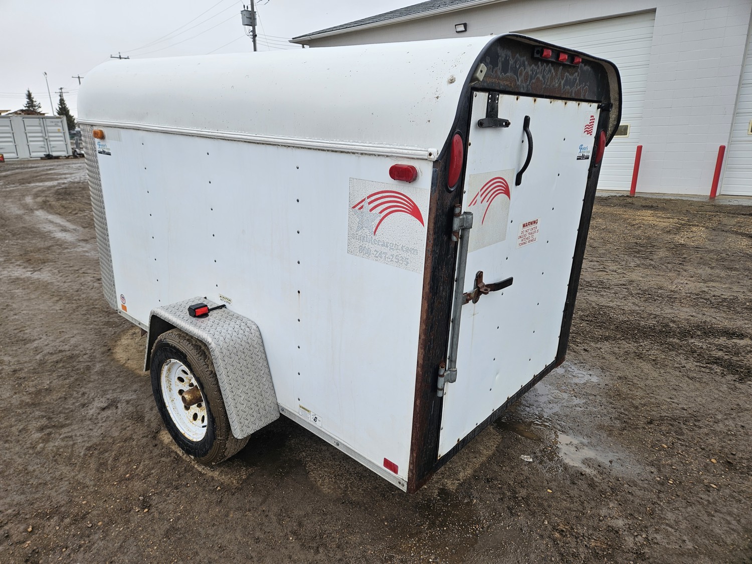 57 inch interior width, 60 inch interior height, ball hitch, fold down door, spring suspension, 215/75R15 tires