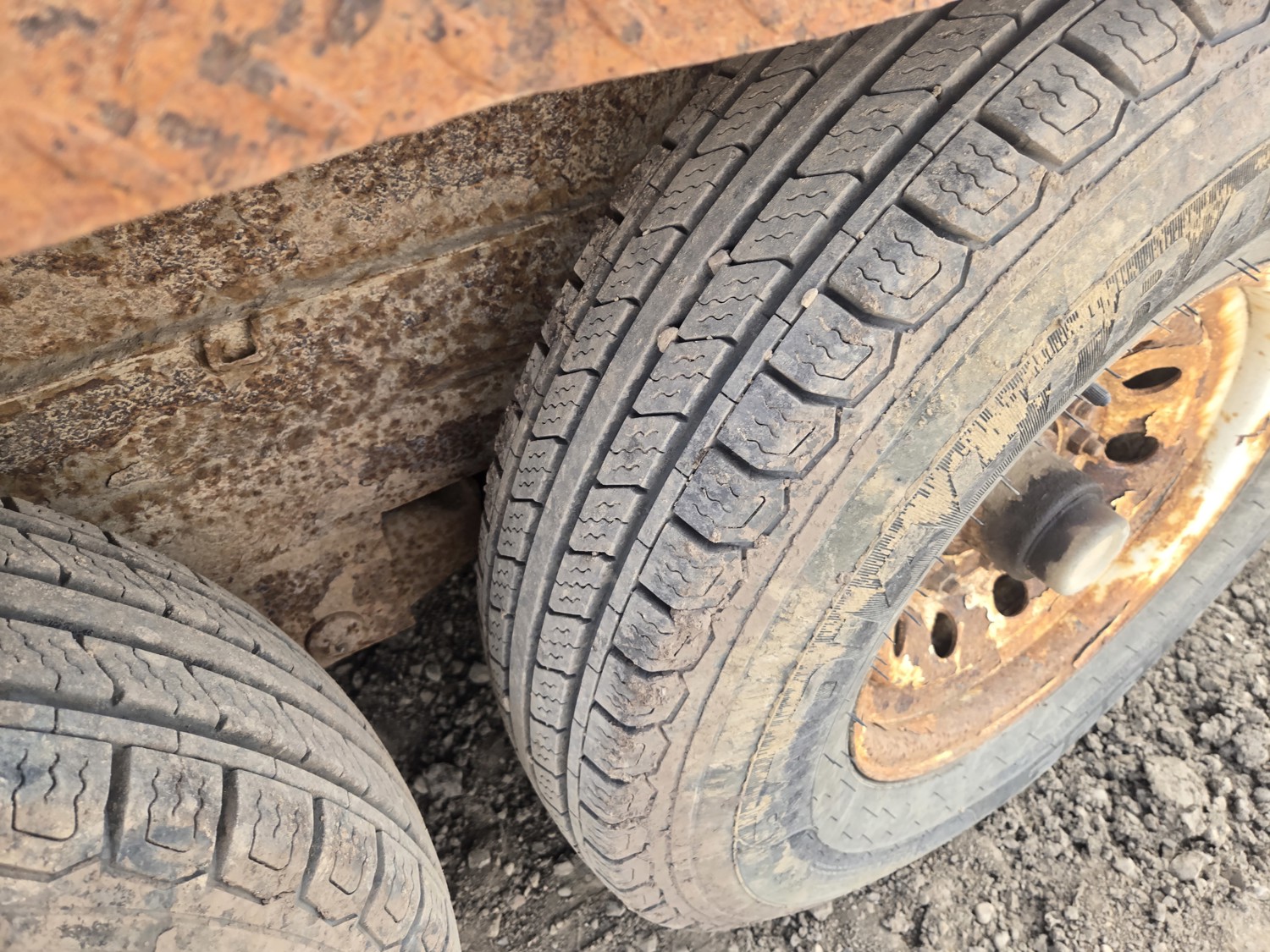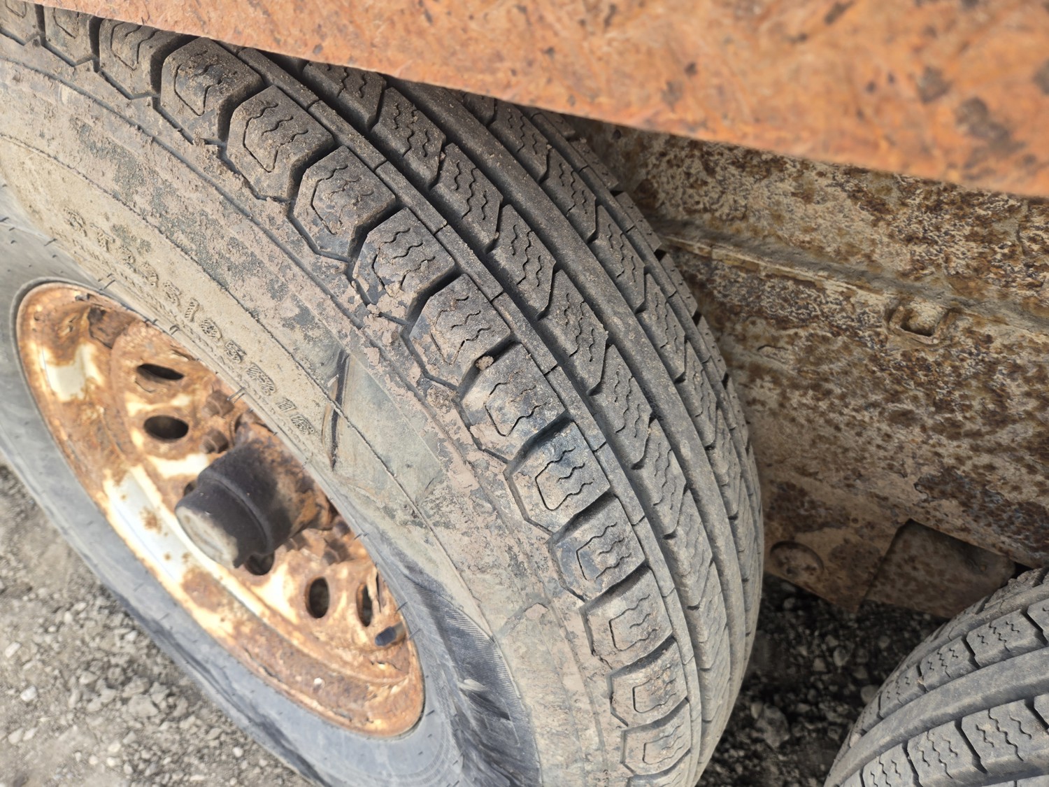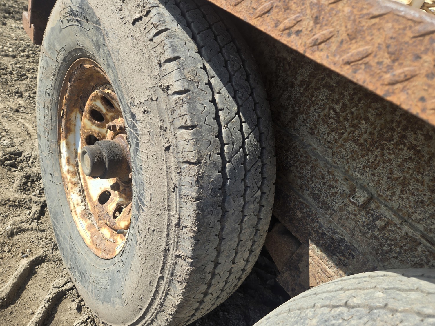 80 inch wide deck, wood deck, electric brakes, spring suspension, rub rails, stake pockets, pintle hitch, 6 ft wide X 12 ft long metal mesh rack, 7000 lb axles, 235/80R16 tires