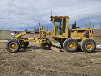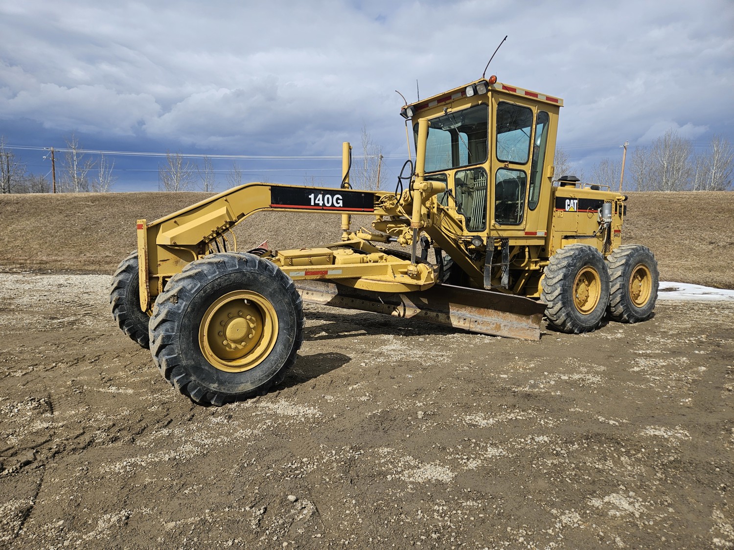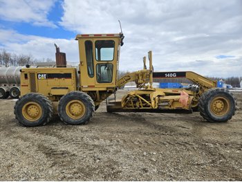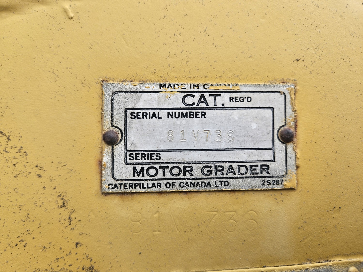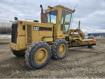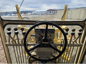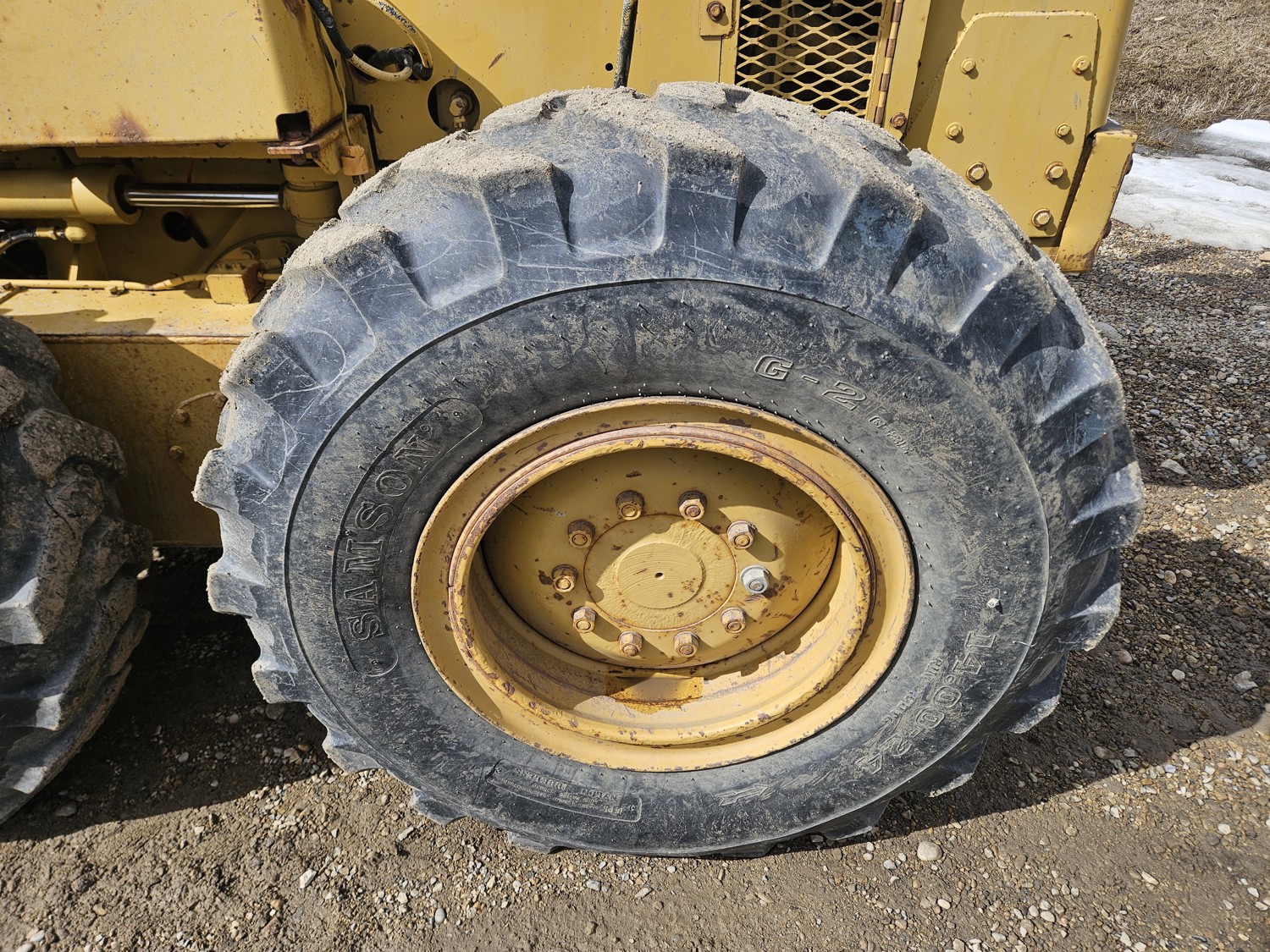 Enclosed cab, 6 cylinder diesel engine, 6 speed transmission, radio, 14 Ft moldboard, 14.00-24 tires