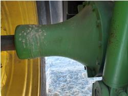 John Deere TURBOCHARGED DIESEL 466 cu in 6 cylinder 180 HP, diesel engine, 202 hp PTO HP, 16 speed power shift transmission, 30 GPM hydraulic pump, cab, ROPS, A/C, radio, air ride seat, Front Weight Bracket, Front Fenders, 1000 PTO, 3 point hitch, 3 rear hydraulic outlets, Comes with Factory 3Pt Hitch Toplink, , 420/85R30 front tires, 20.8R42 dual rear tires, BKT Tires, comes with original operators manual