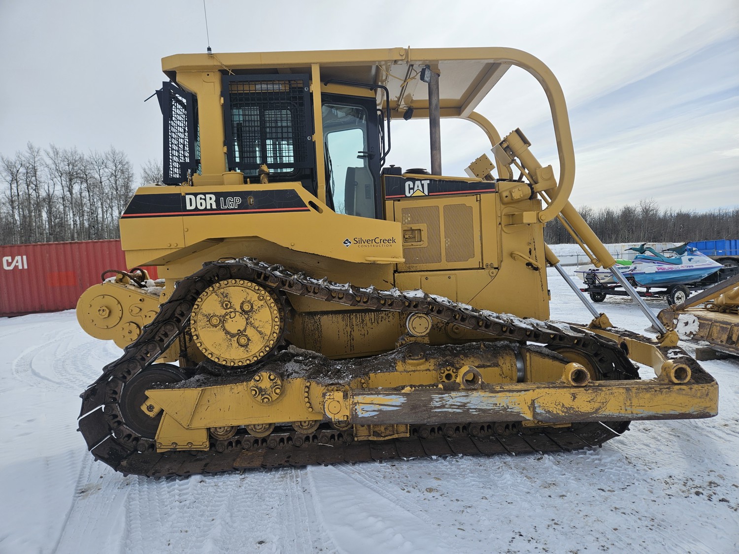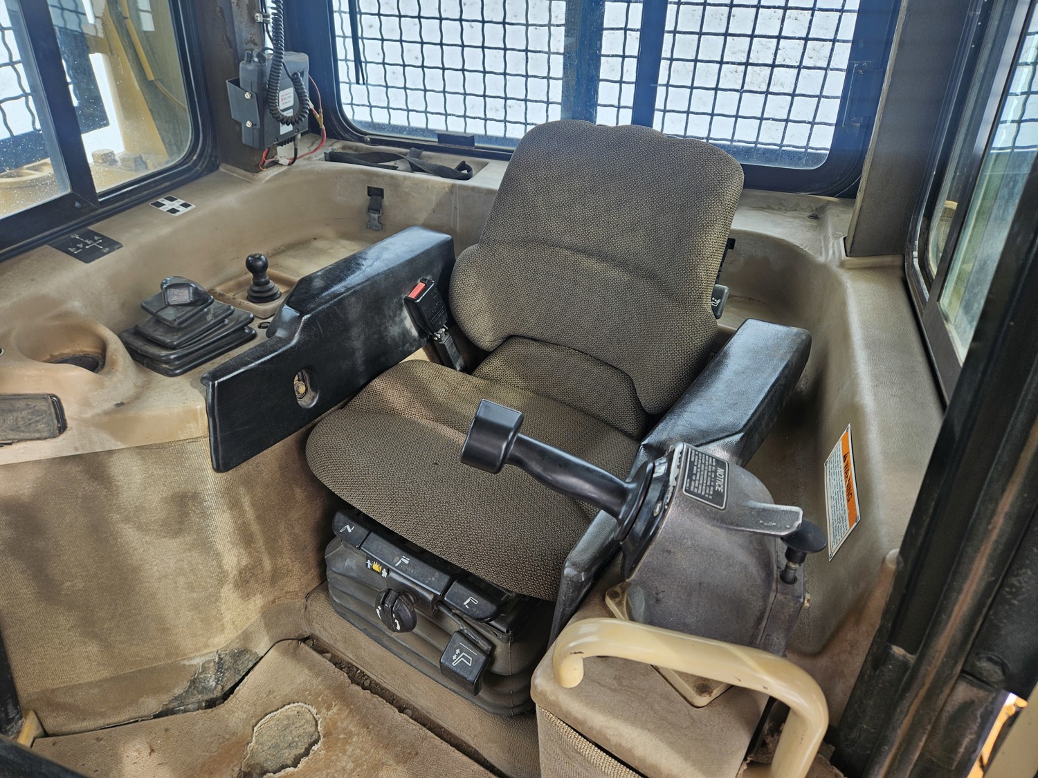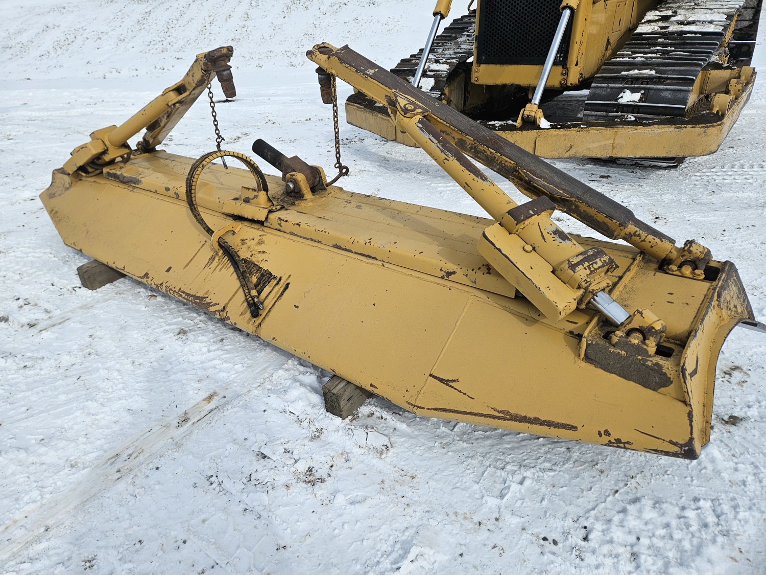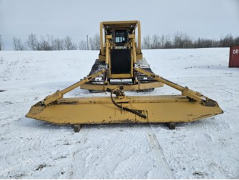 Enclosed cab, CAT 3306 diesel engine, 3 speed powershift transmission, brush sweeps, cab screens, heat, radio, full ROPS canopy, 15 Ft twin tilt angle dozer, winch, 31 inch track pads, single grousers