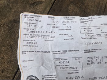 Copy of registration on hand. - Sales Rep: