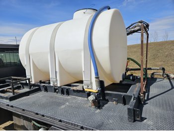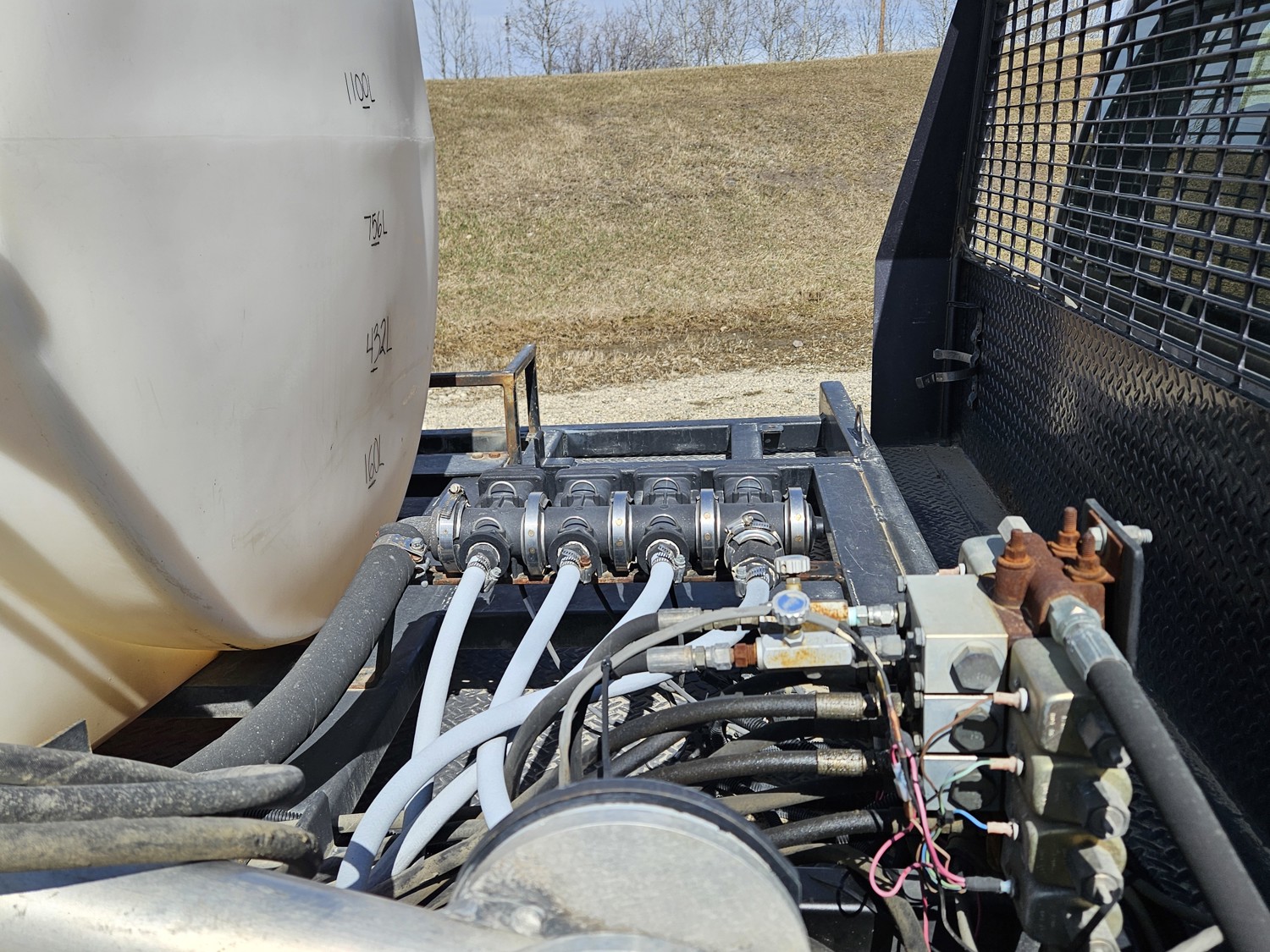 6.0L V8 diesel engine, automatic transmission, 13 ft x 8 ft Falcan deck, 15 ft spray boom, 2010 poly tank, hydraulic pump, hose reel, tool boxes, 225/70R19.5 tires