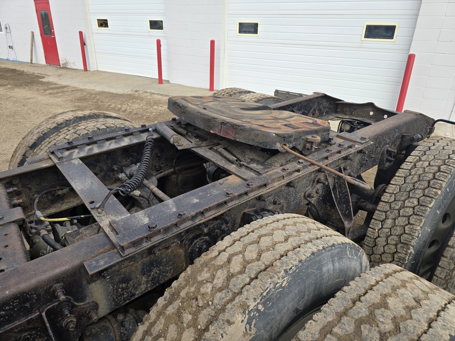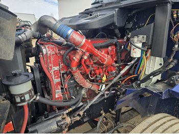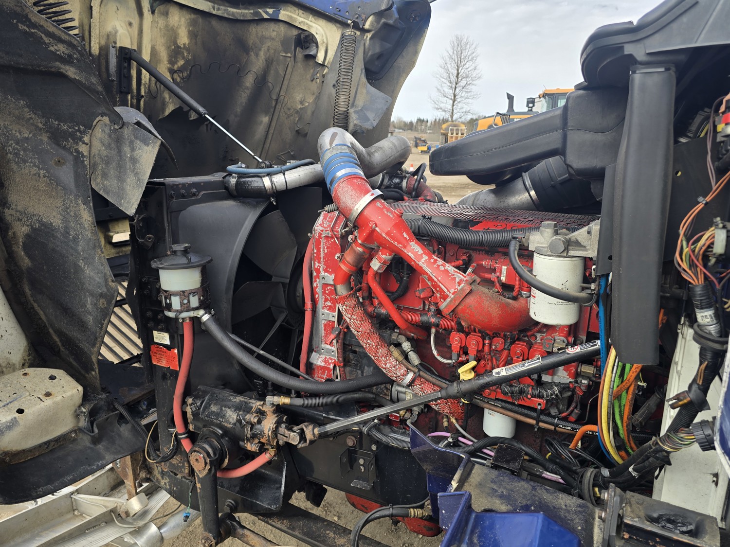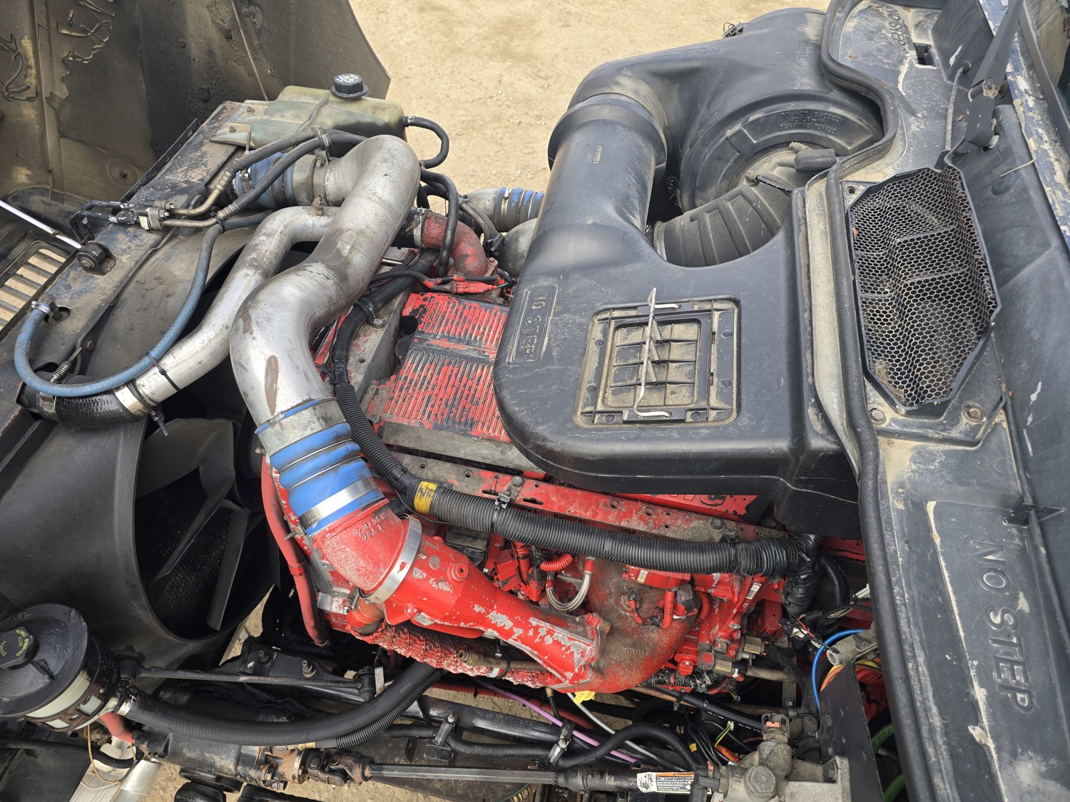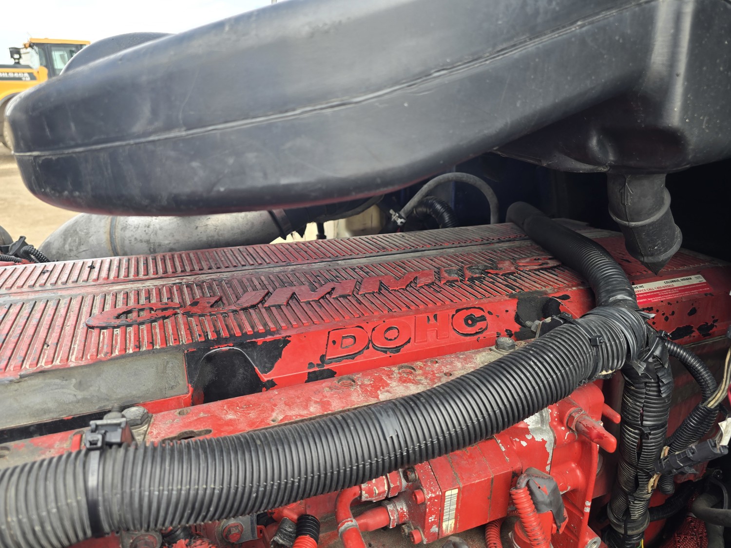 Cummins ISX15 15 L 6 cylinder engine, engine block heater, Eaton Fuller 18 speed manual transmission, high rise 62 inch sleeper, bunk beds, A/C, cruise control, air ride seats, stereo, aluminum moose bumper, air ride cab, air ride suspension, 12,000 lb front axle, 40,000 lb rear axles, diff lock, 218 inch WB, all aluminum wheels, 11R24.5 tires