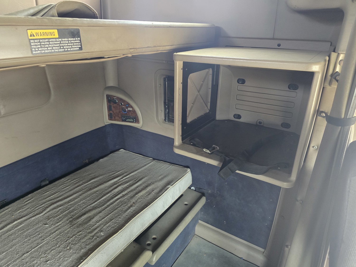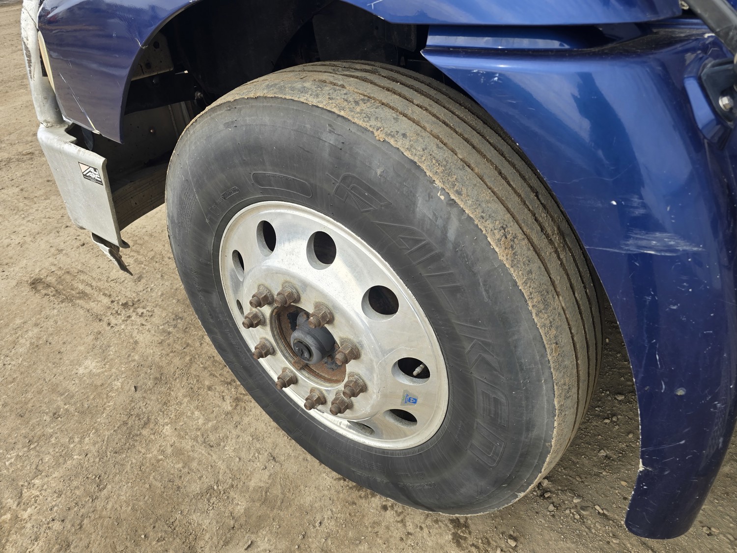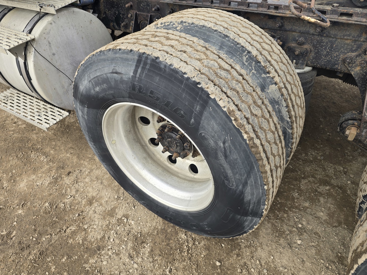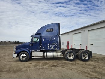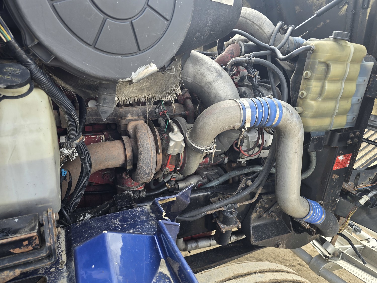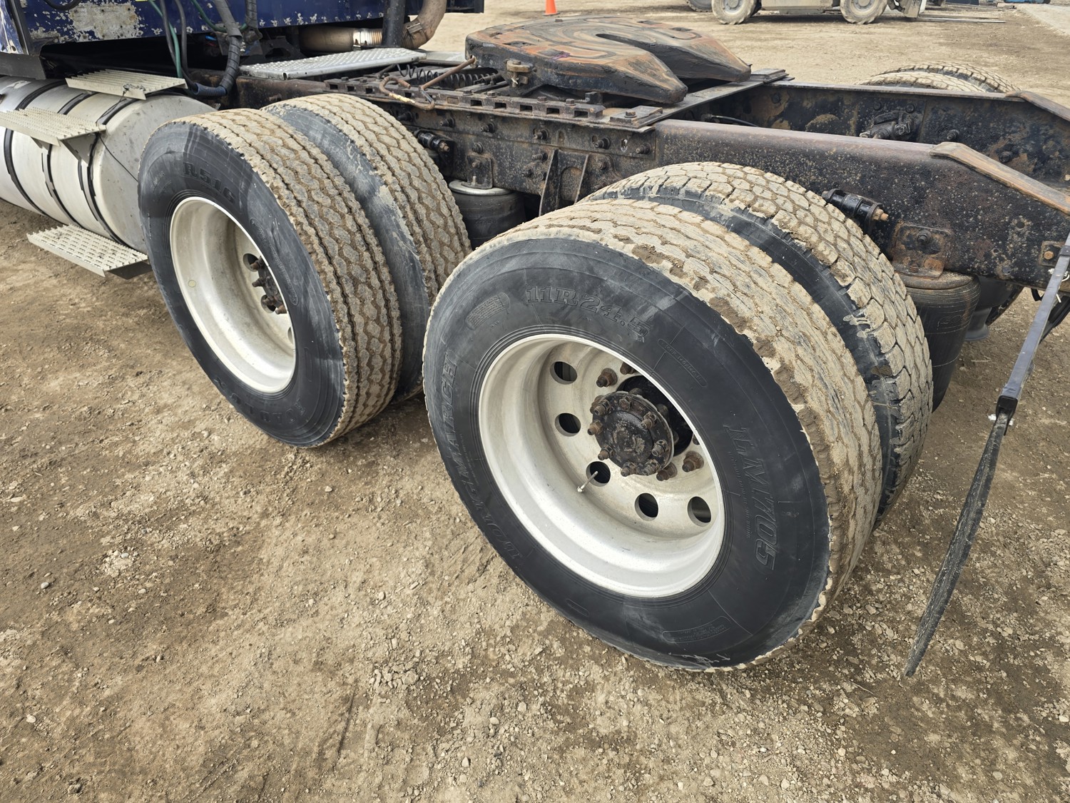 Cummins ISX15 15 L 6 cylinder engine, engine block heater, Eaton Fuller 18 speed manual transmission, high rise 62 inch sleeper, bunk beds, A/C, cruise control, air ride seats, stereo, aluminum moose bumper, air ride cab, air ride suspension, 12,000 lb front axle, 40,000 lb rear axles, diff lock, 218 inch WB, all aluminum wheels, 11R24.5 tires