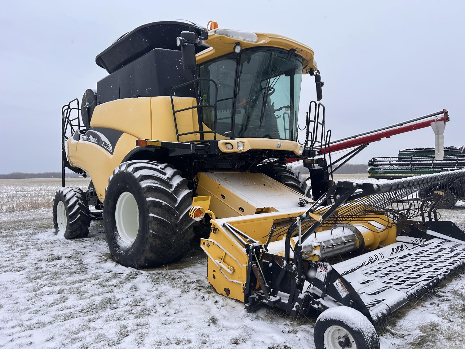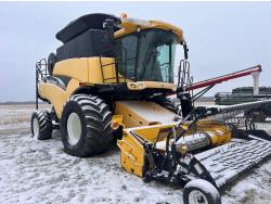 2005 New Holland pickup 15 ft pick-up header, auto header height, rock trap, yield & moisture, chaff spreader, chopper/straw spreader, grain tank extensions, Michaels Hopper toper , A/C, upgraded stereo, air ride seat, buddy seat, No GPS Receiver, 900/60R32 front tires, 540/65R30 rear tires