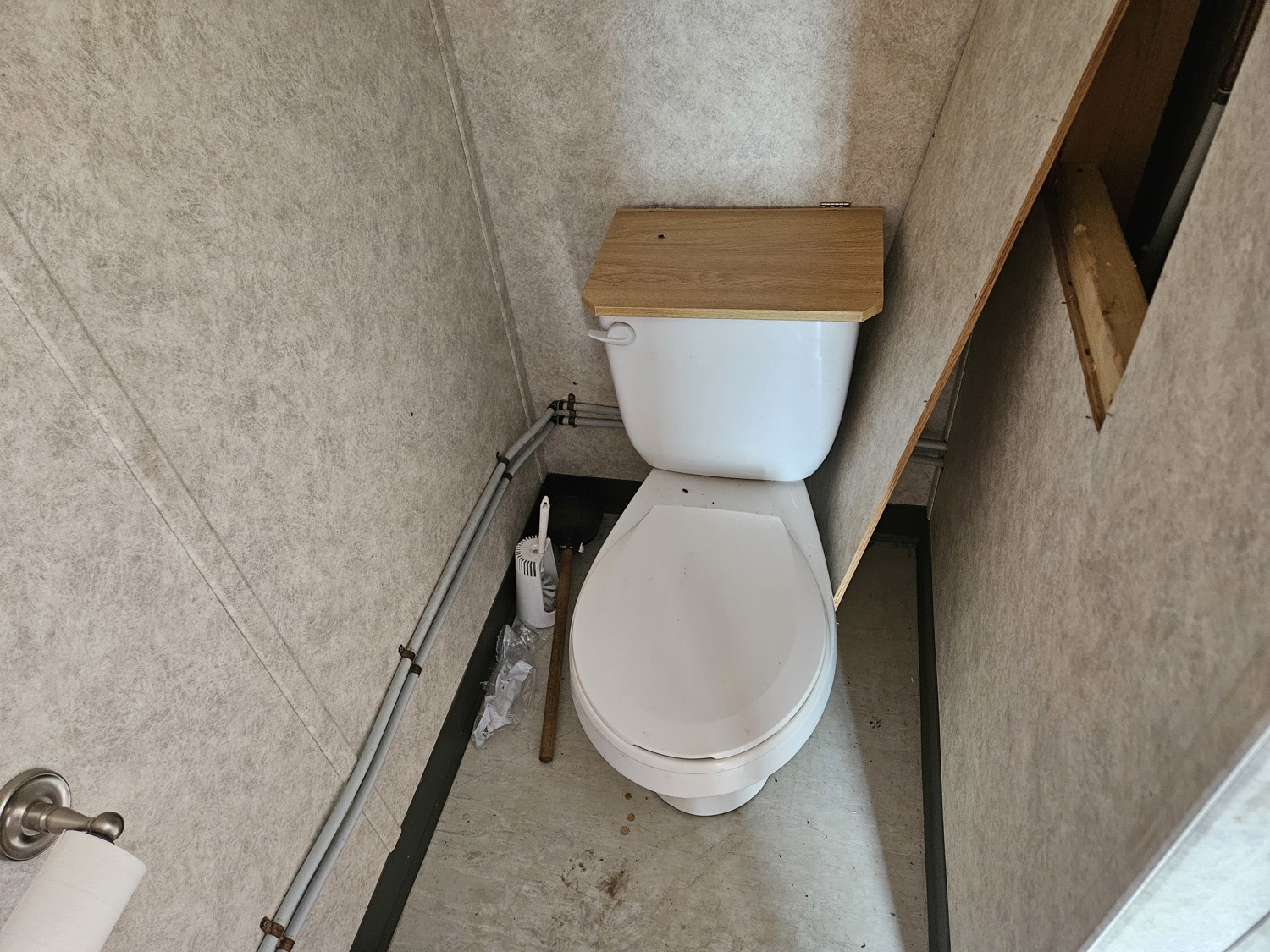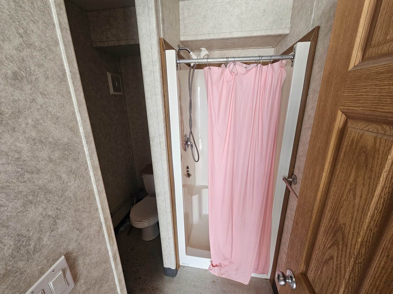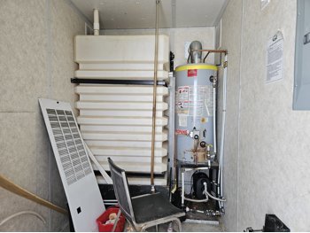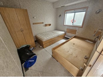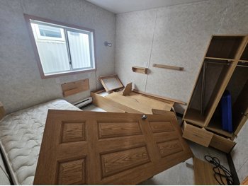 2 compartment, each compartment contains 2 bedrooms w/2 single beds and a full bathroom with shower, toilet and sink, A/C, furnace, hot water tank, water tank.