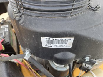 Kawasaki 22 HP twin cylinder gas engine, 50 inch mower deck, (needs new battery) with boost started and run good