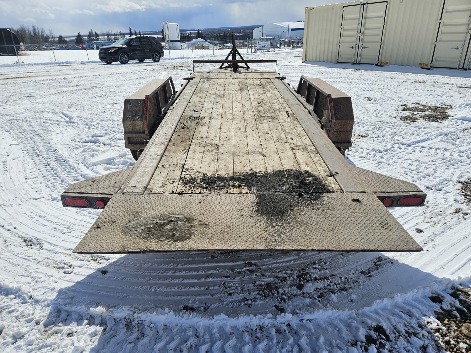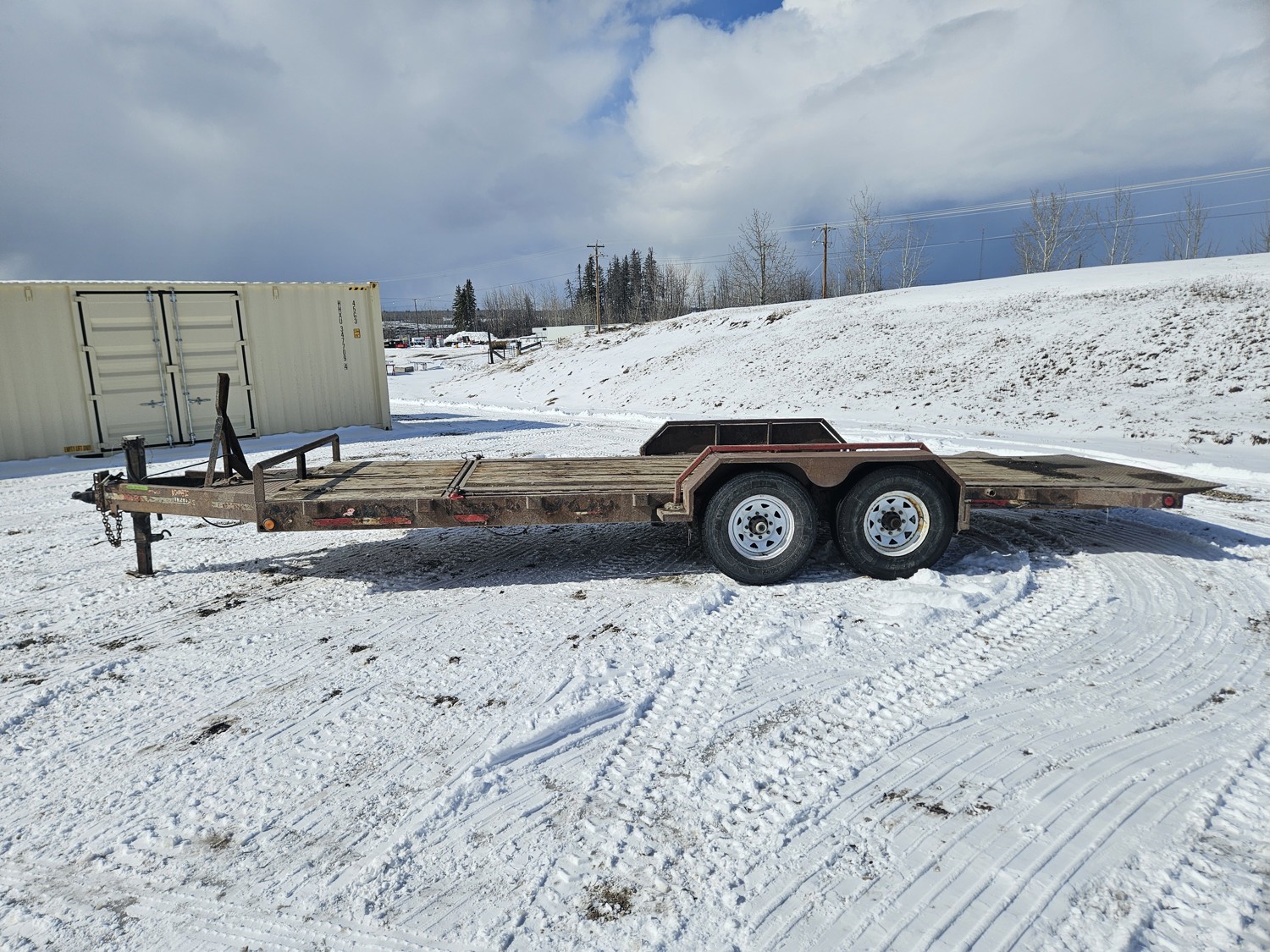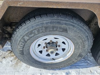 79 inch wide deck, 16 ft tilt deck, wood deck, torsion suspension, ball hitch, tool / storage box, stake pockets, 235/85R16 tires