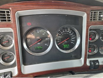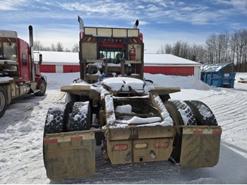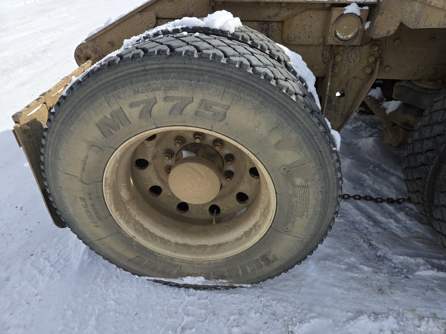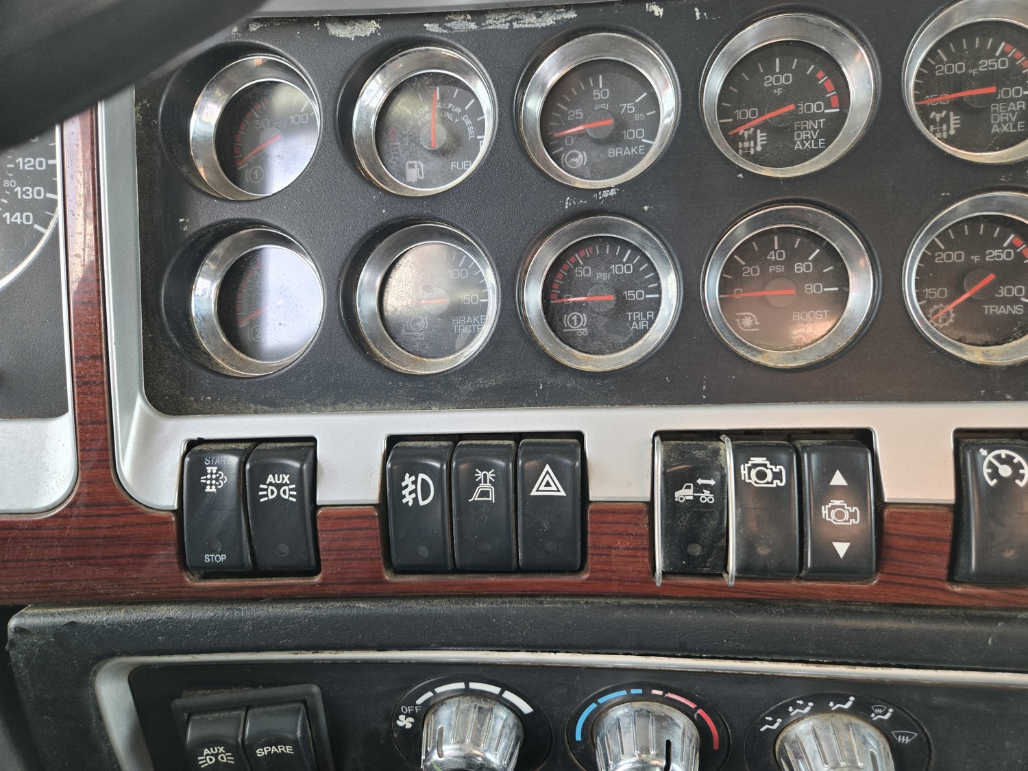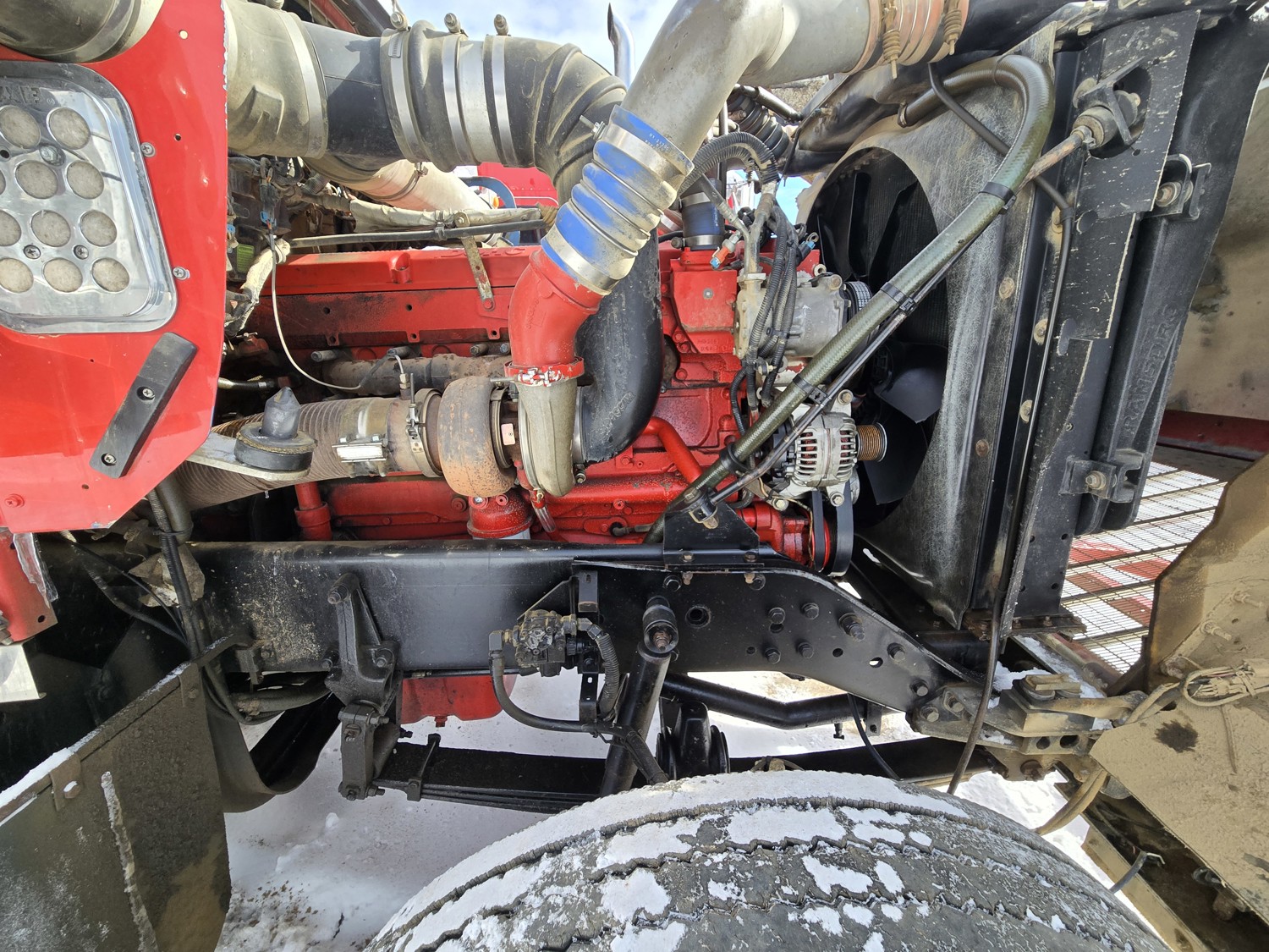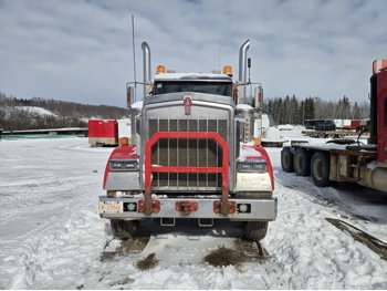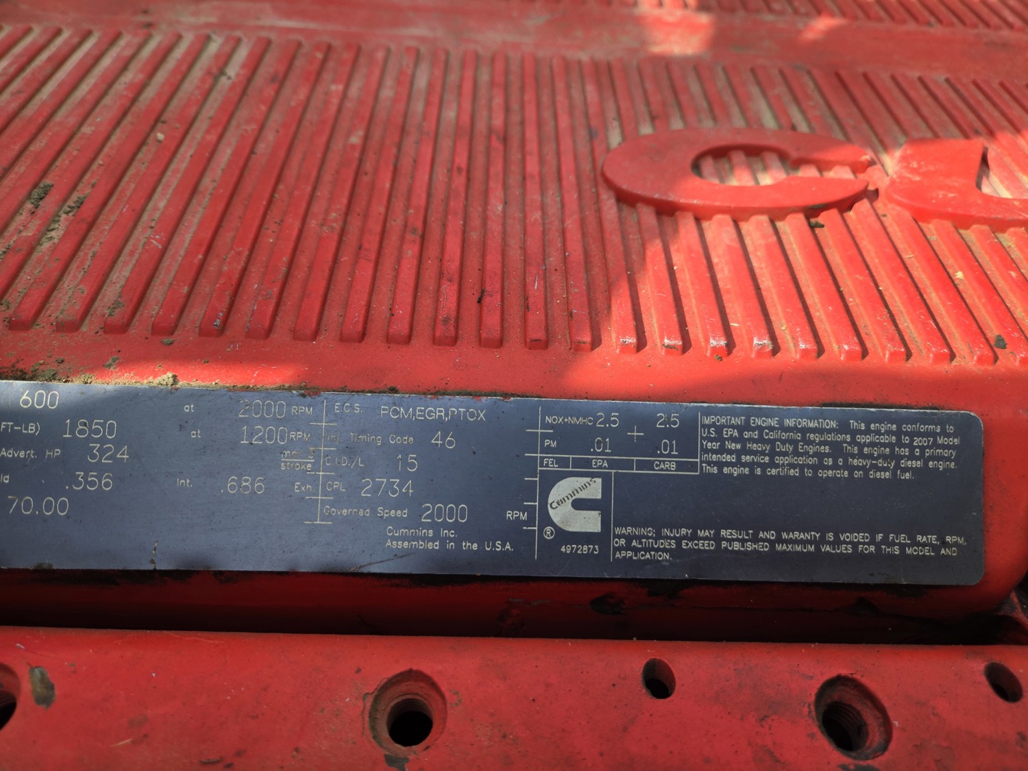 Cummins ISX600 15 6 cylinder 600 HP engine, Eaton Fuller 18 speed manual transmission, mid rise 54 inch sleeper, A/C, leather interior, air ride driver seat, radio, hydraulic wet kit, headache rack, Tulsa hydraulic winch, air ride suspension, 13,200 lb front axle, 46,000 lb rear axles, full lockers, 4:10 ratio, all aluminum wheels, 11R24.5 tires