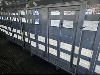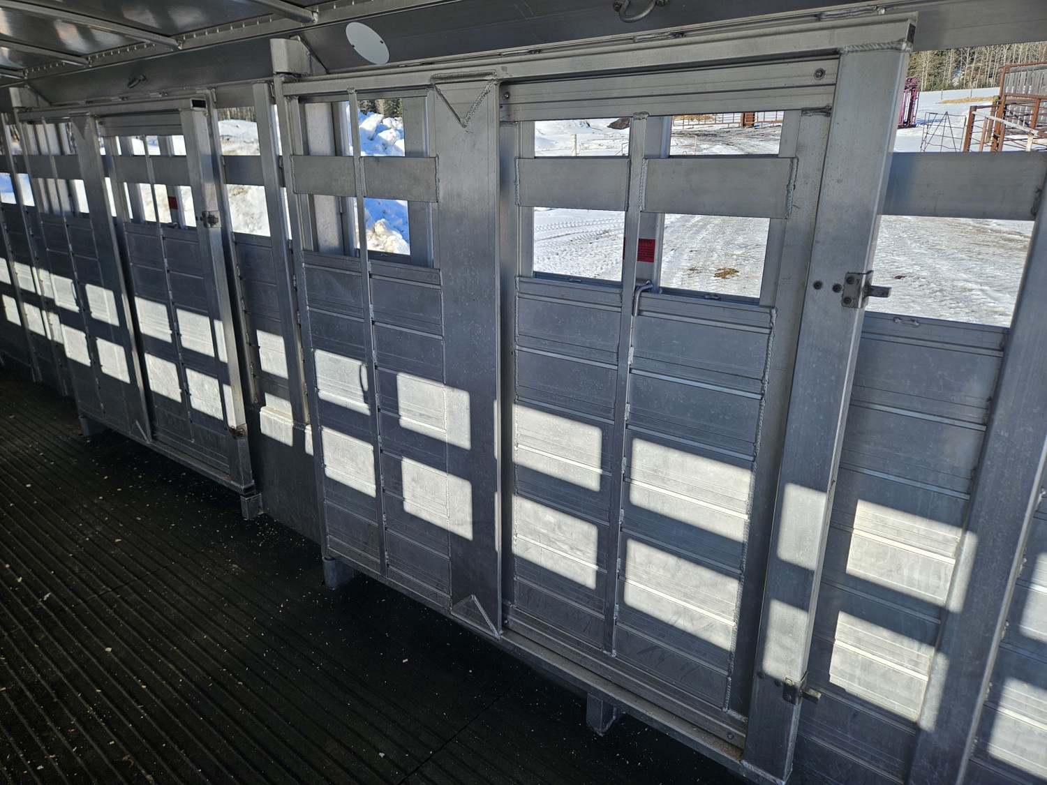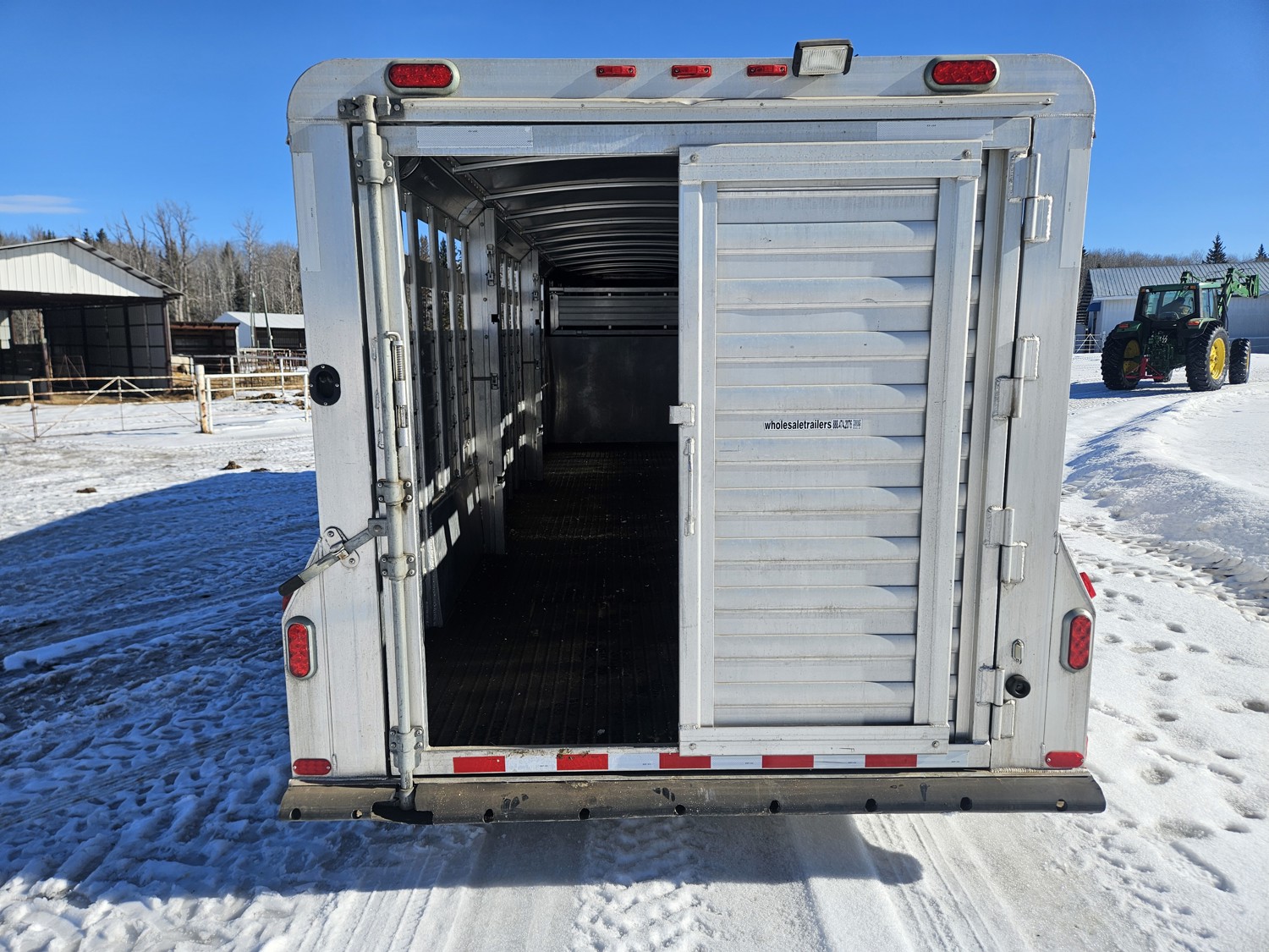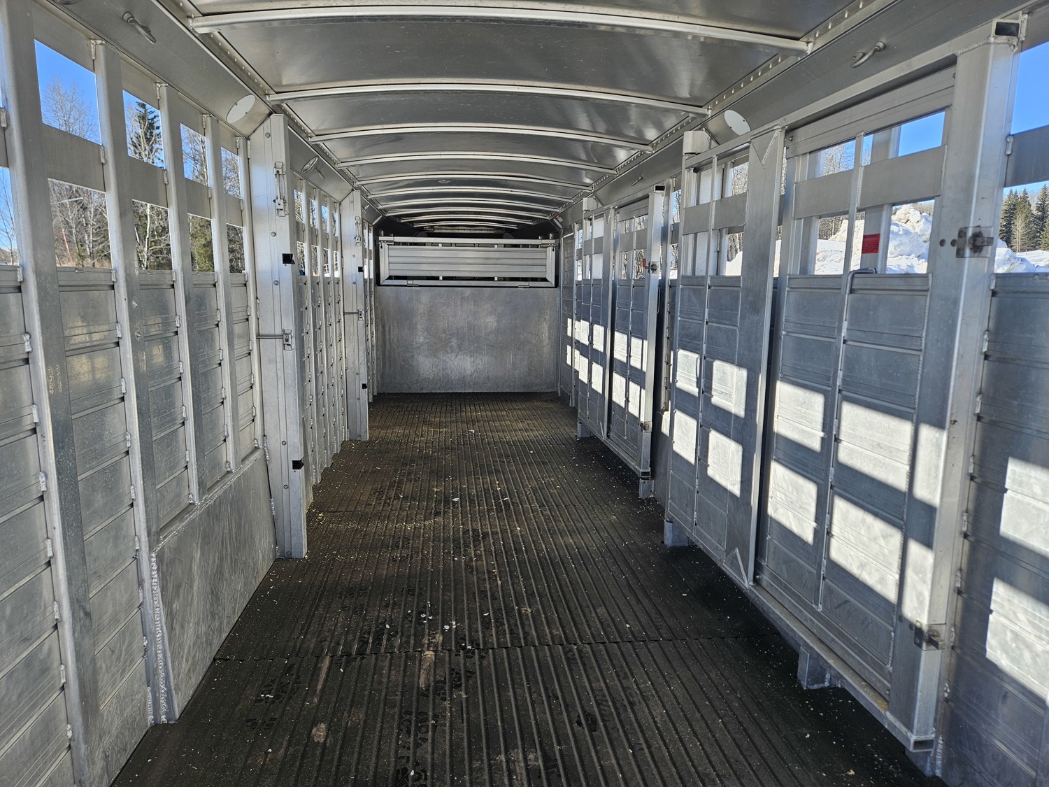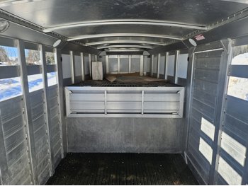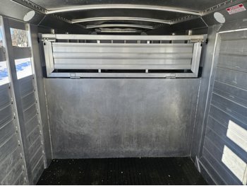 tandem 7000 lb axles, torsion suspension, 83 inch interior width, 80 inch interior height, front gooseneck storage, 2 cross gates, full swing rear door, rubber floor mats, 235/80R16 tires