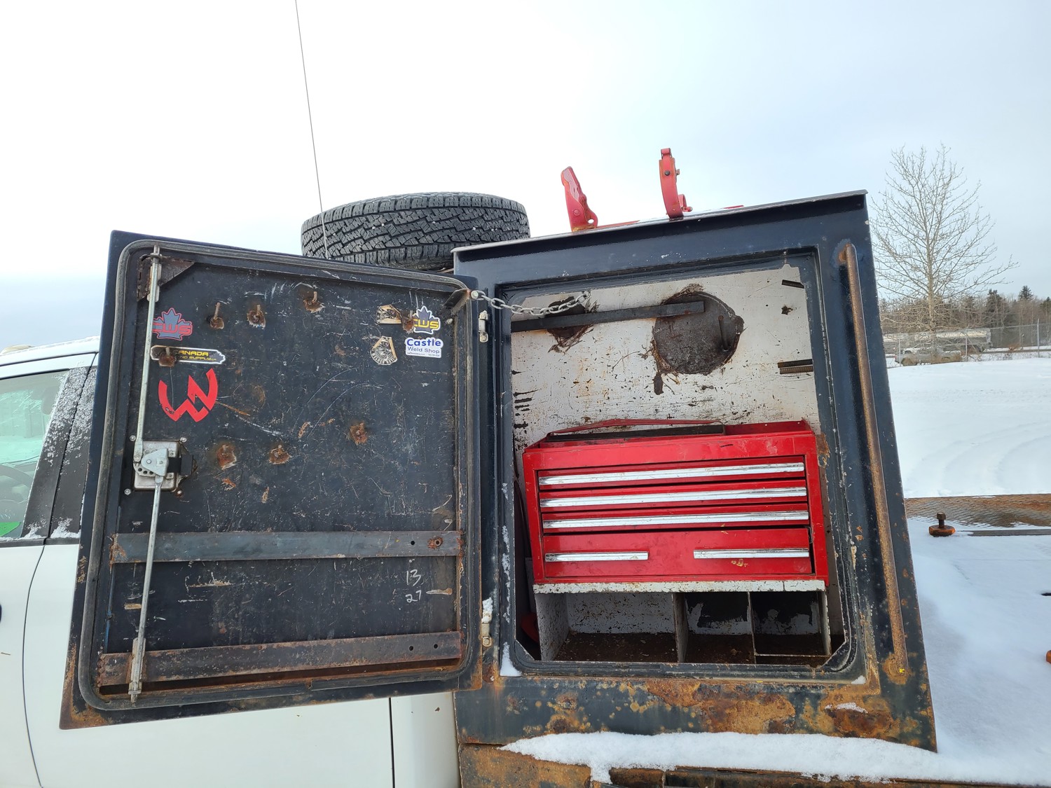 6.7 L, 6 cylinder, diesel, automatic transmission, P/W, P/L, A/C, heated mirrors, 94 inch long deck, 80 in wide deck, steel toolbox, 235/80R17 tires
