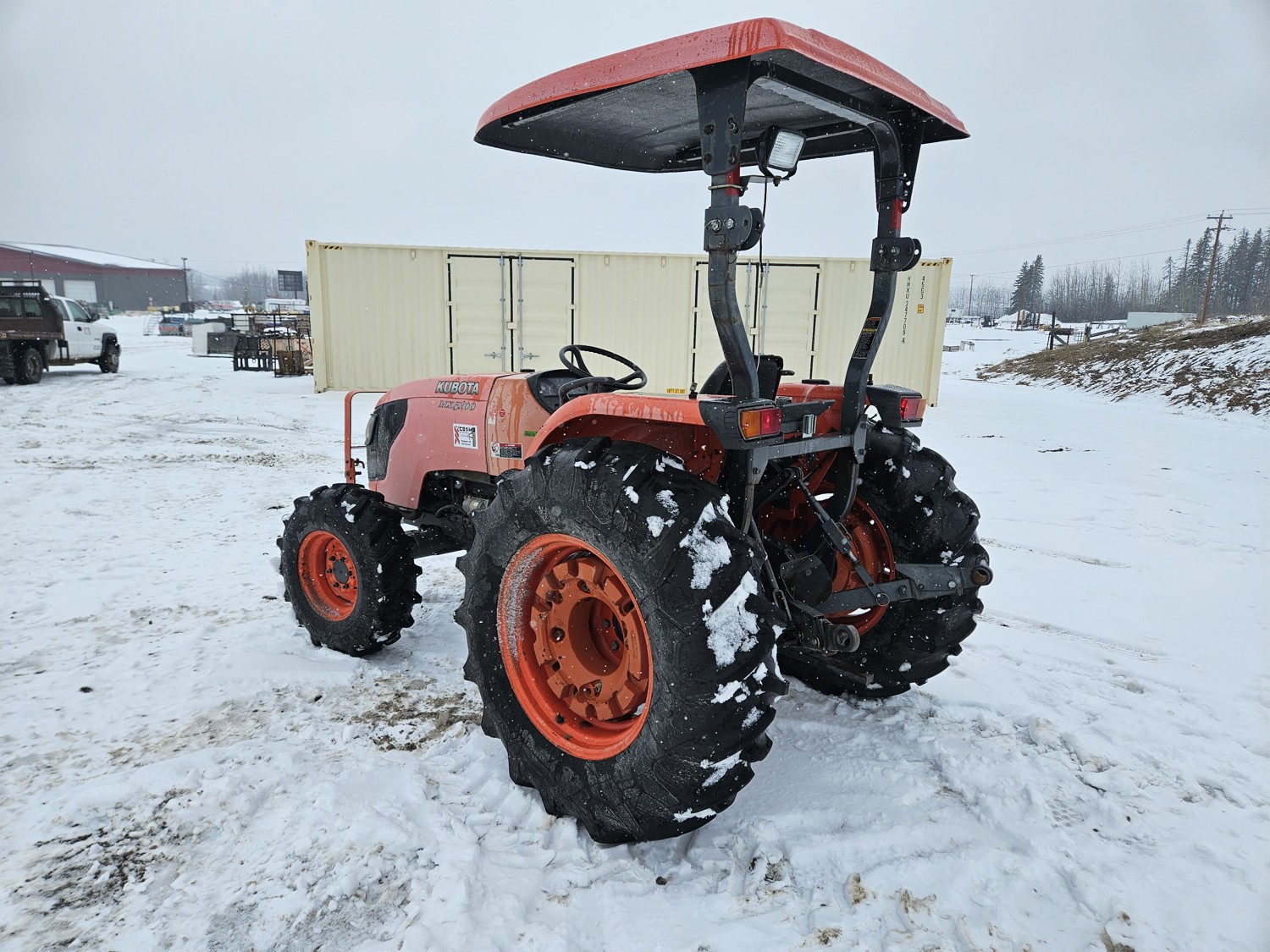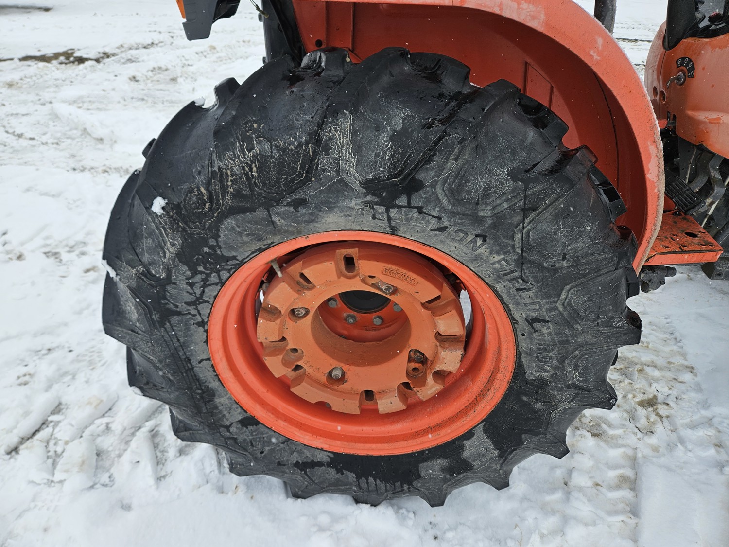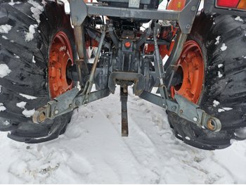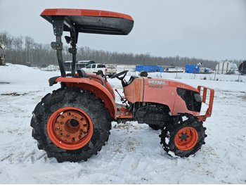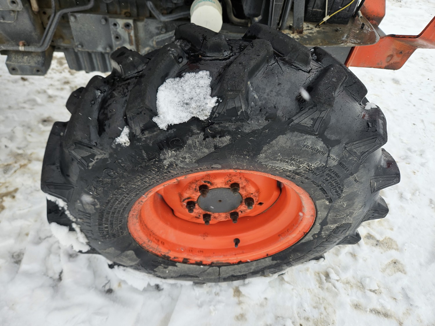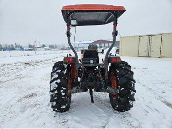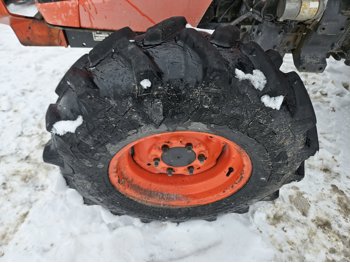 Kubota 2.4 L 4 cylinder diesel engine, 8 speed partial synchro transmission, open station platform, 540 PTO, 3 point hitch, rear wheel weights, 7.5-16 front tires, 14.9-26 rear tires