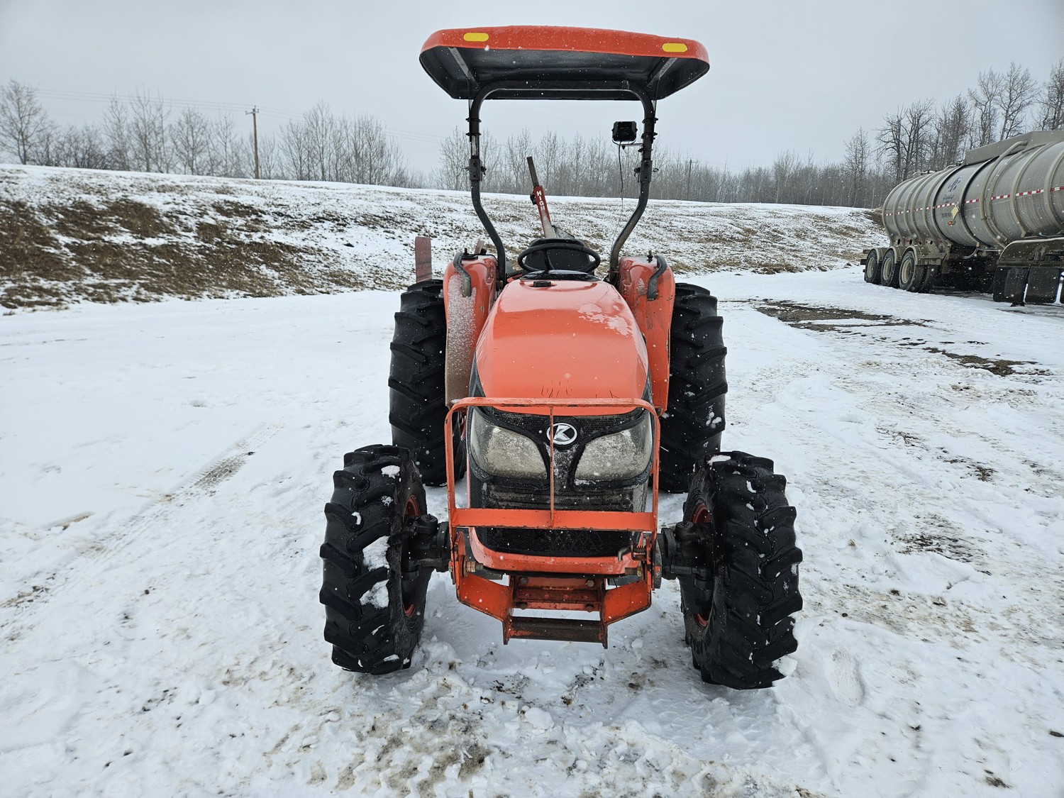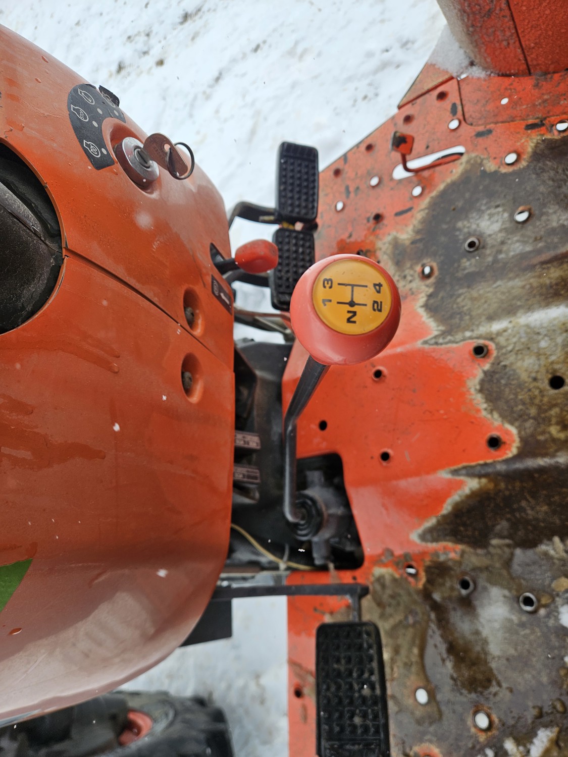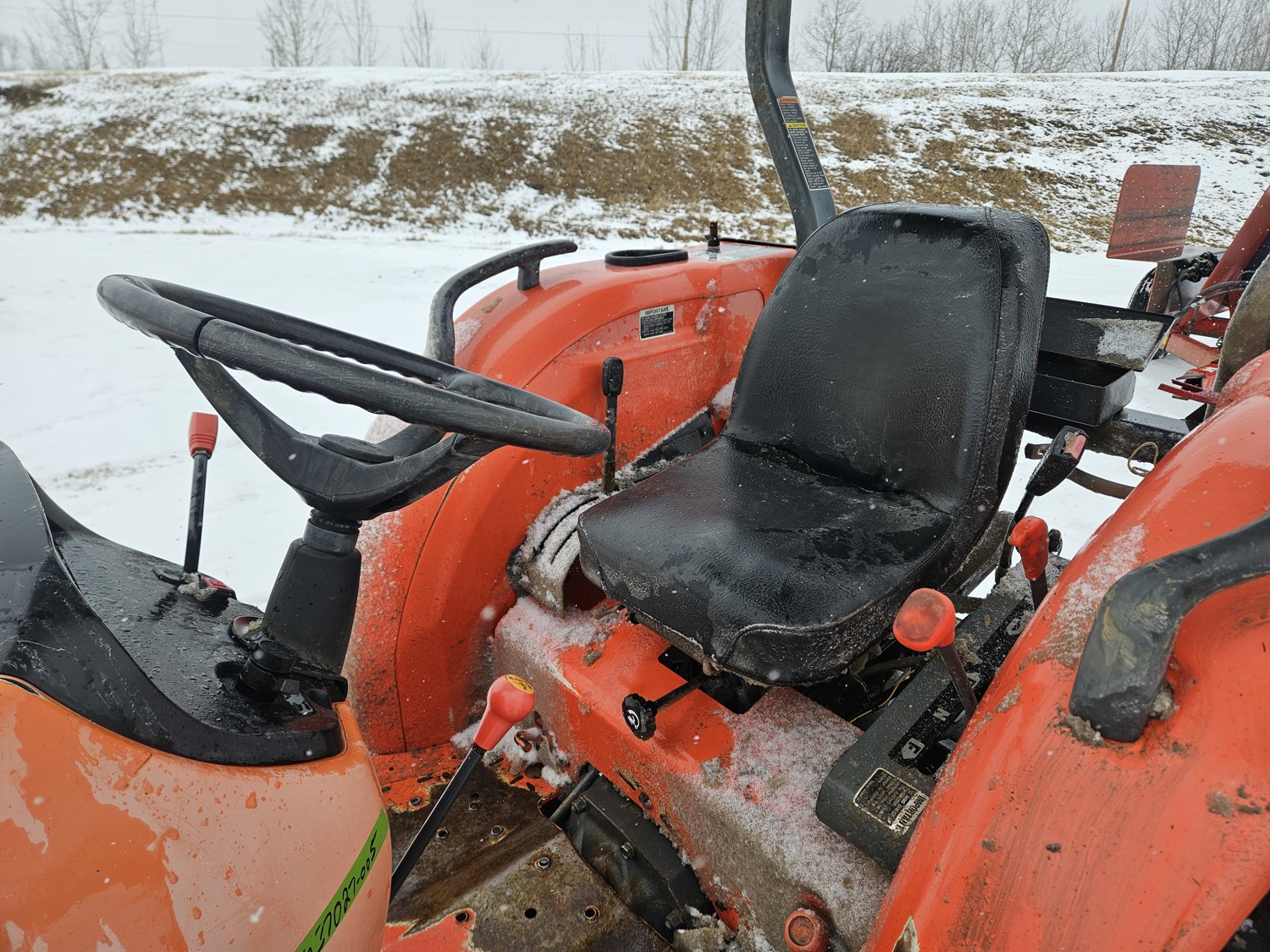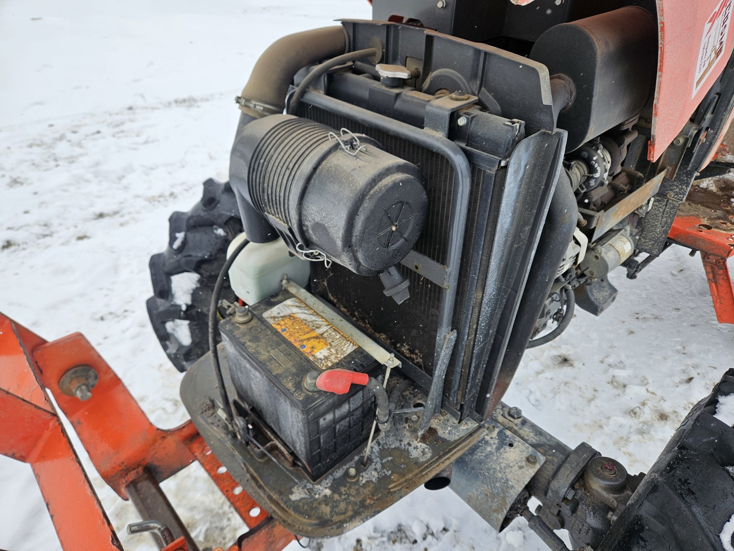 Kubota 2.4 L 4 cylinder diesel engine, 8 speed partial synchro transmission, open station platform, 540 PTO, 3 point hitch, rear wheel weights, 7.5-16 front tires, 14.9-26 rear tires
