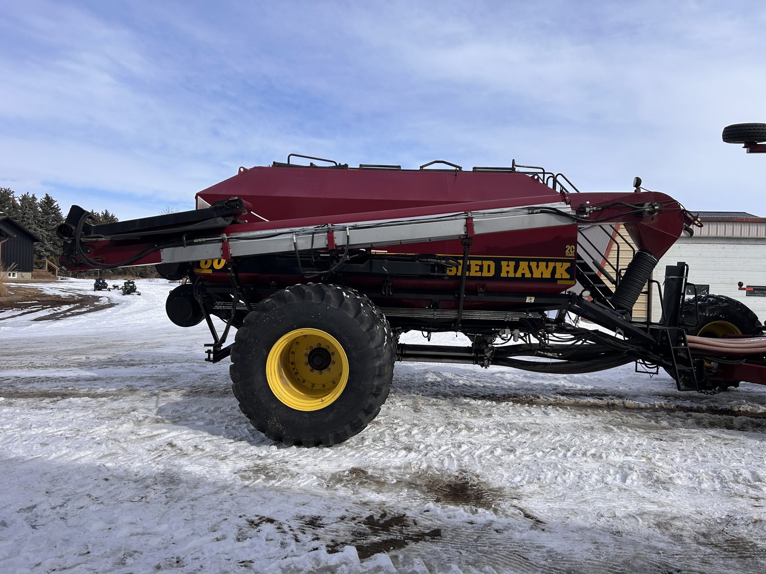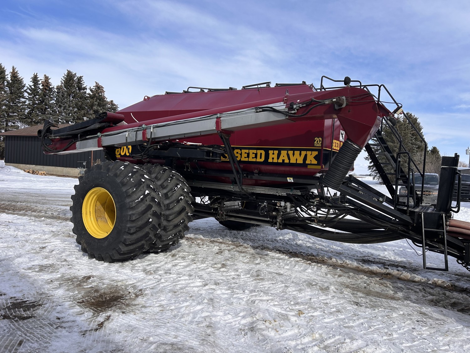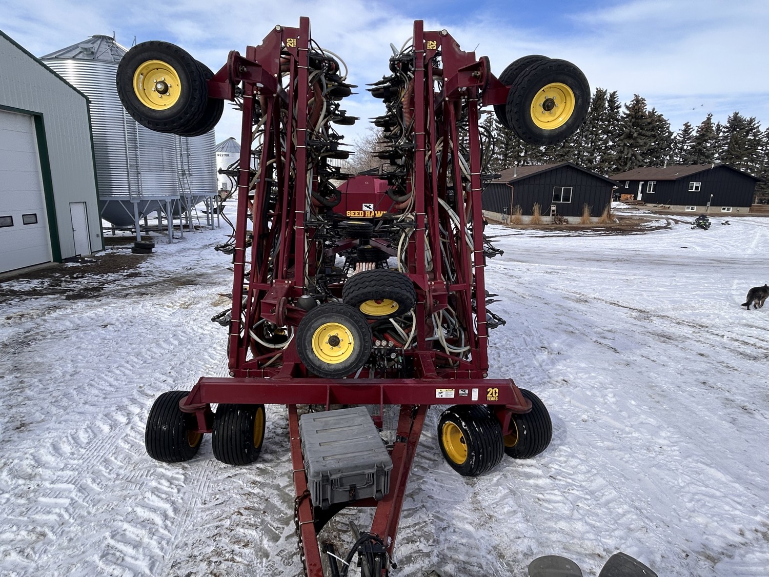 12 inch spacing, double shoot Seedhawk openers, 4 inch semi pneumatic packers, seed monitor, blockage sensors, rear hitch camera, Devloo mud scrapers All run Intelligent AG blockage system, new in 2022., Air Cart: 3 compartments, 15 inch loading conveyor, double fan, variable rate metering, sectional control, 4 tank cameras, New conveyor belt 2026., Accumulator kit to accommodate tractors with smaller hydraulic pumps! , dual 30.5L-R23 rear tires