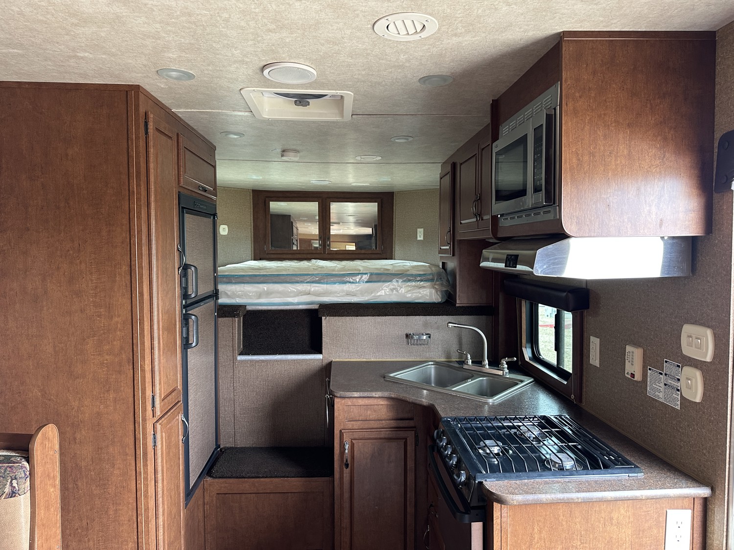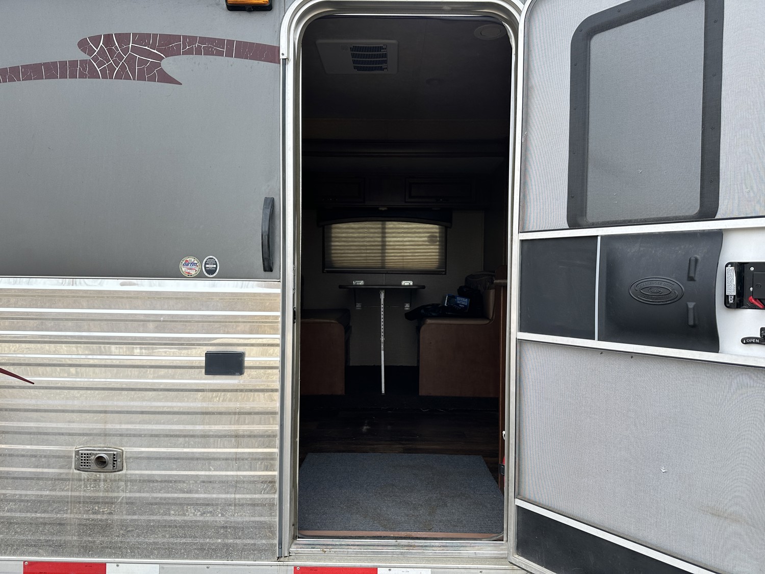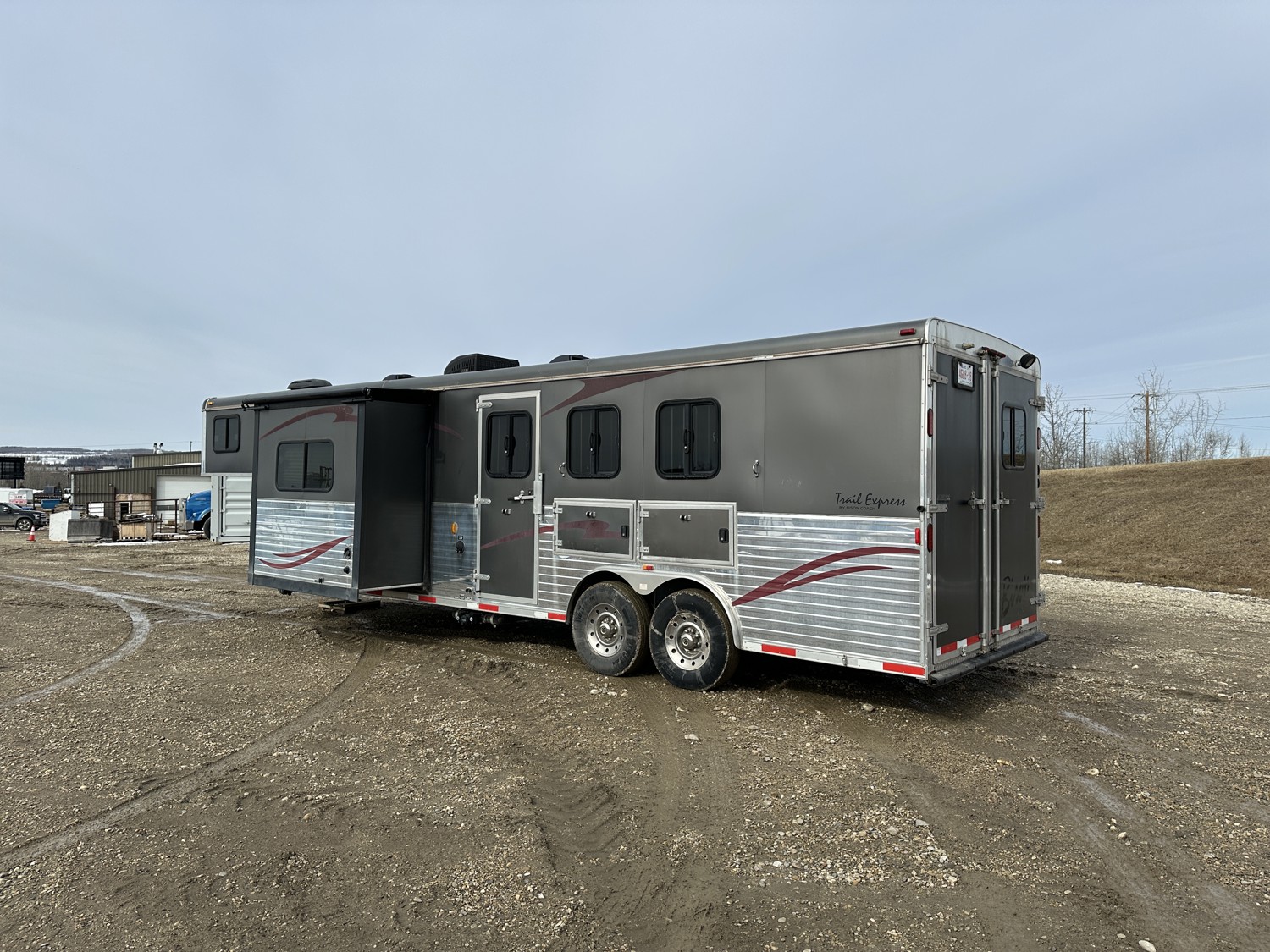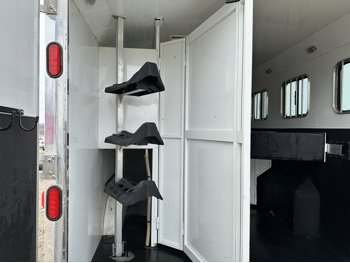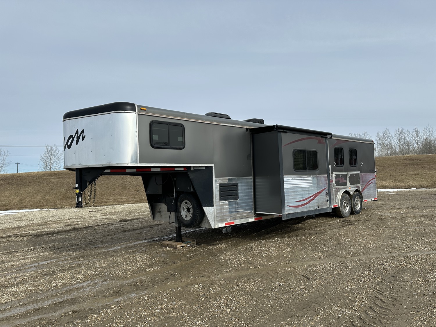 Sleeps 4, stove, fridge, microwave, full bath, master bedroom, A/C, 1 slide, power awning, spring suspension, electric brakes, 15 ft horse compartment, 20 ft of living quarters, 235/85R16 tires