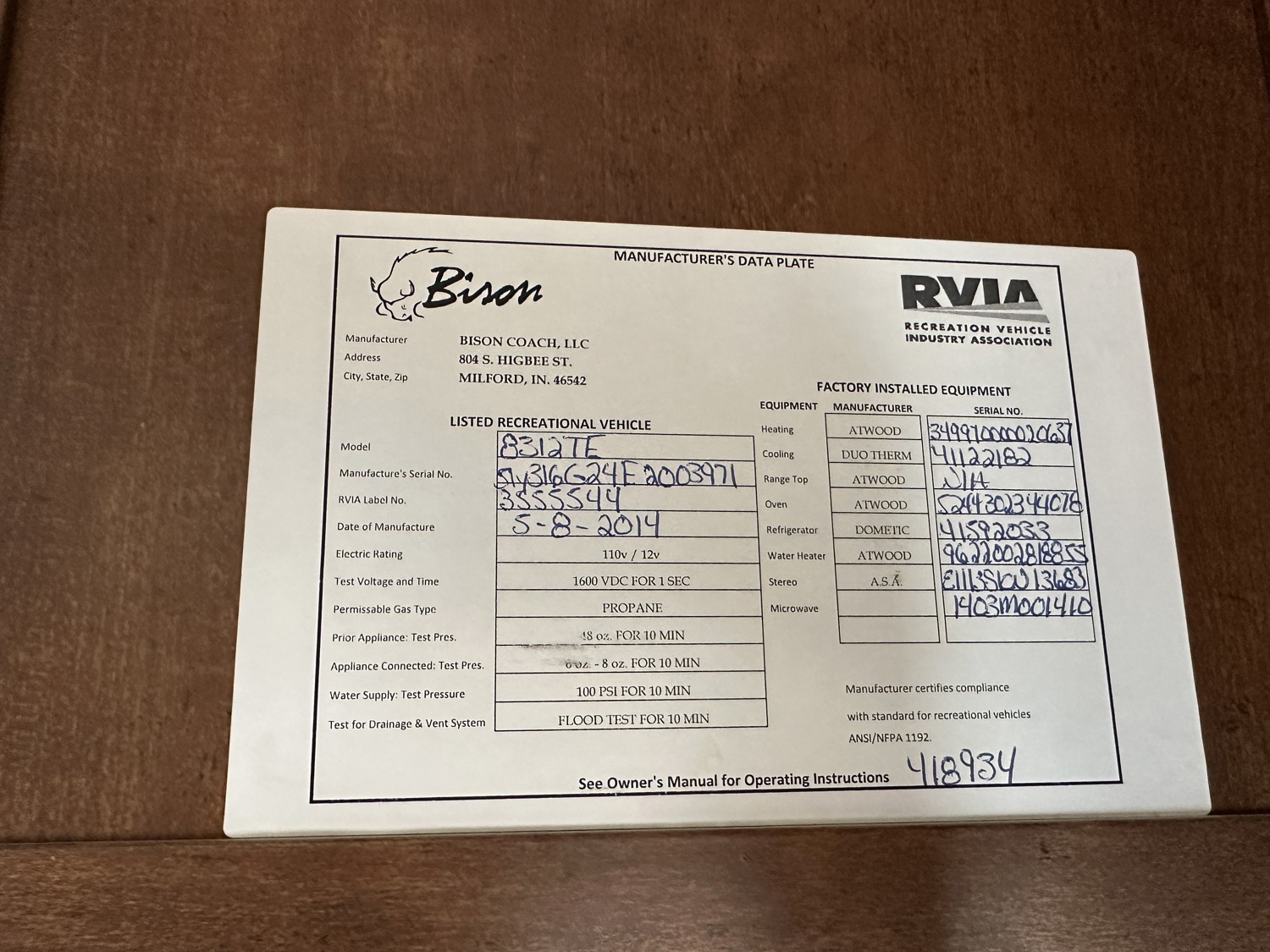 Copy of registration on hand. - Location: