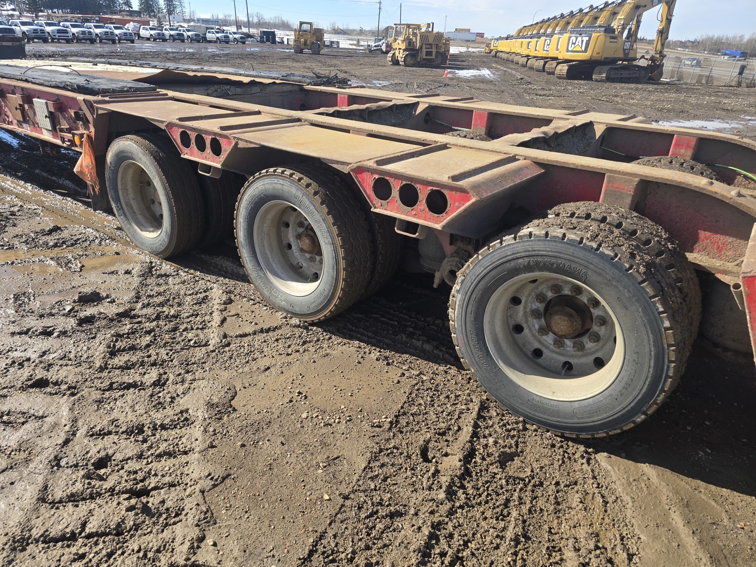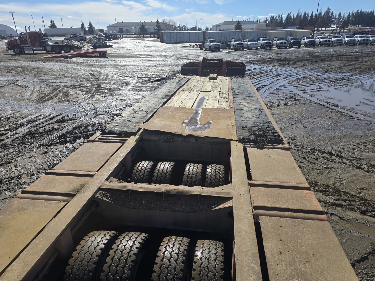 10 ft 6 inch wide, 42 ft main deck, 4 ft beavertail, rear plumbing for booster, swing out wide load lights, fold up landing gear, air ride suspension, 275/70R22.5 tires