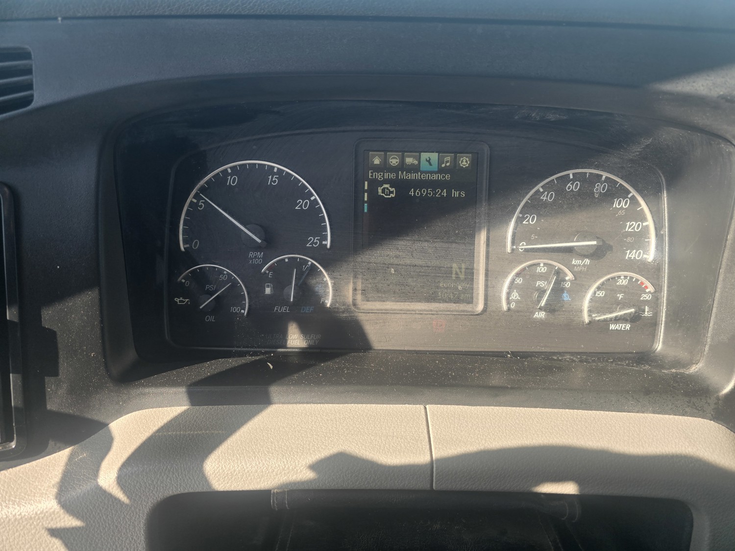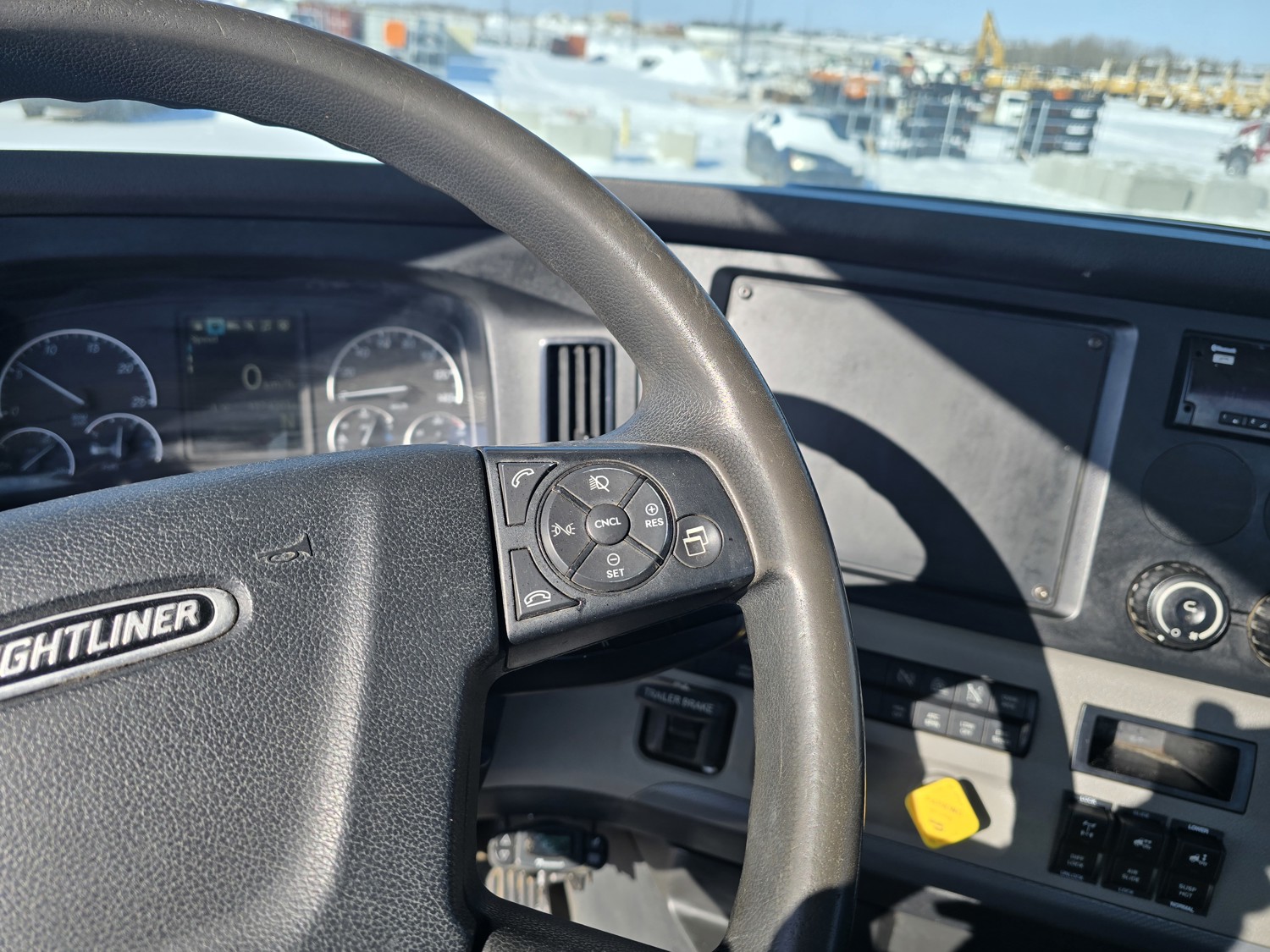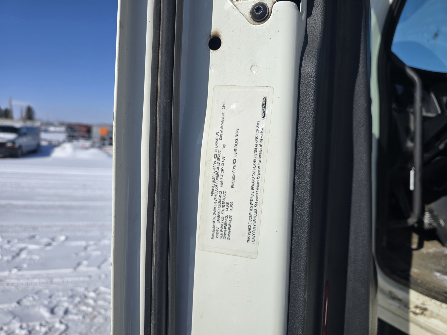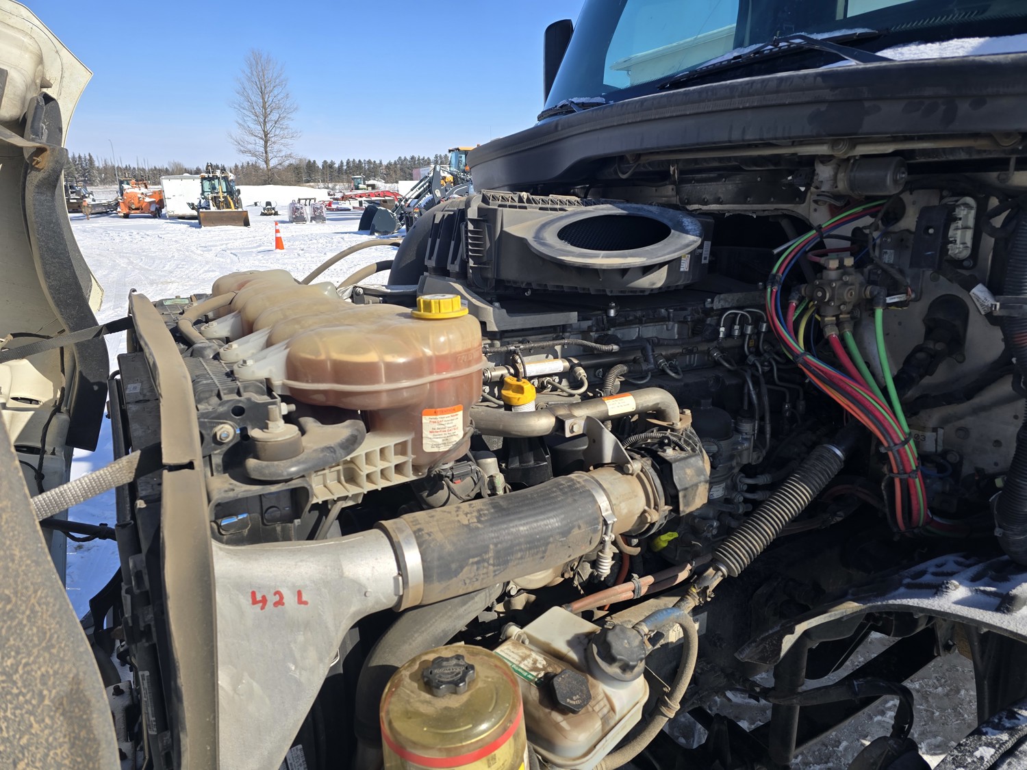 Detroit DD15 14.8 L 6 cylinder 505 HP diesel engine, DEF required, engine block heater, DT15-1550 12 speed automatic transmission, A/C, cruise control, air ride driver seat, stereo, Bendix blind spot detection, Airliner air ride suspension, 12,000 lb front axle, 21,000 lb rear axles, diff lock, 3.08 ratio, 174 inch WB, all aluminum wheels, 11R22.5 front tires