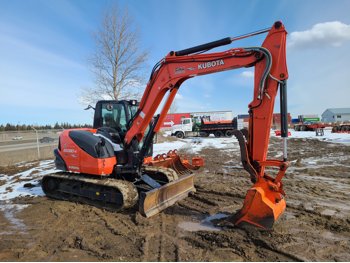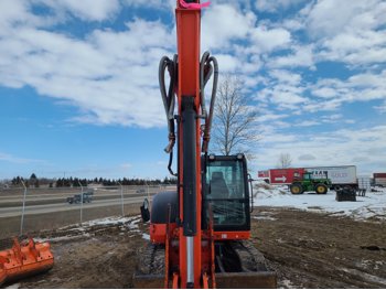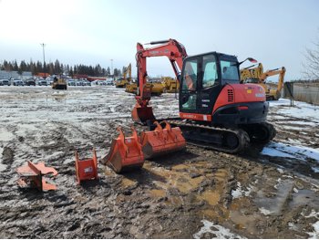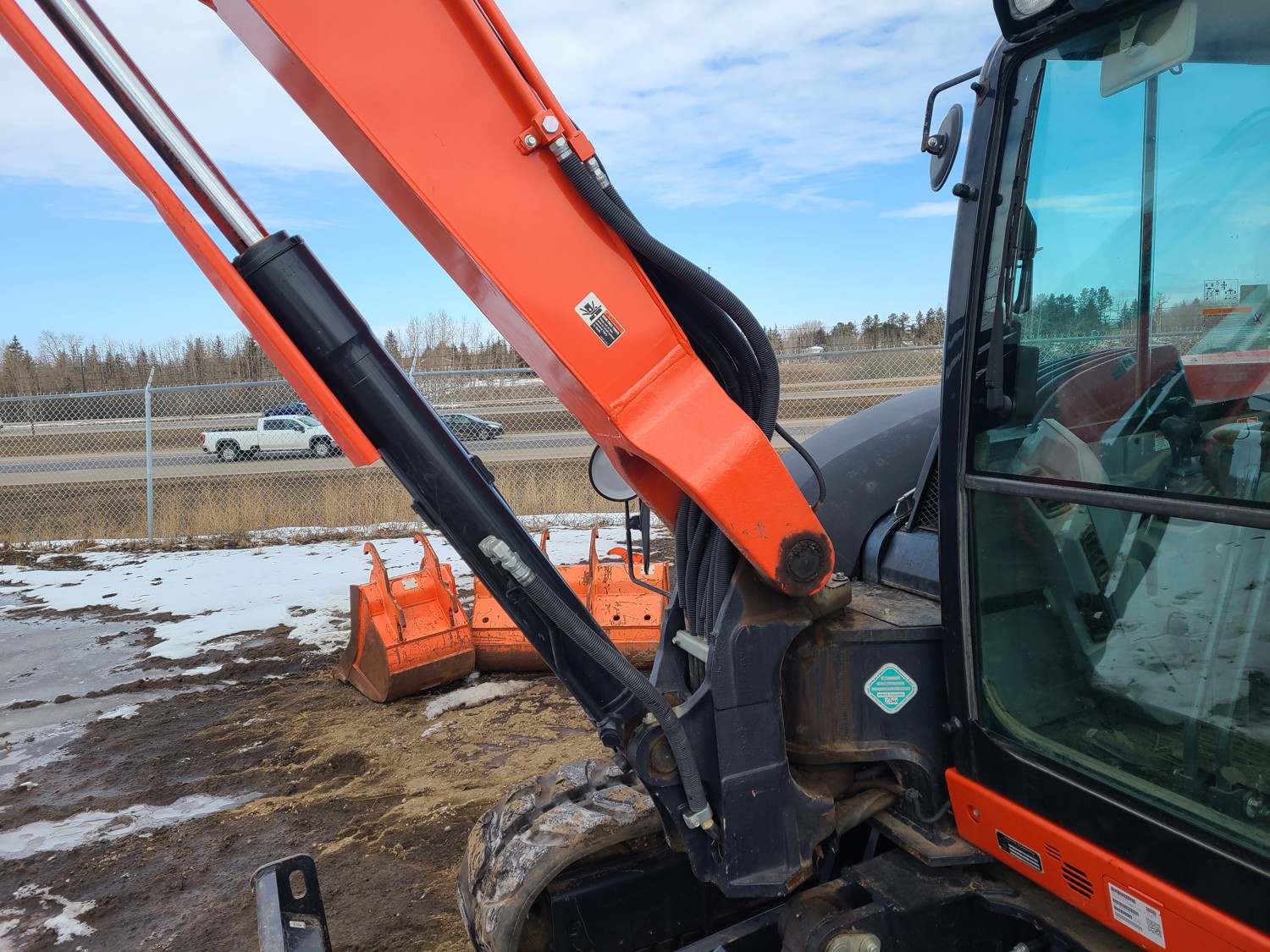 Enclosed cab, A/C, DEF required, engine heater, cab screens, comes w/ 48" smooth bucket, 26" dig bucket, 36" ripper, and mounting plate, 39 inch dig bucket, manual coupler, hydraulic thumb, swing boom, offset stick, backfill blade, 18 inch rubber tracks