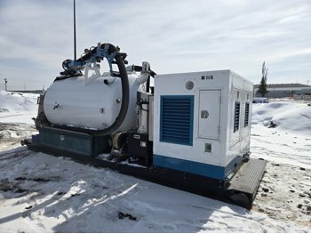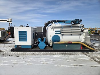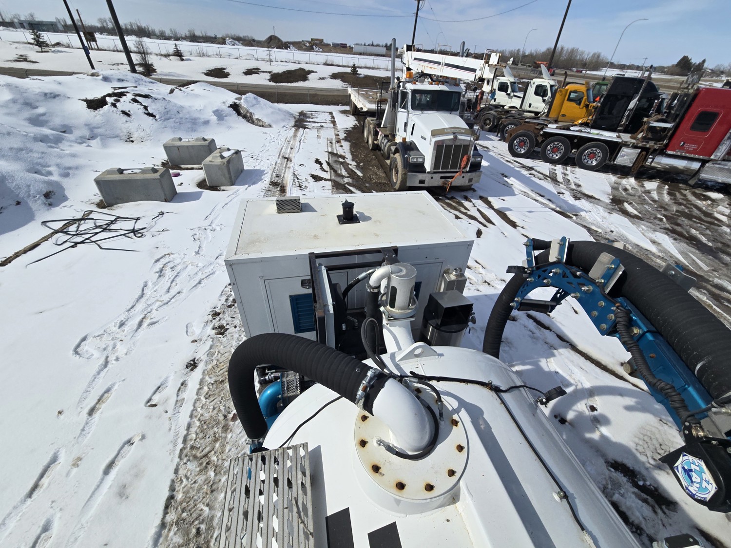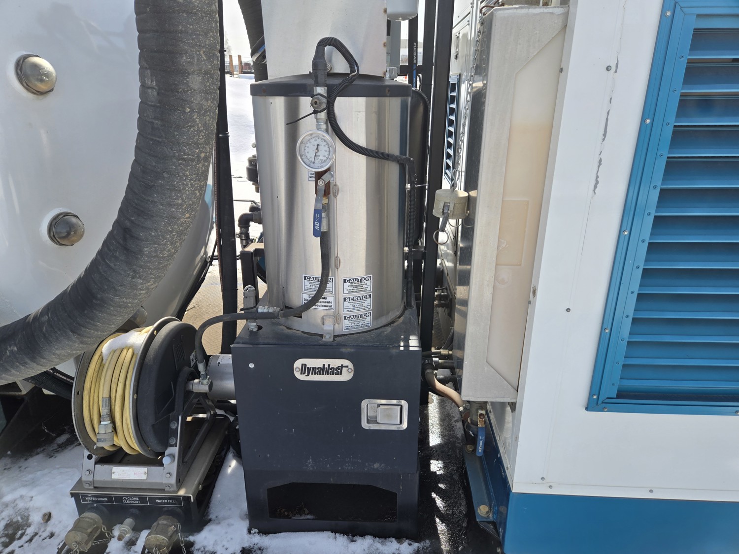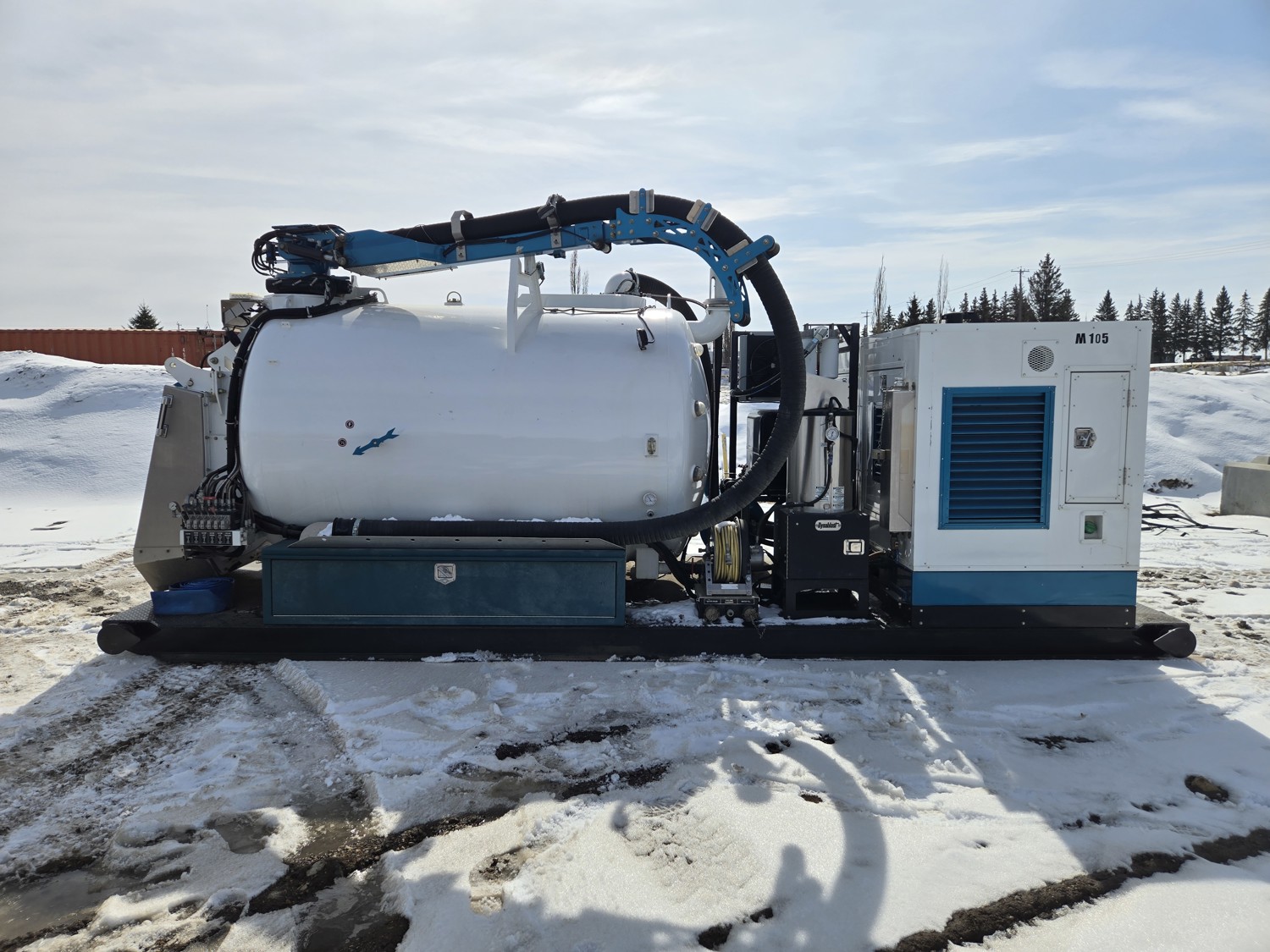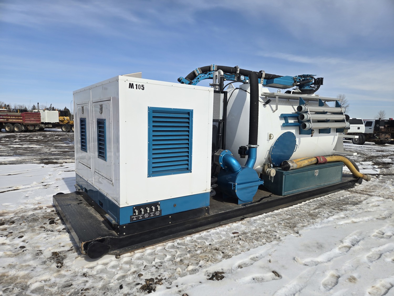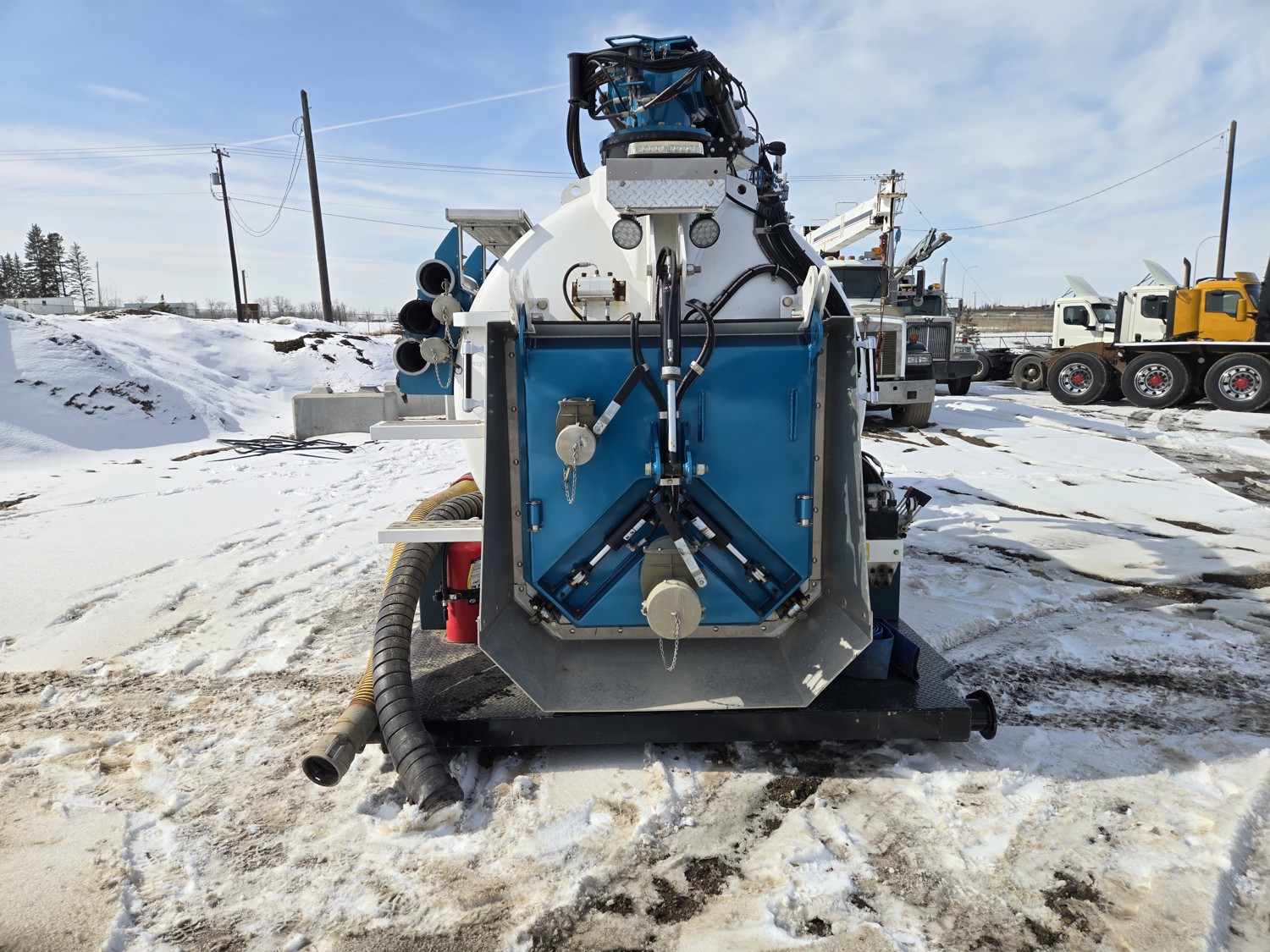 Remote controlled, Cummins 4 cylinder diesel engine, Tuthill 5514-A3L3CV2 hydraulic driven blower, dual compartment tank with level indicator, debris tank capacity 6.5 cu yds, 720 US gallon water tank, Dynabuilt diesel fired hot water pressure washer with General pump with 2800 psi, hose with reel, hydraulic hydro vac arm, hydraulic rear clean out door, suction hoses
