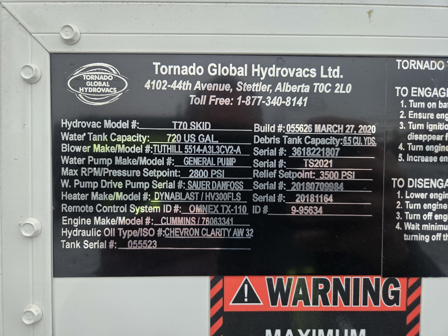 2020 Tornado Global Hydrovac T70 Hydro Vac Unit On 21 Ft Skid