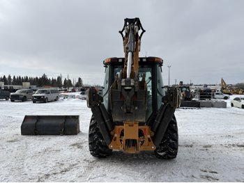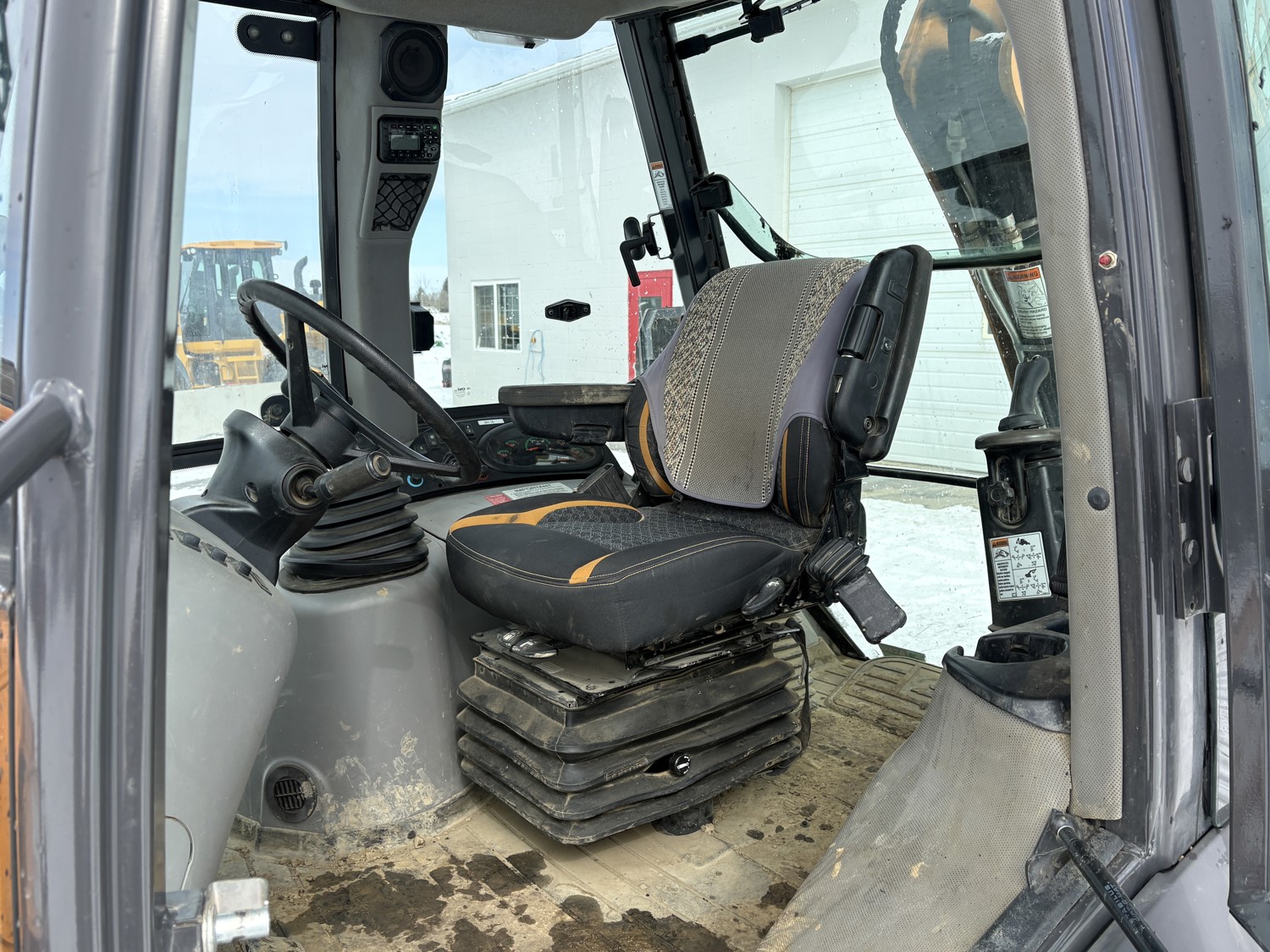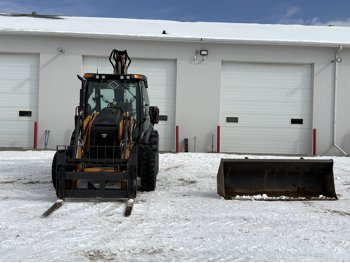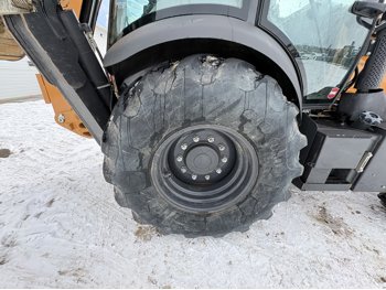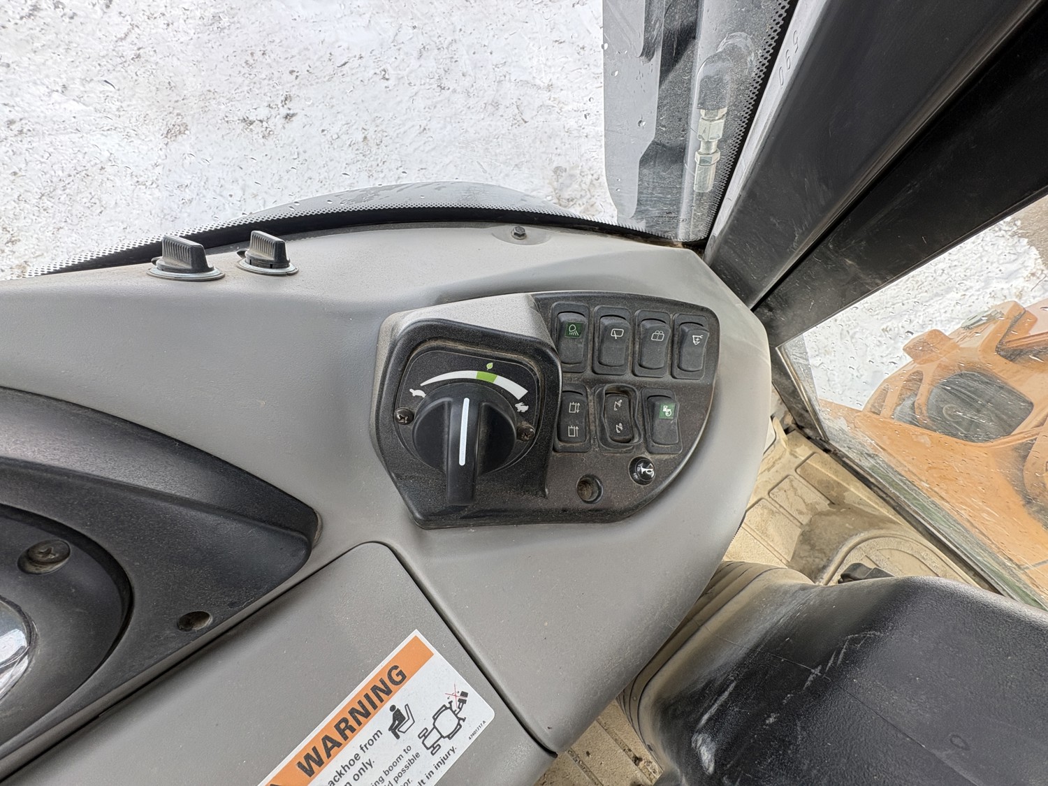 Enclosed cab, A/C, air ride seat, DEF required, 4 speed powershift transmission, engine heater, cab screens, 92 inch smooth loader bucket, 24 inch dig backhoe bucket, manual coupler, outriggers, 12.5/80-18IMP front tires, 21L-24 rear tires