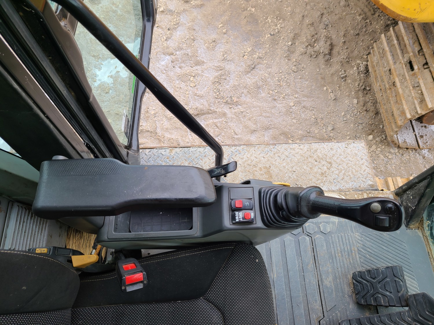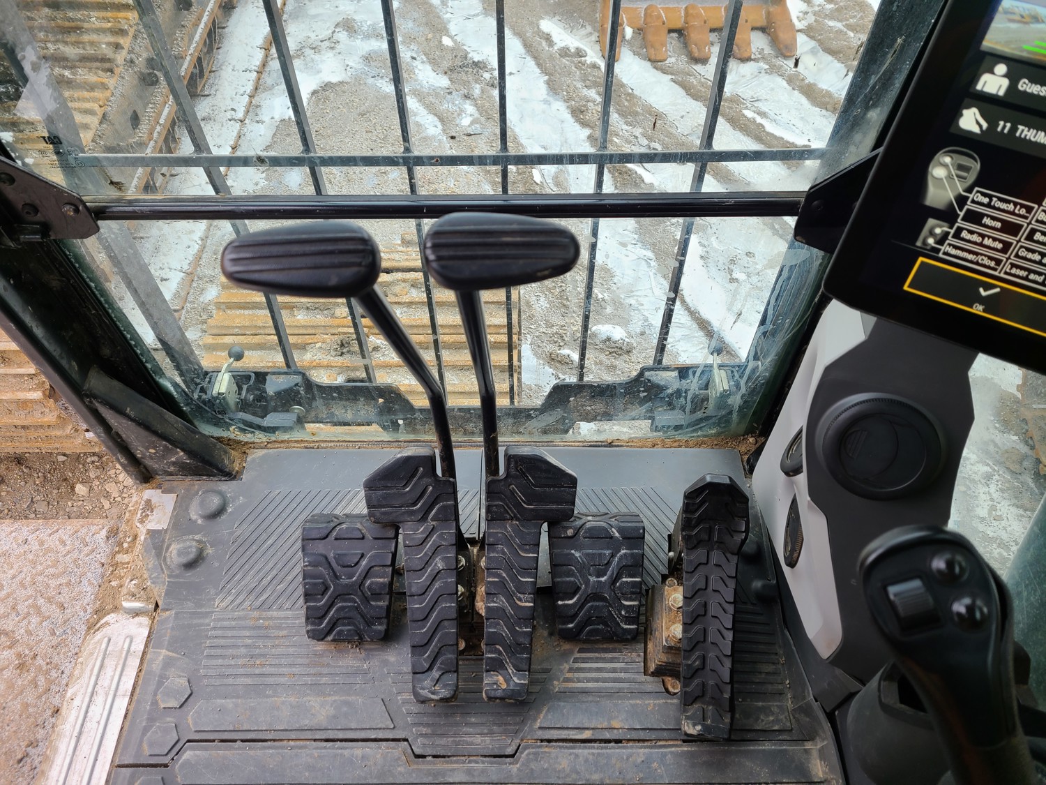 Enclosed cab, A/C, rear view cameras, side view cameras, positive air shutoff, windshield and top cab protection screens, 42 inch dig bucket, manual coupler, hydraulic thumb, 1 auxiliary hydraulics, 10 Ft 8 inch stick, 31.5 inch track pads, triple grousers