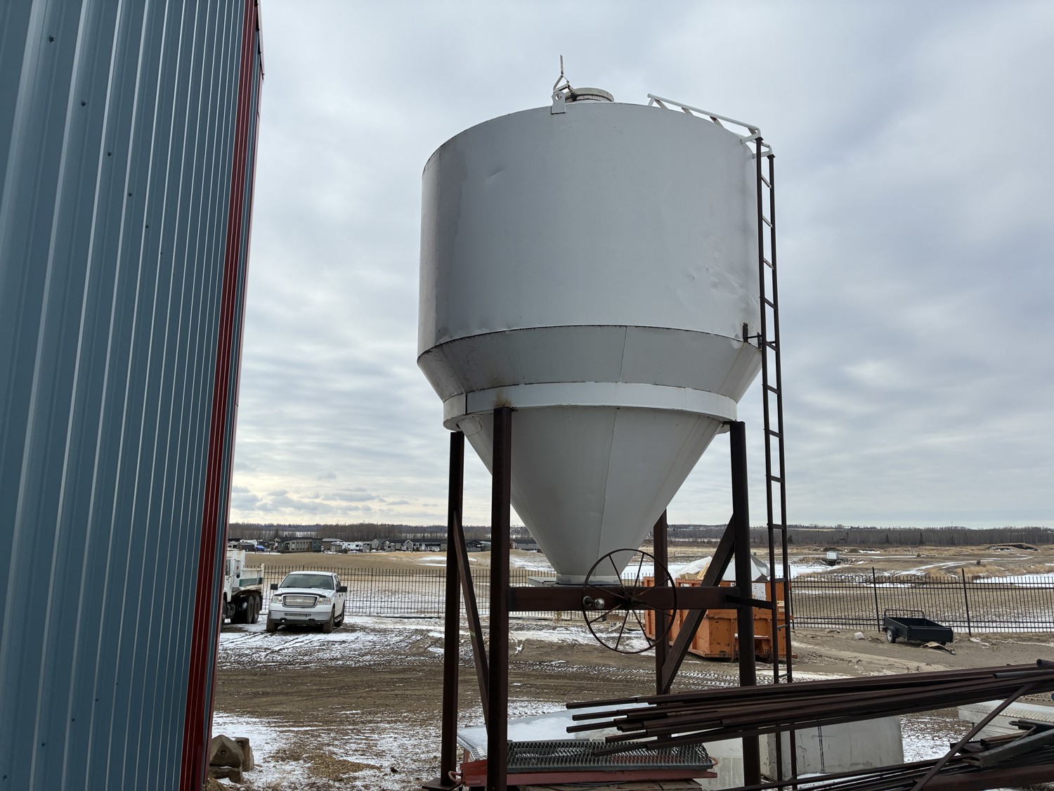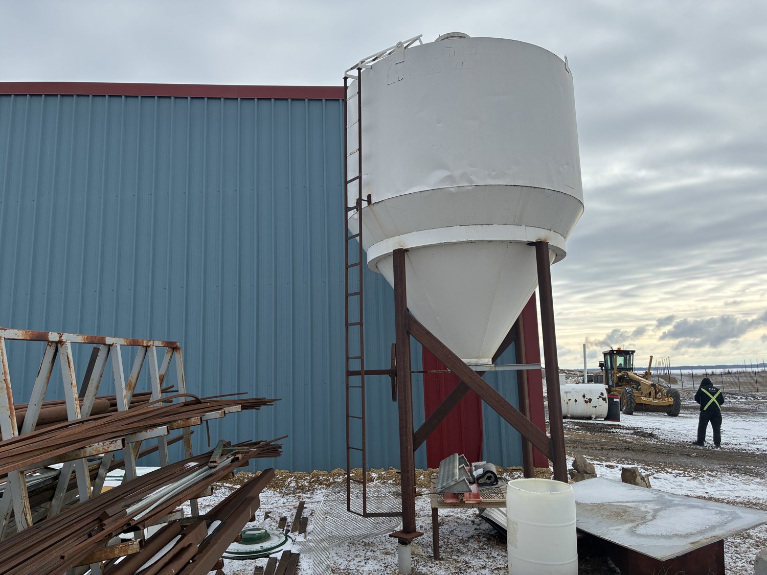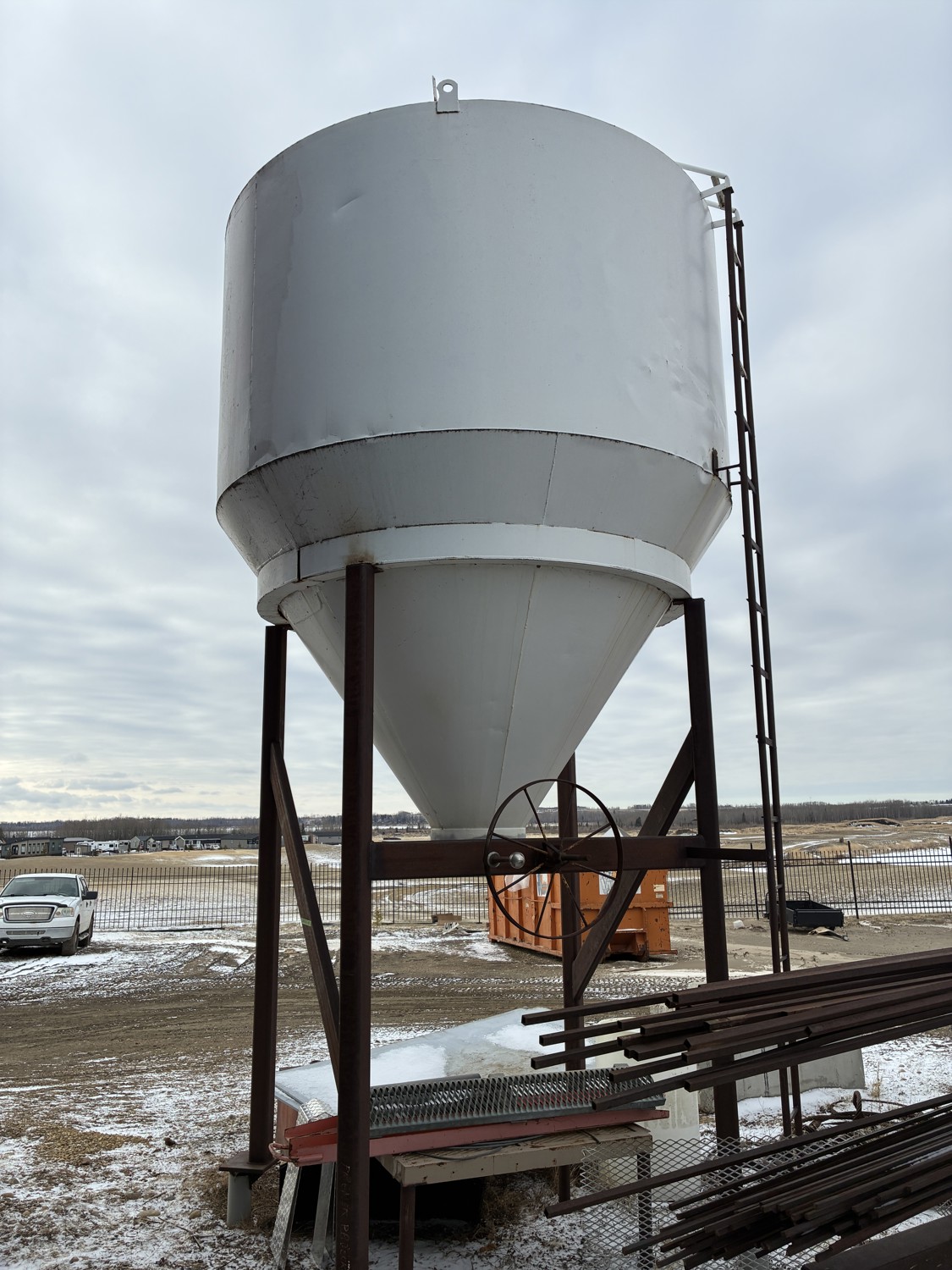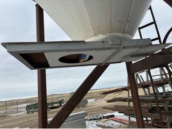4 leg hopper, ladder, appx 10.5ft tall, will have anchor bolts removed for load out