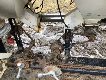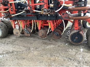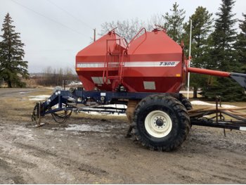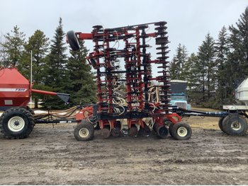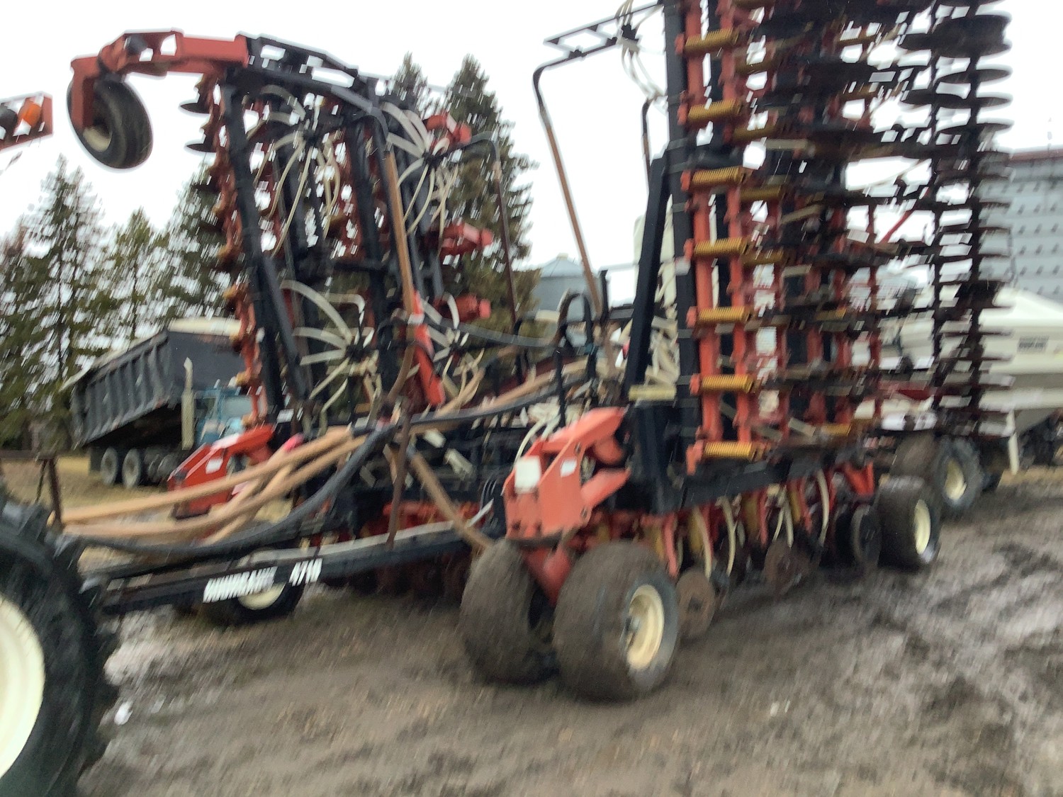 2 inch rear packers, 6-3/4 inch row spacing, 34,000 pound drill, double shoot, rear tank is a Bourgault 3225 c/w loading auger, front tow between tank is a Morris 7300 air tank c/w loading auger all in cab monitors are with the unit