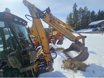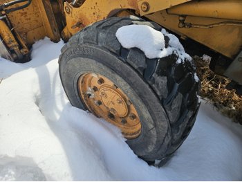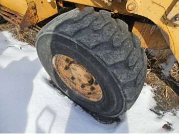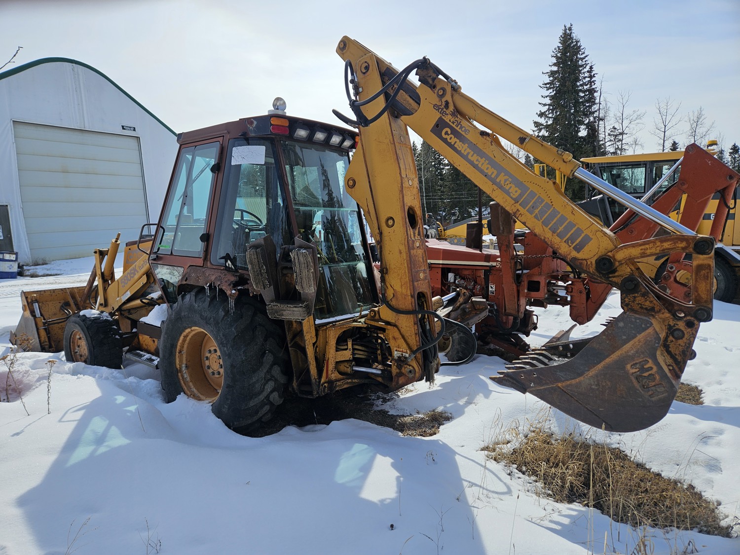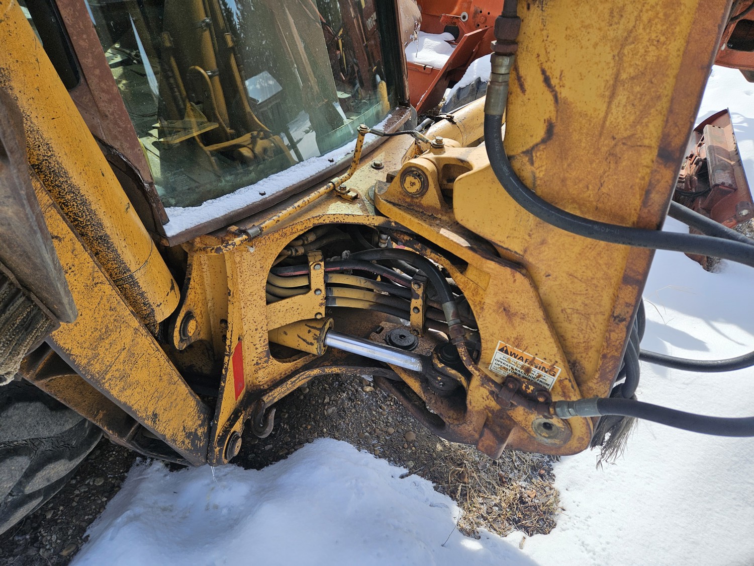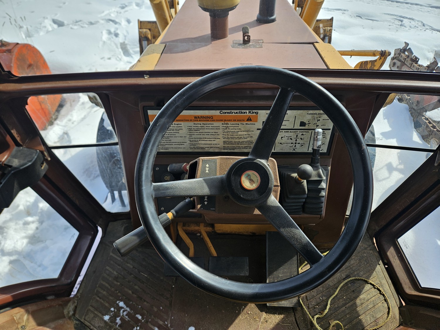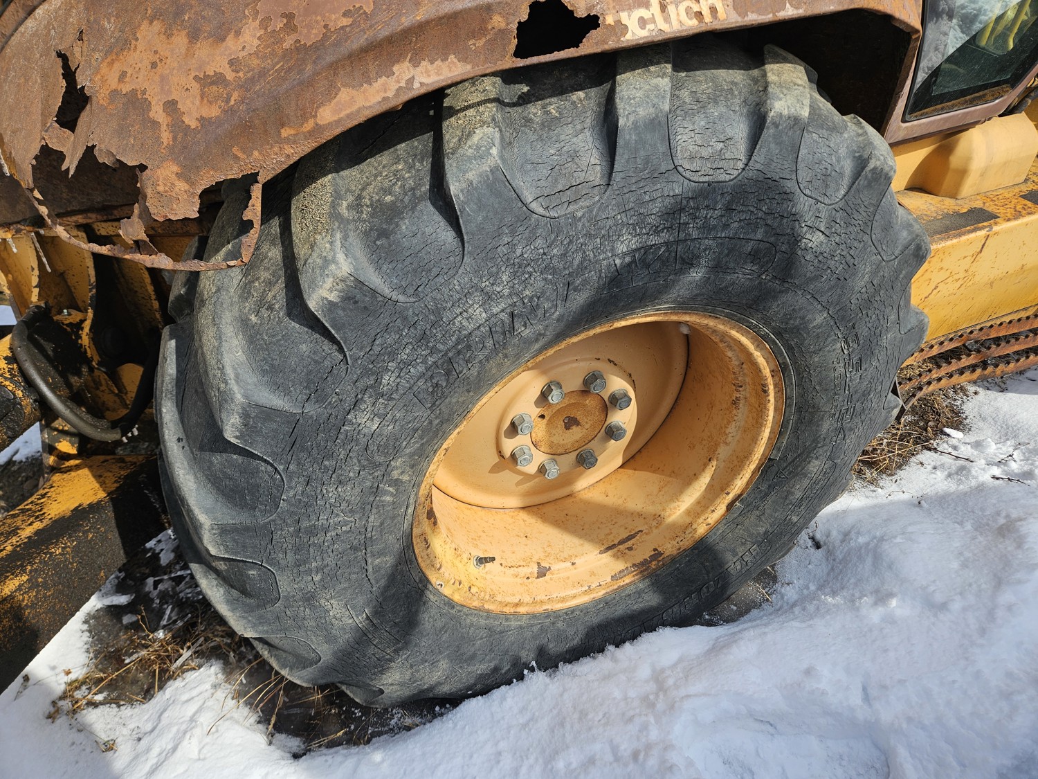 Enclosed cab, A/C, hydro transmission, 80 inch loader bucket, 36 inch dig backhoe bucket, 2 front auxiliary hydraulics, 8 Ft stick, outriggers, 4 inch 1 bucket, 12-16.5 front tires, 19.5L-24 rear tires