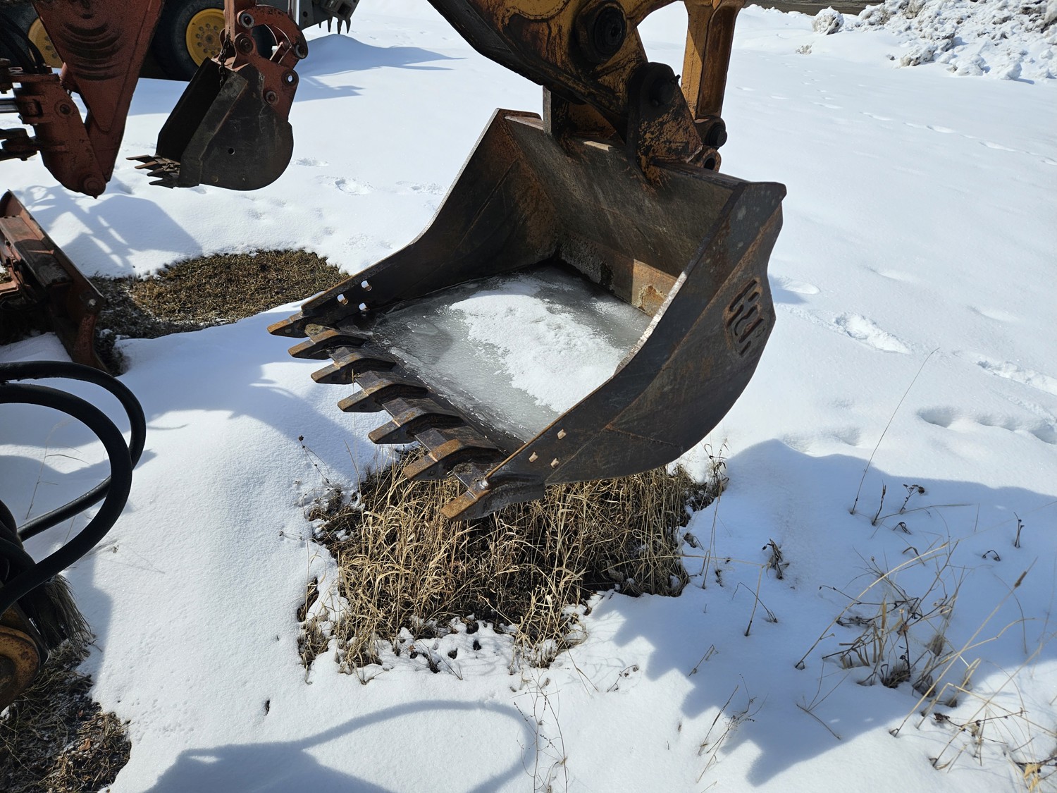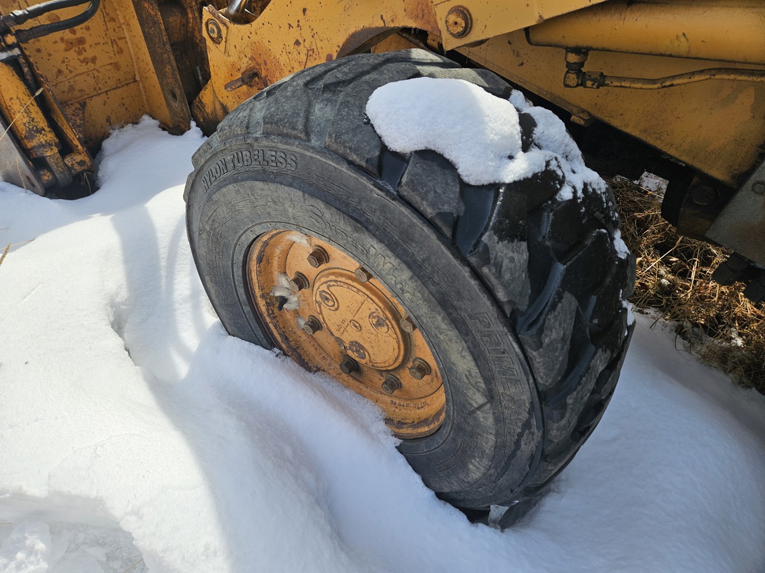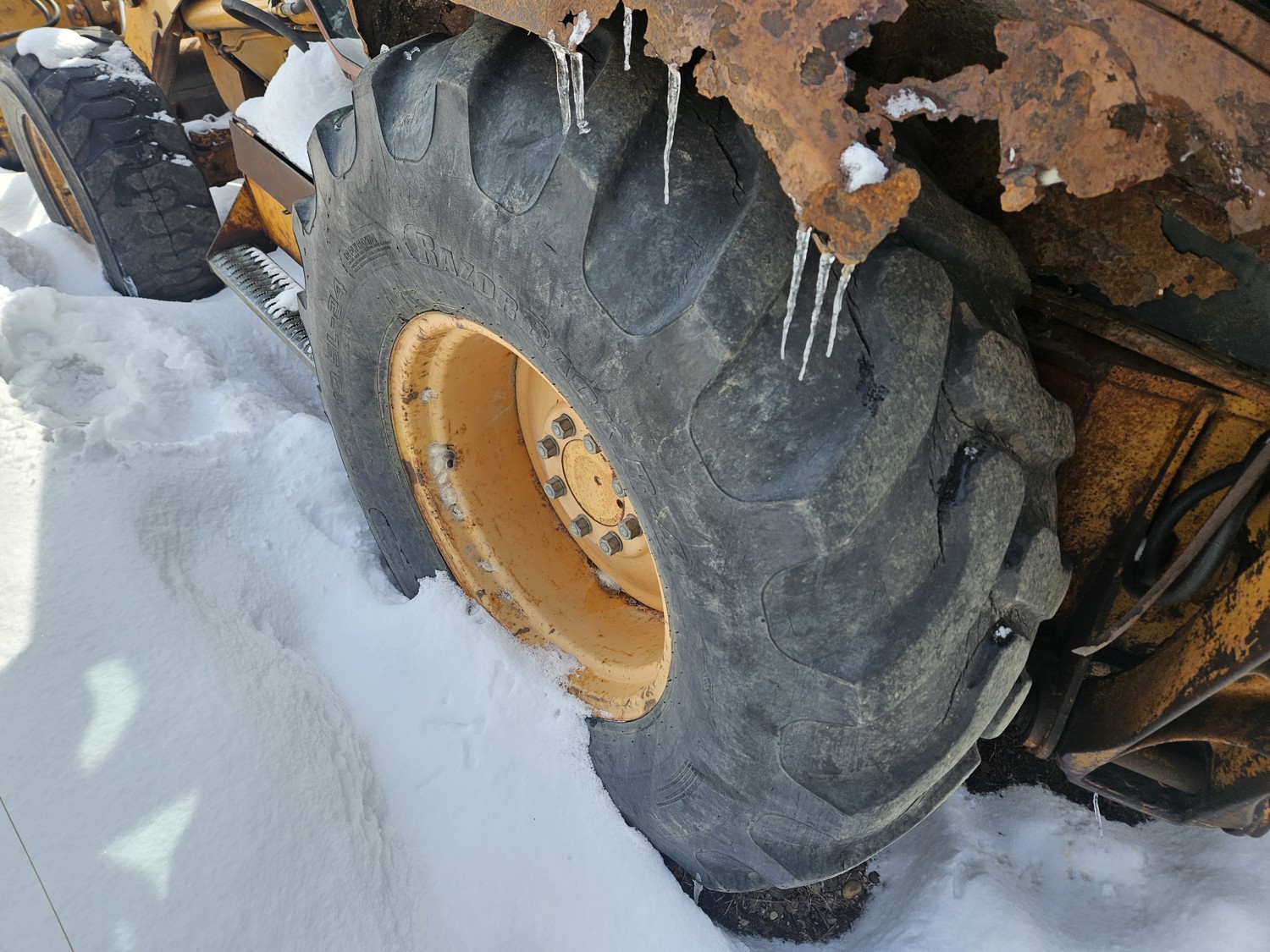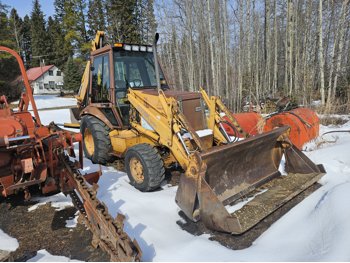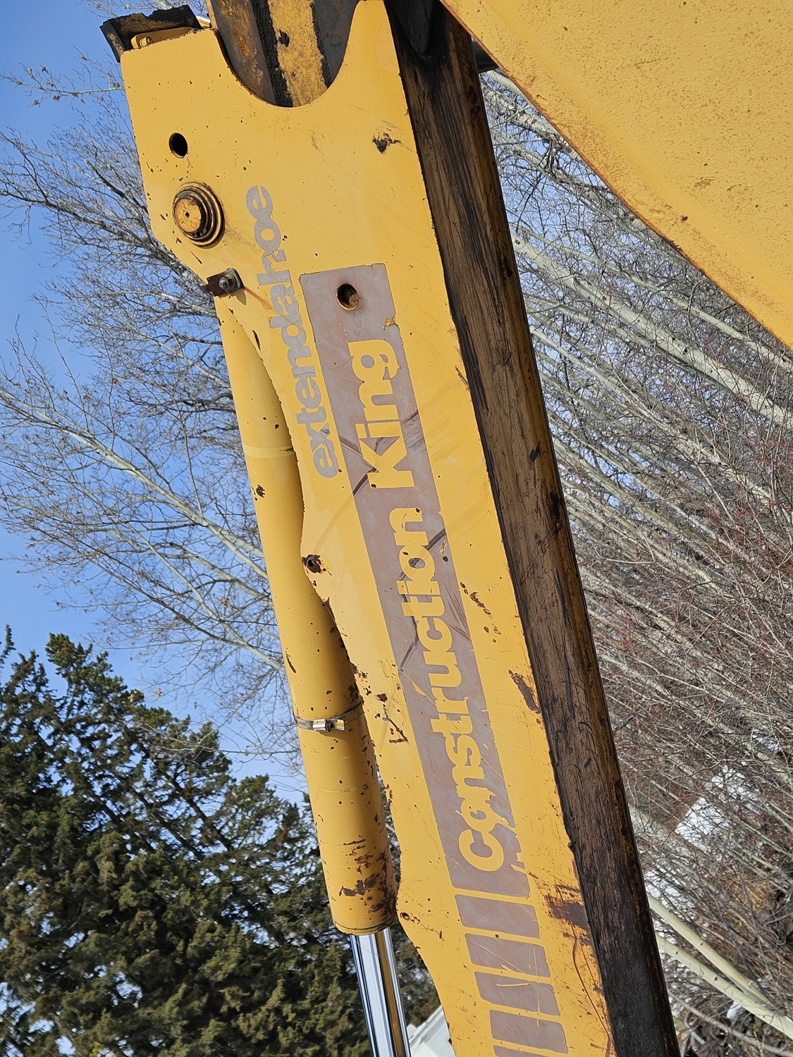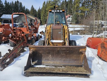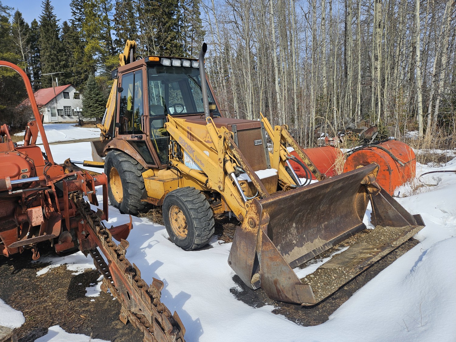 Enclosed cab, A/C, hydro transmission, 80 inch loader bucket, 36 inch dig backhoe bucket, 2 front auxiliary hydraulics, 8 Ft stick, outriggers, 4 inch 1 bucket, 12-16.5 front tires, 19.5L-24 rear tires