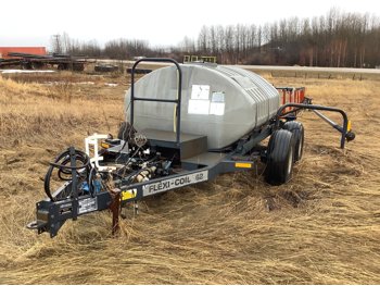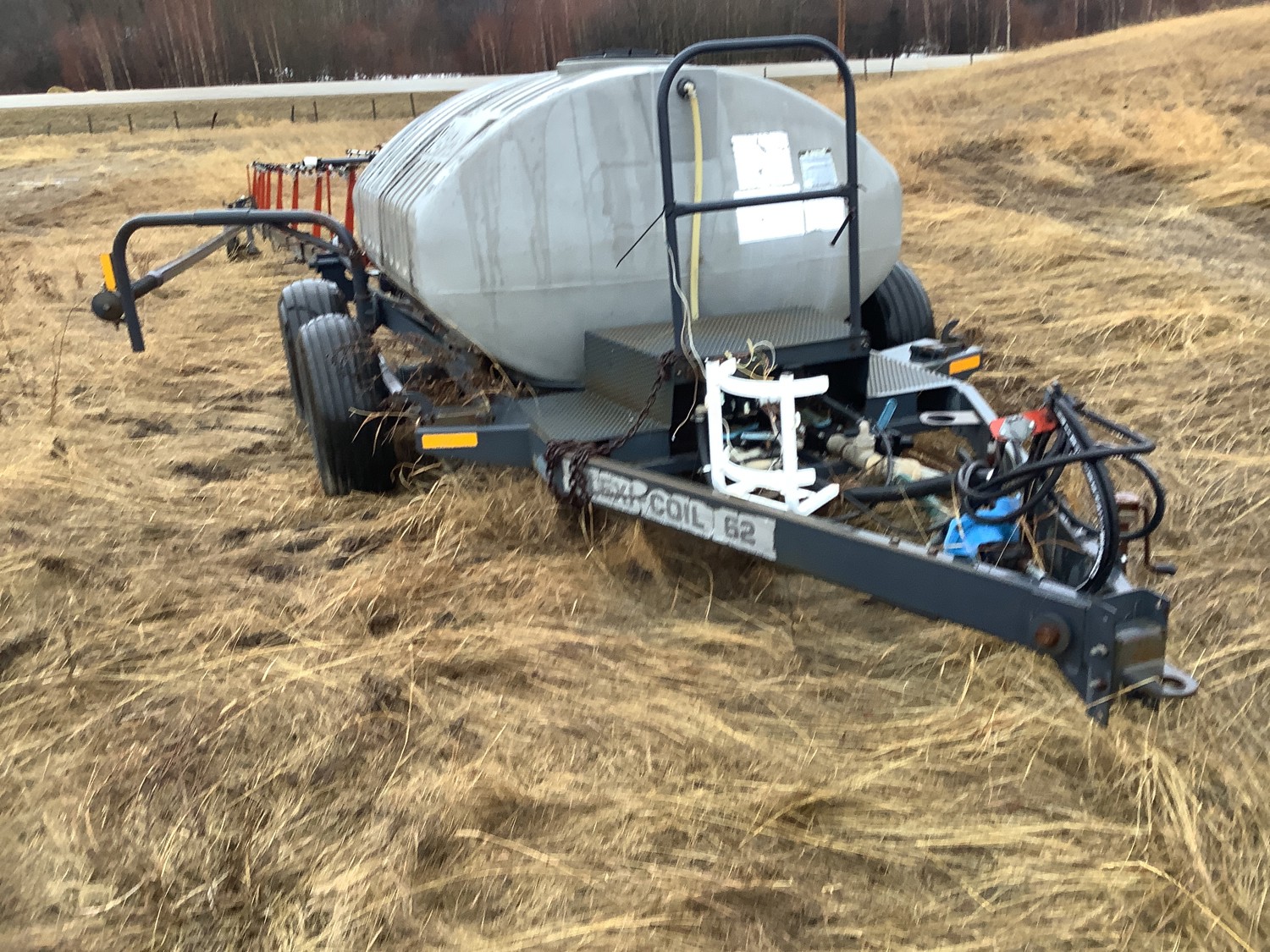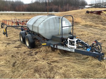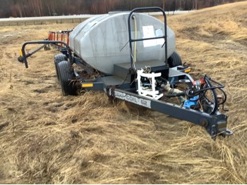800 US gallon poly tank, cab control box, walking beam on tank frame, tires