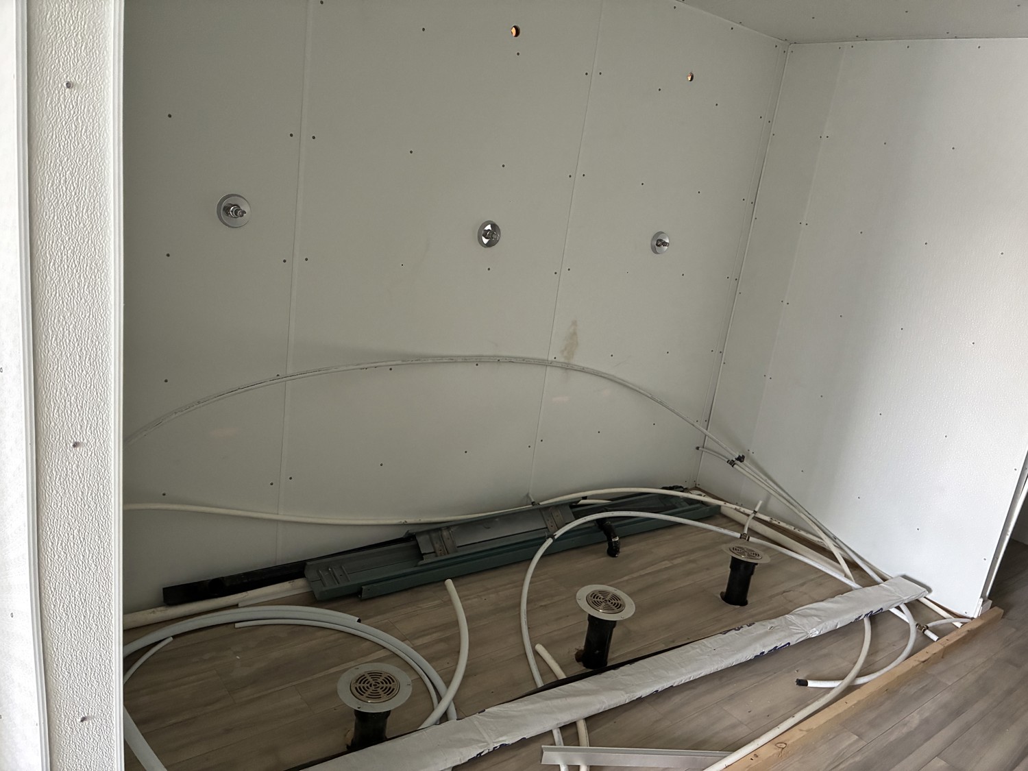 (2) toilets, (2) sinks, (4) Shower units, (3) change rooms, lighting, baseboard heaters