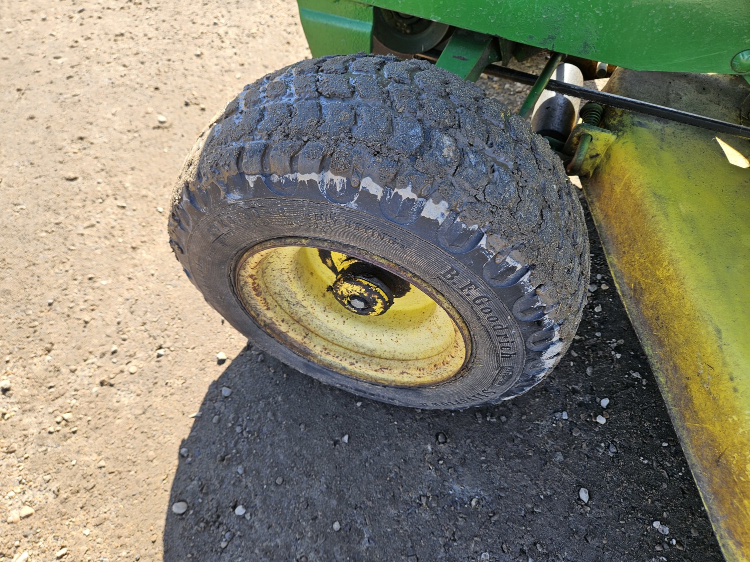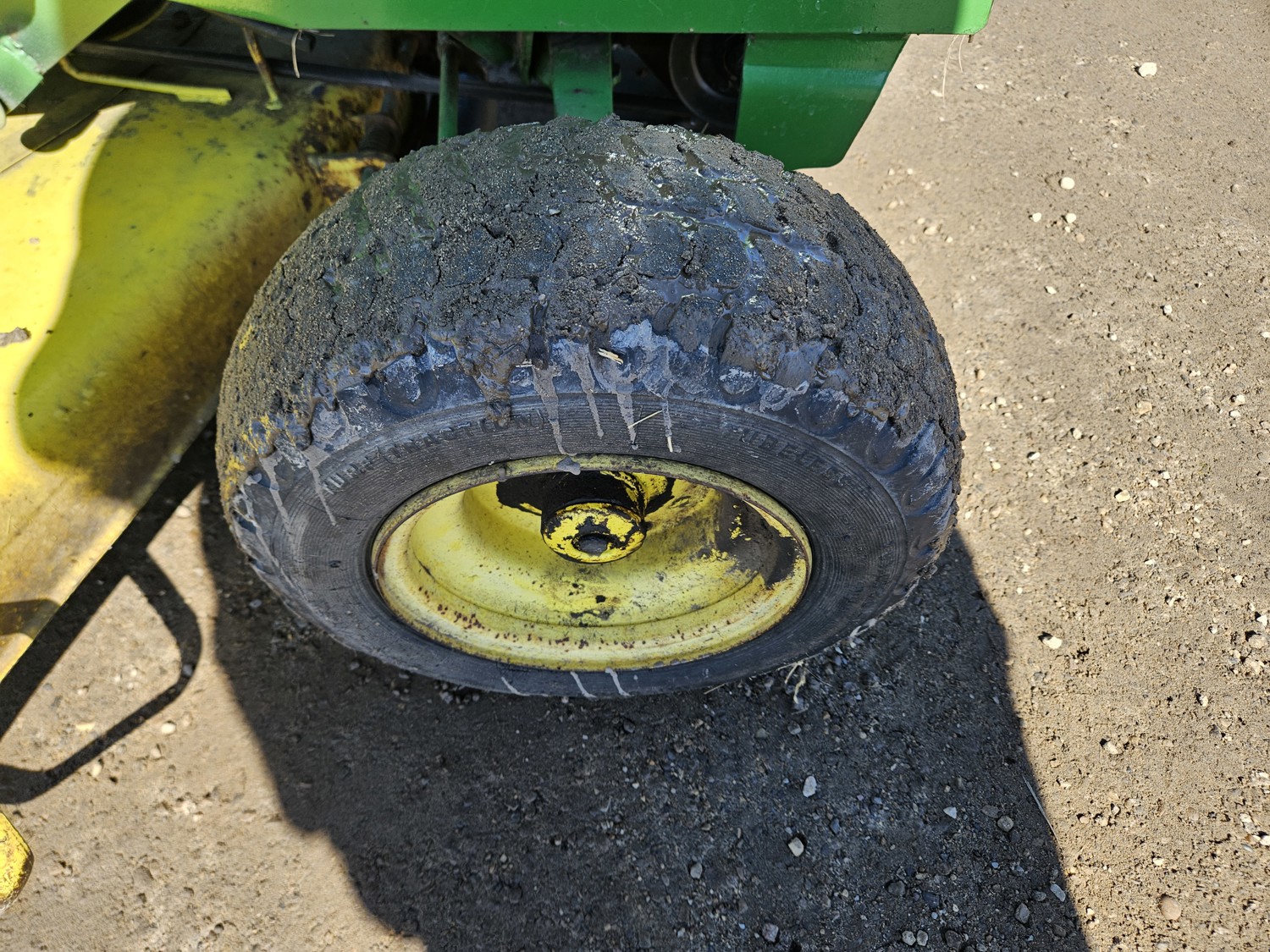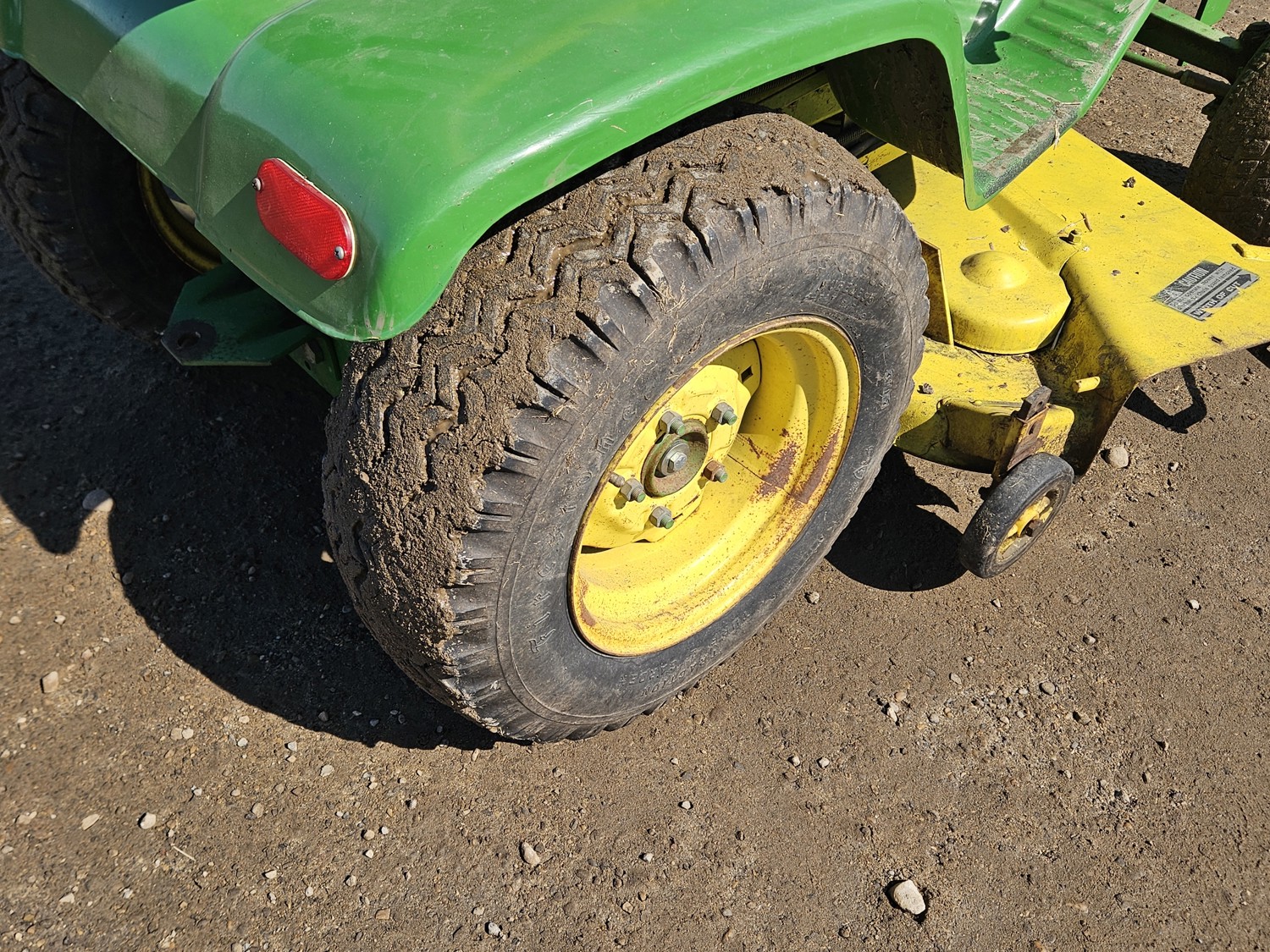 14 HP Kohler gas engine, hydrostatic transmission, 46 inch mower deck, rear hitch, electric start, 23x8.50-12 rear tires, 18x6.50-8 front tires