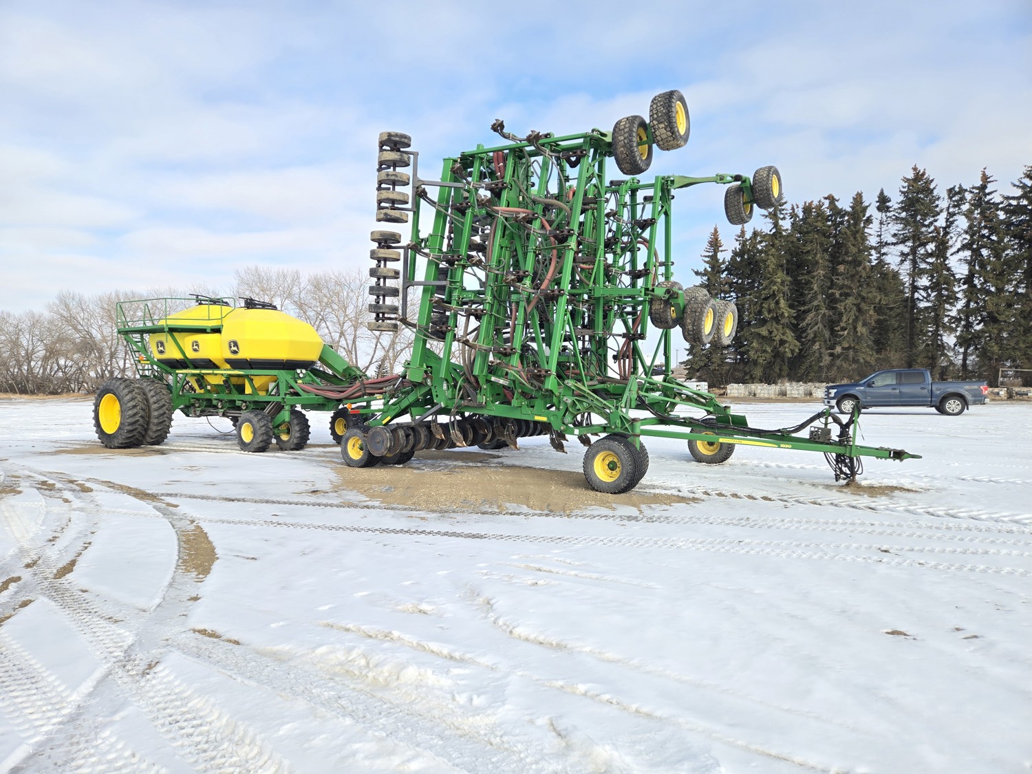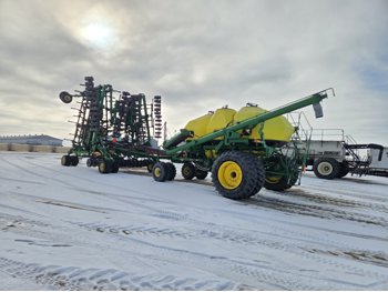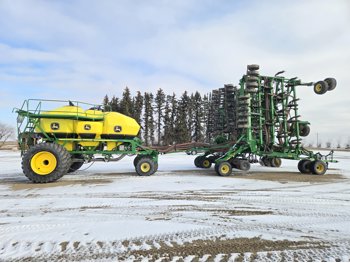John Deere 1830 64 Ft Air Drill with John Deere 1910 Tow Behind Air Cart