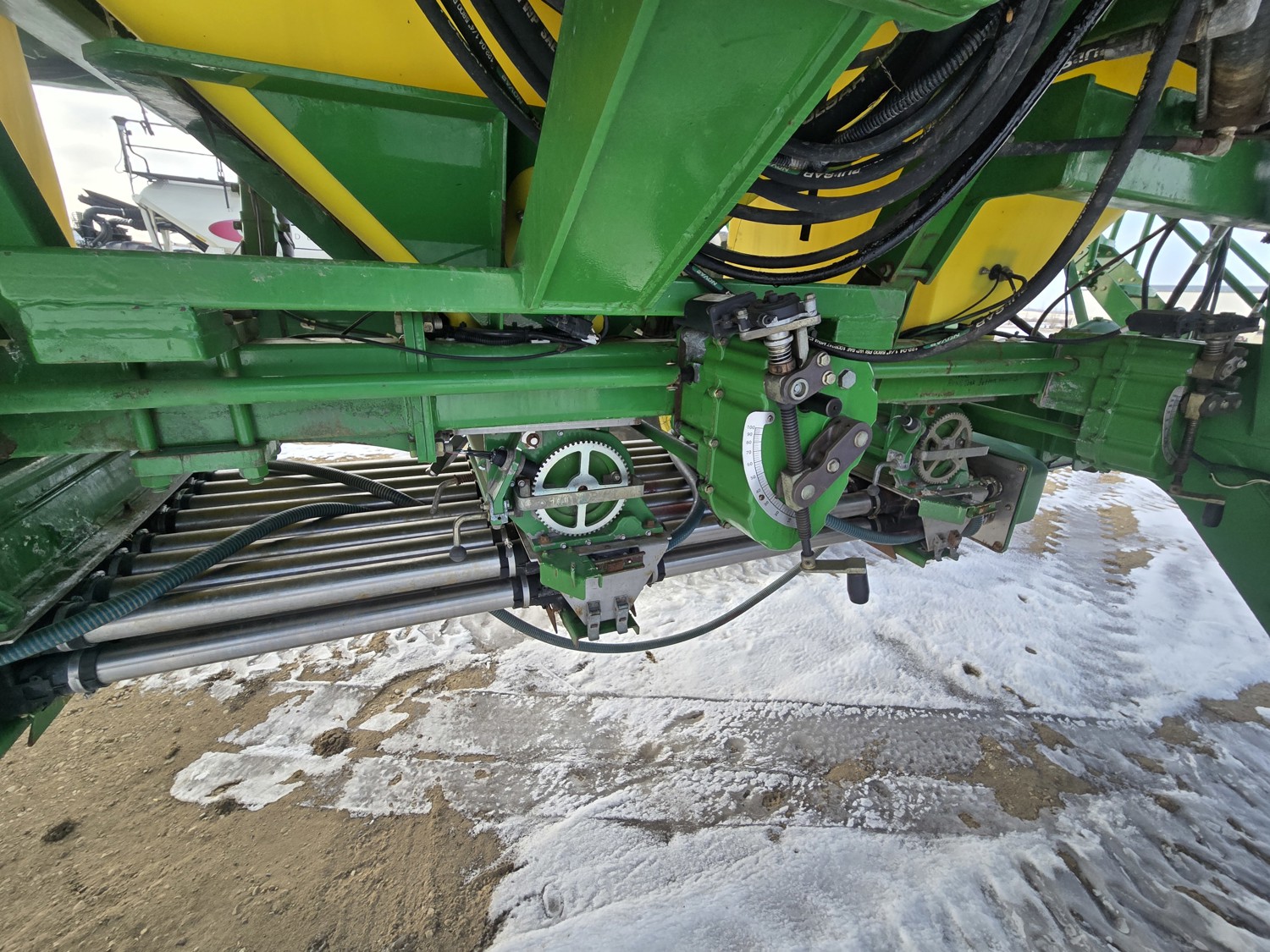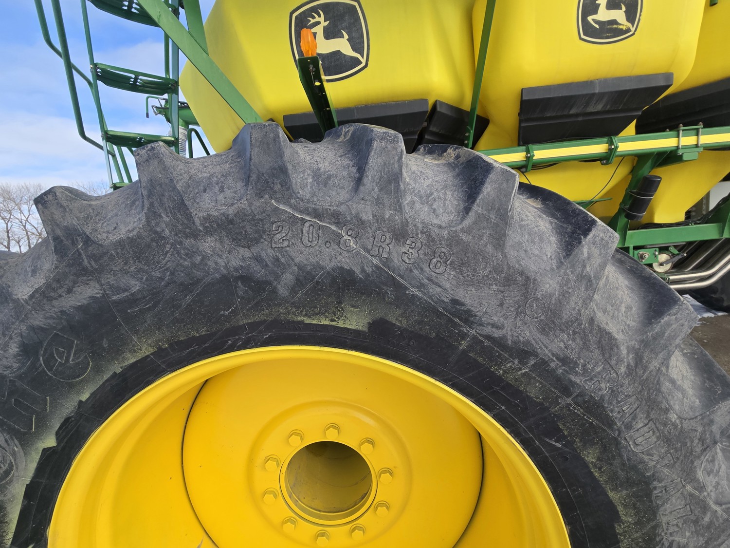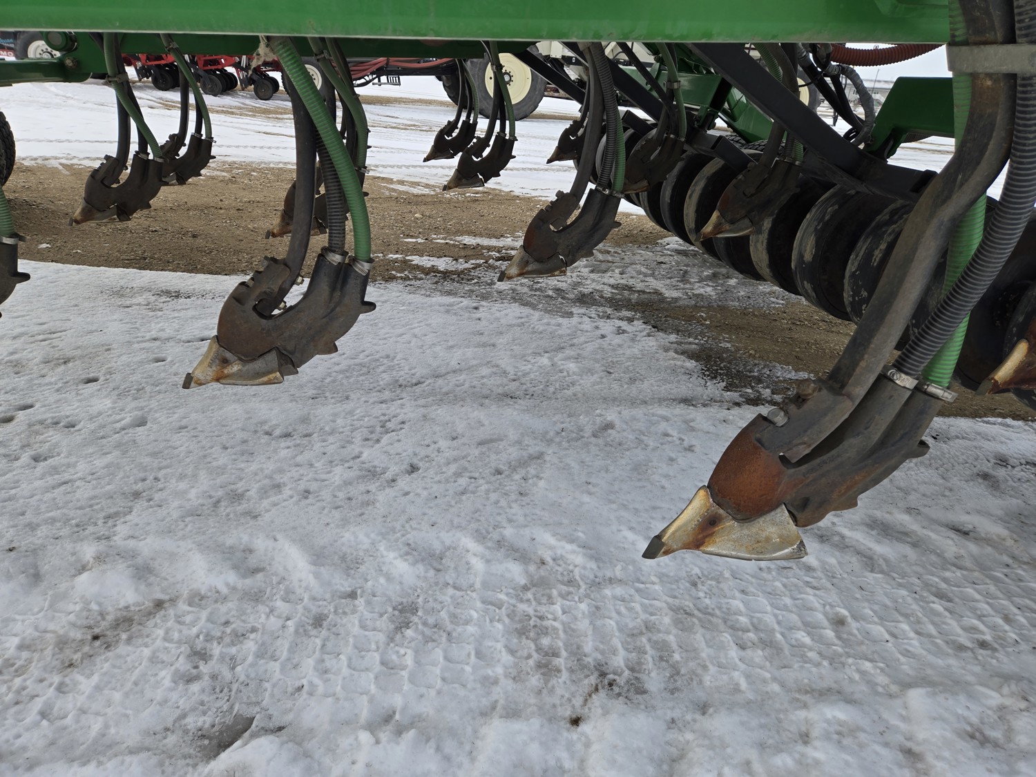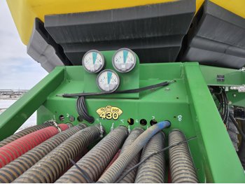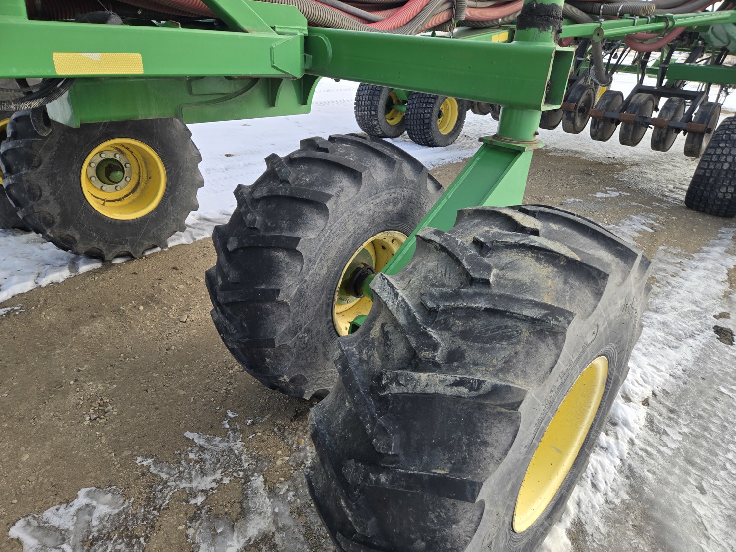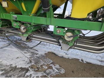 12 inch spacing, double shoot Gen 300T paired row openers, 5 inch rubber packers, seed monitor, (blockage monitors are not working), 33X15.5-16.5 duals, Air Cart: 3 compartments, 10 inch loading auger, single fan, compartment level monitors, stainless steel tubes, dual 16.5-16.1 front tires, dual 20.8R38 rear tires