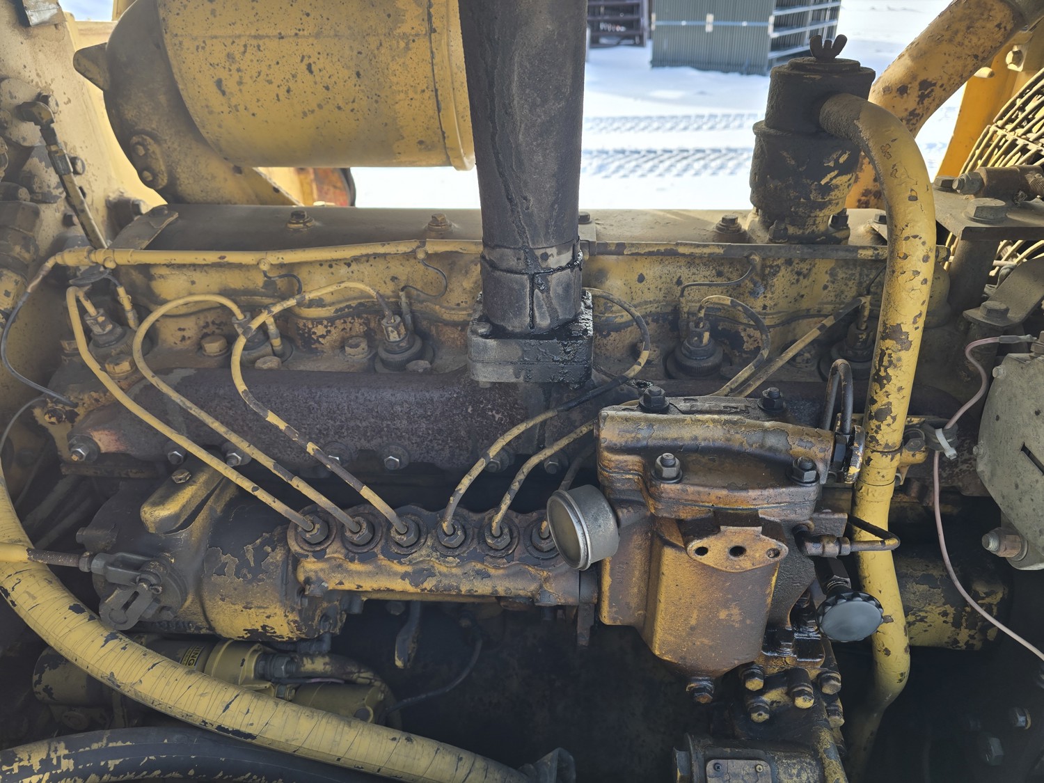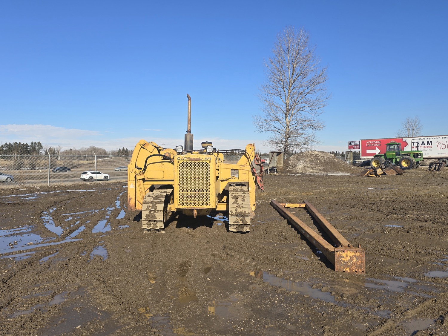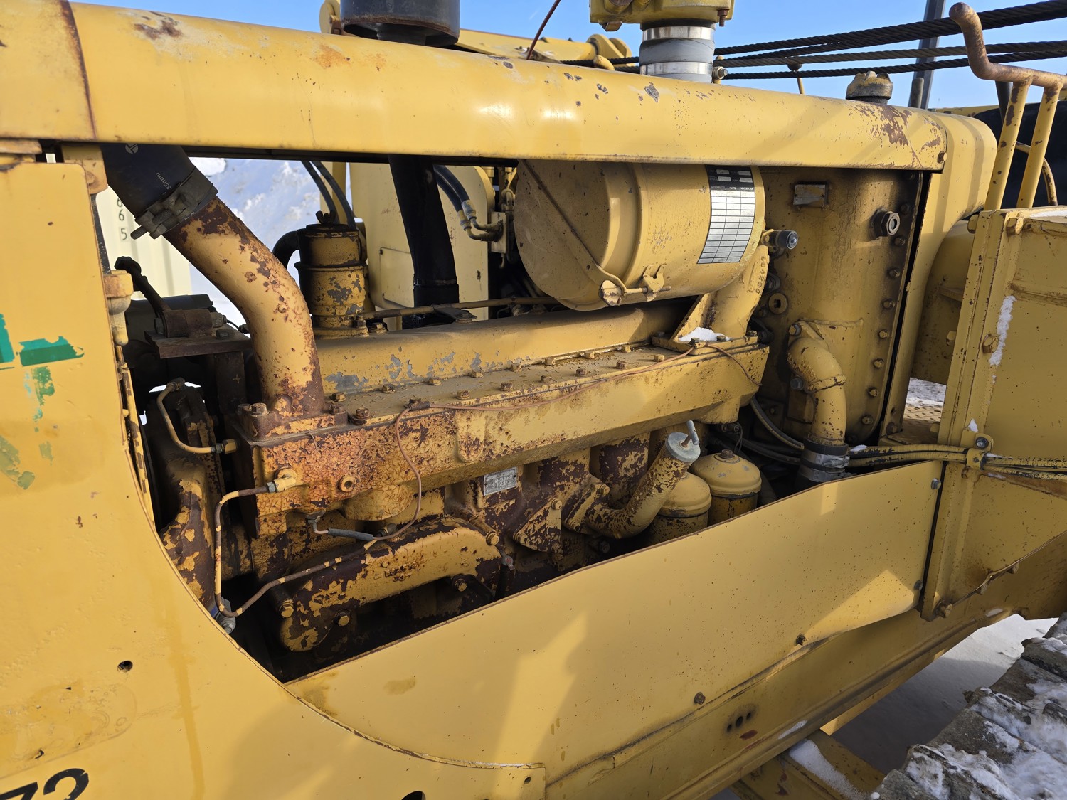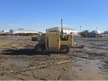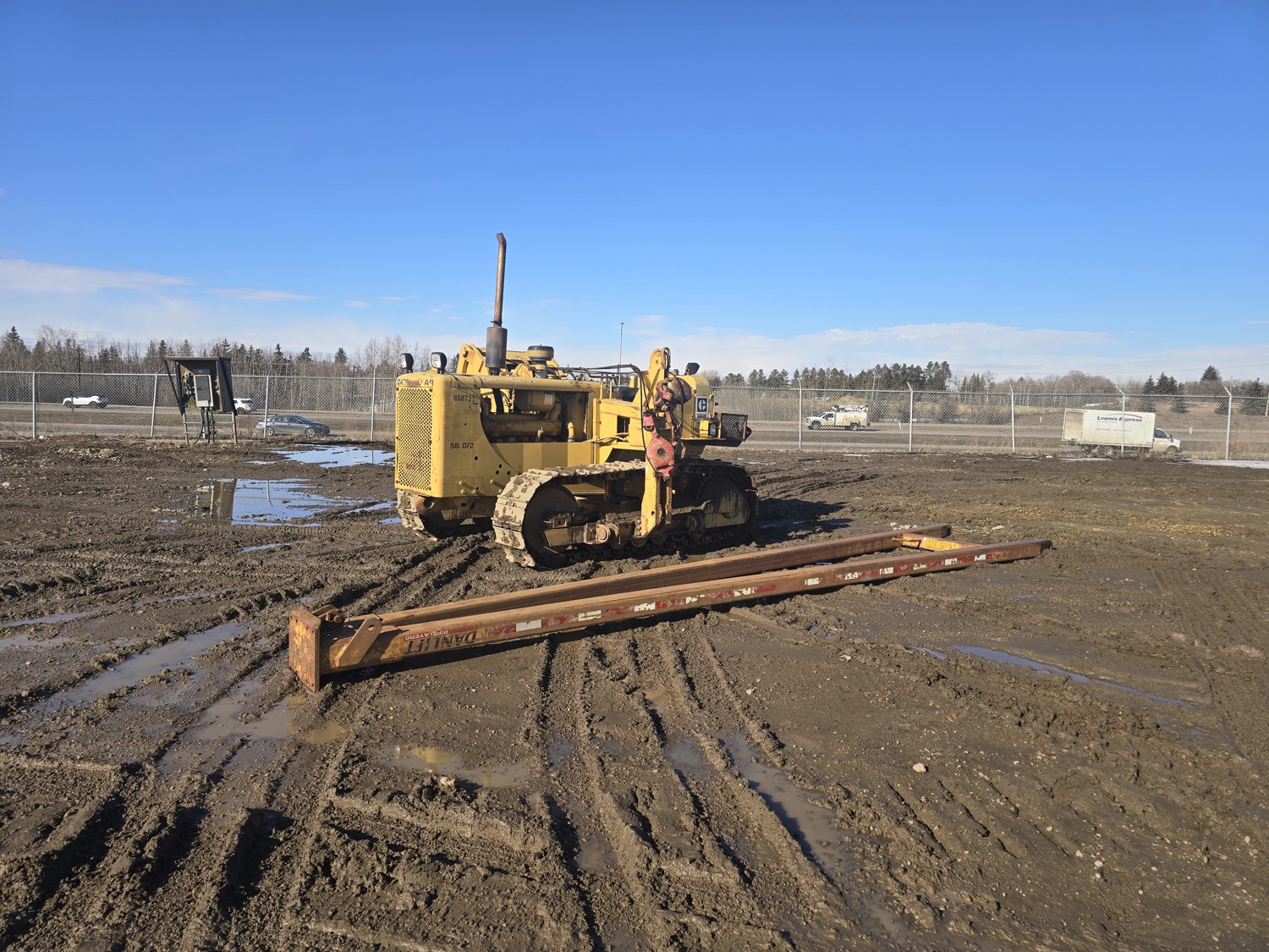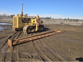 Open station, D333 diesel engine, positive air shutoff, 5 speed manual transmission, differential steering, Pull Master winch, 23 ft 6 inch boom, 18 inch track pads, single grousers, ice cleats