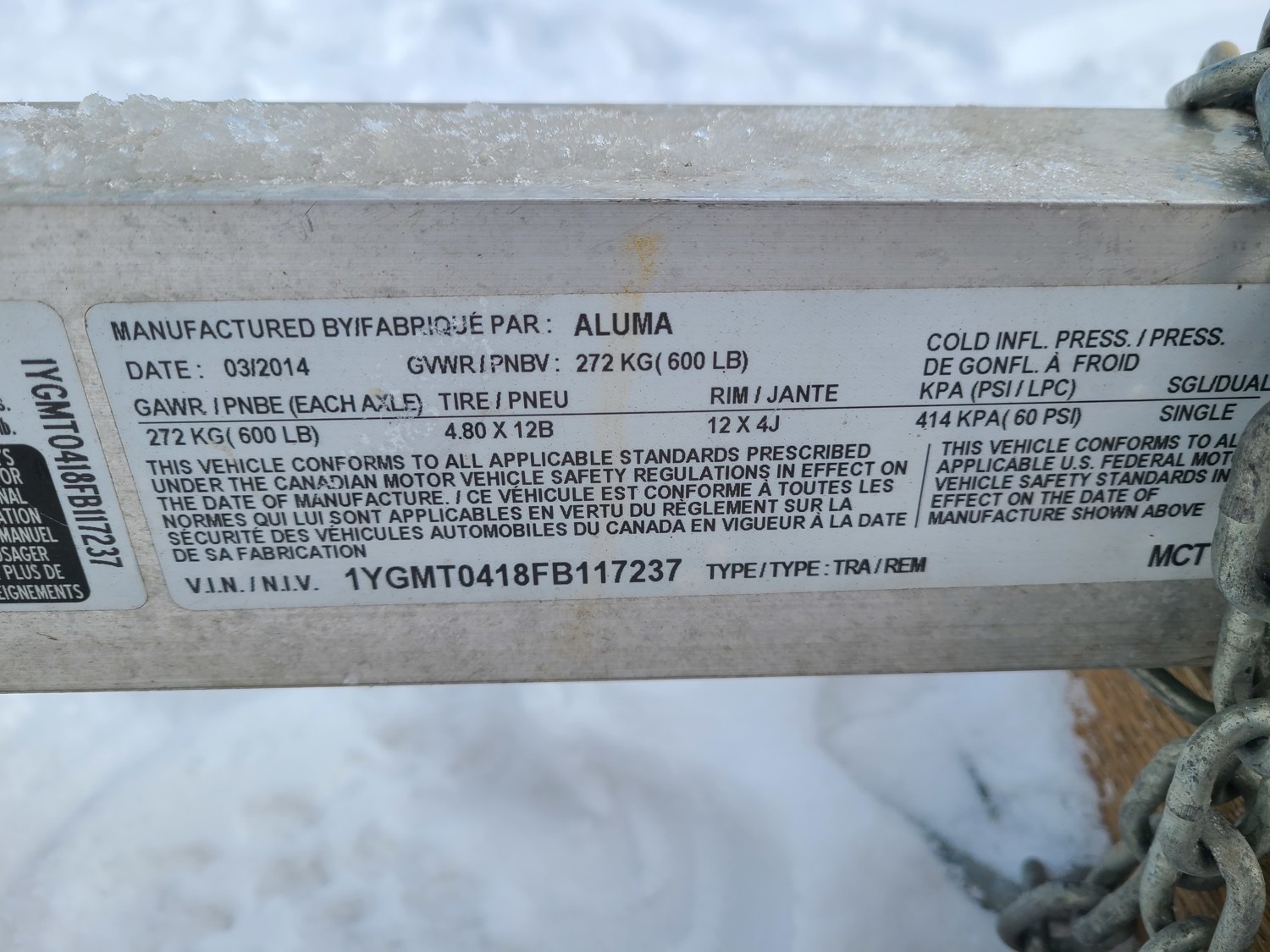 1-7/8 inch ball hitch, 600 lb axle, 4.80-12 tires,