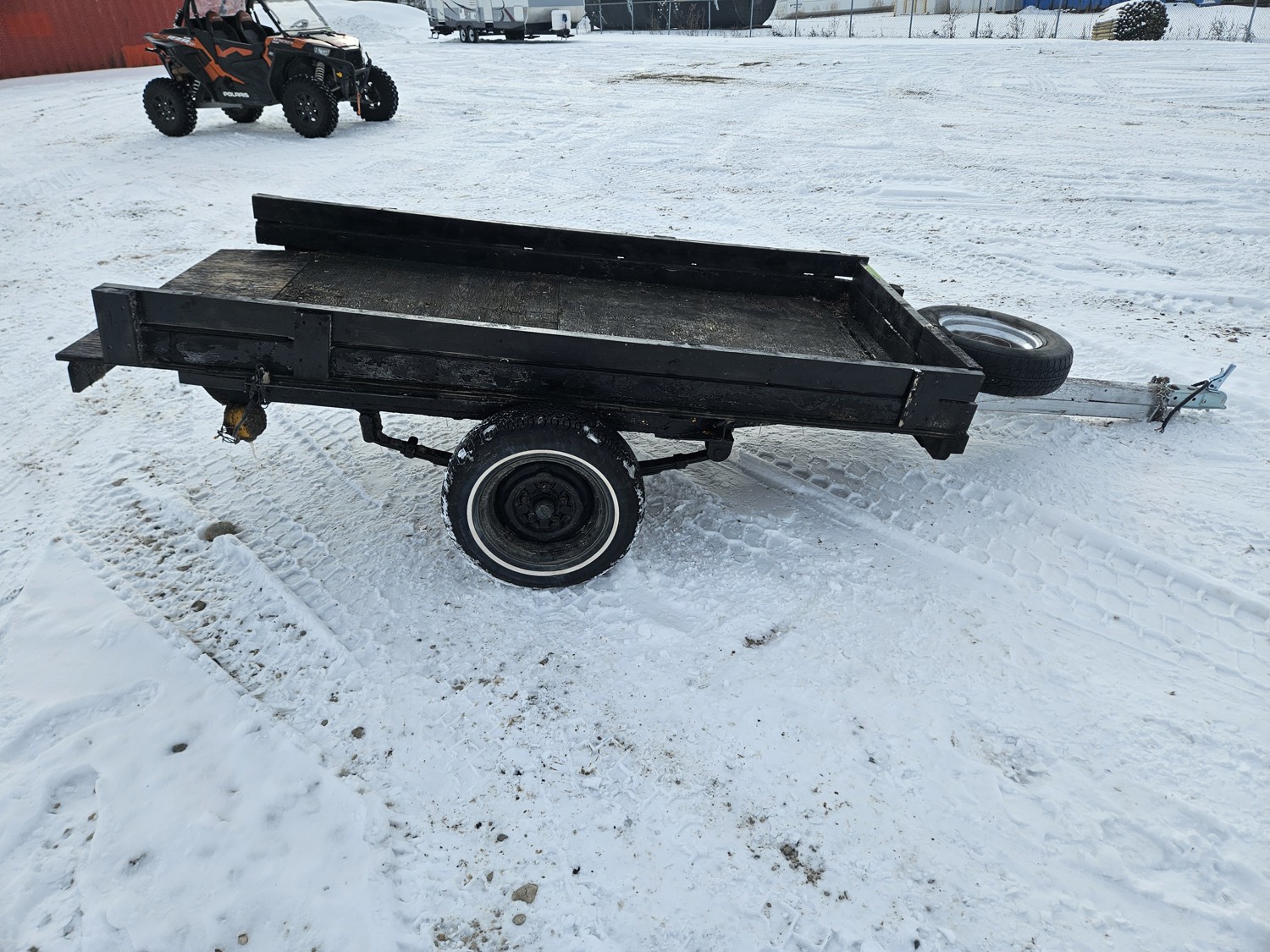 101 inch x 48 inch, wood floor, spring suspension, 2 inch ball hitch, 165/80R13 tires