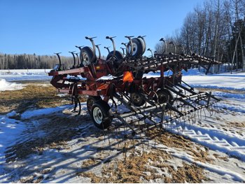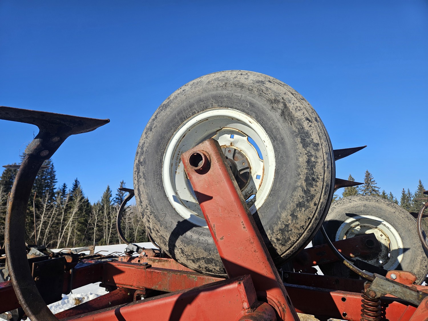 6 inch spacing, 9 inch sweeps, spring tooth harrows, walking axles on main frame, walking axles on wings, sweeps have less than 90 acres on them, 9.5-15 tires