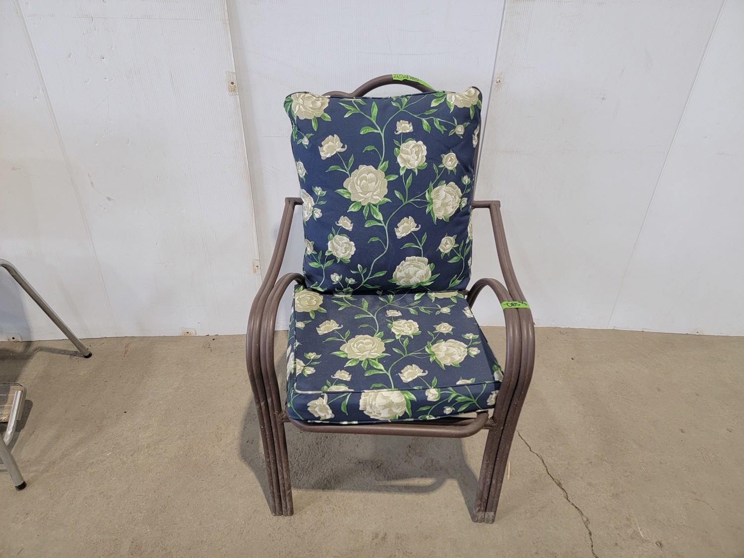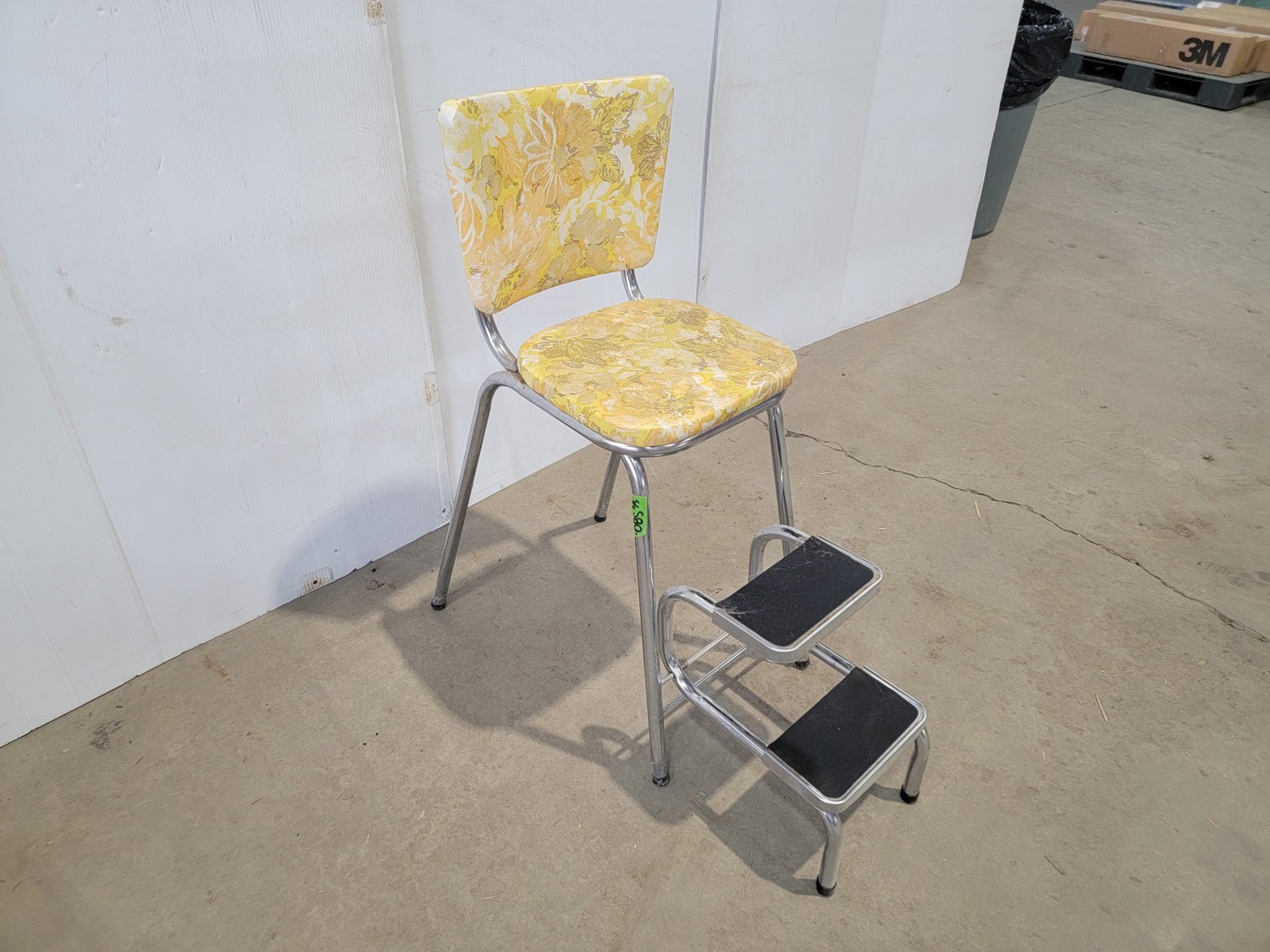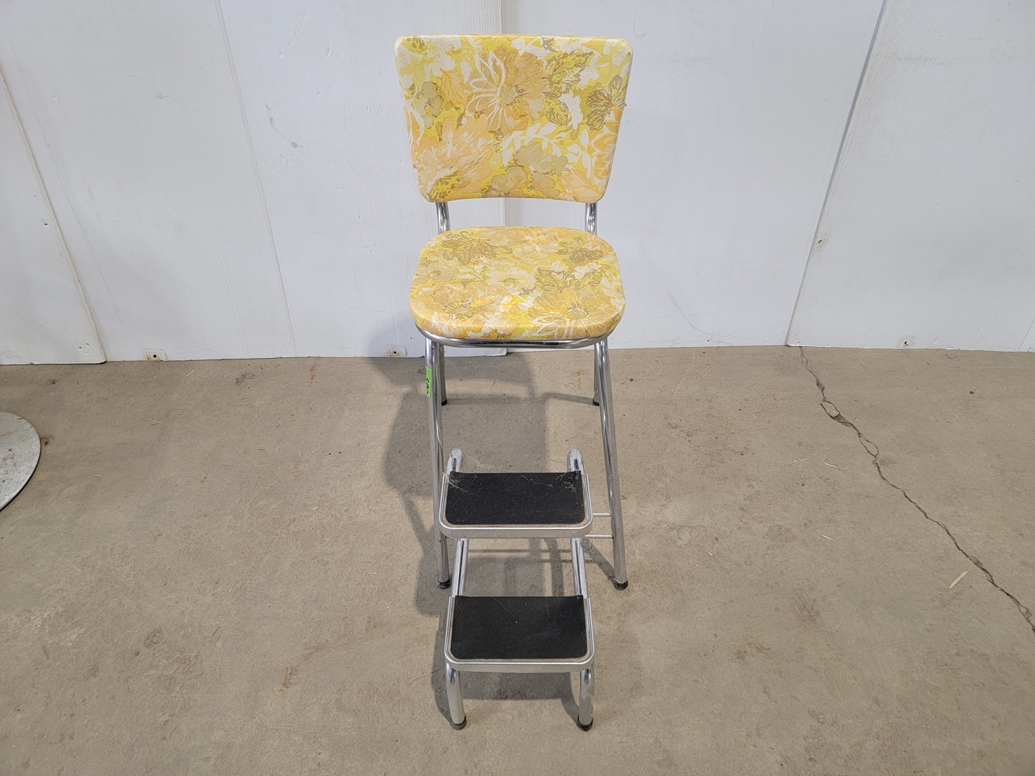 (2) Patio Chairs, Bar Stool, Vintage Step Stool and Mobility Walker