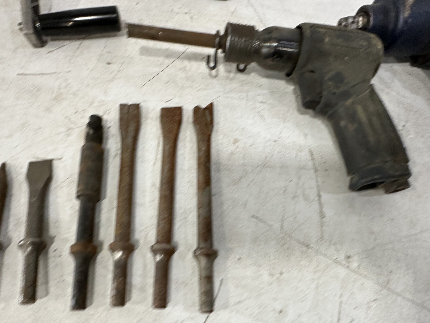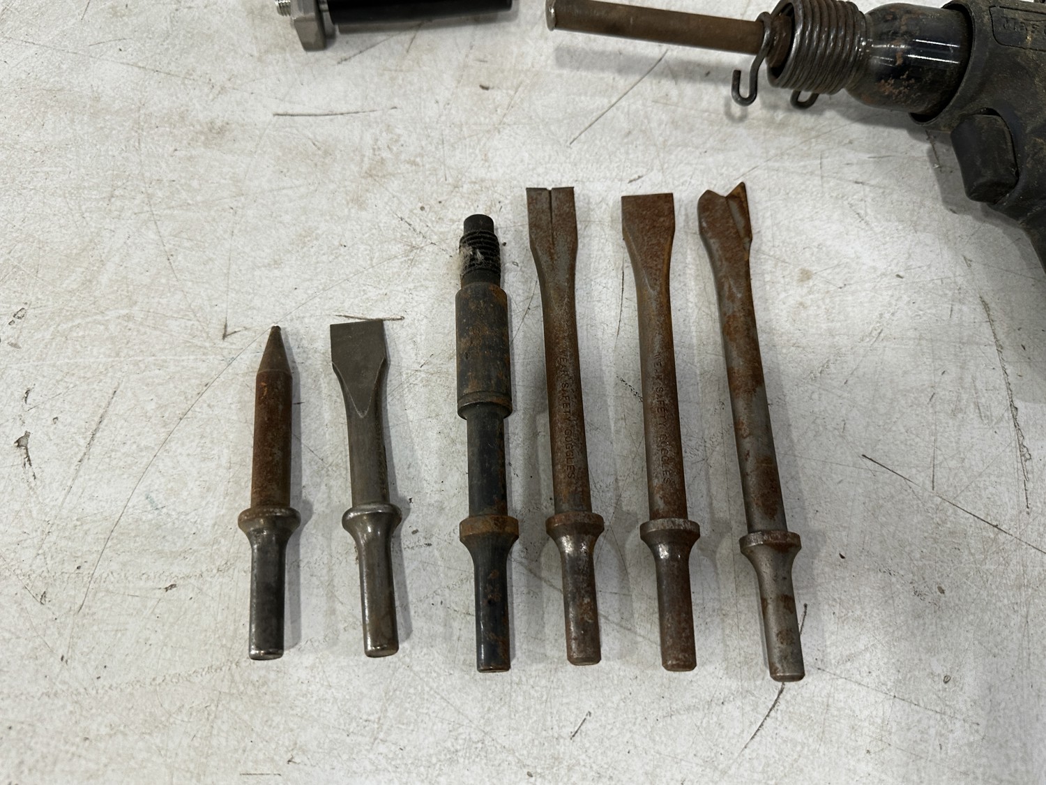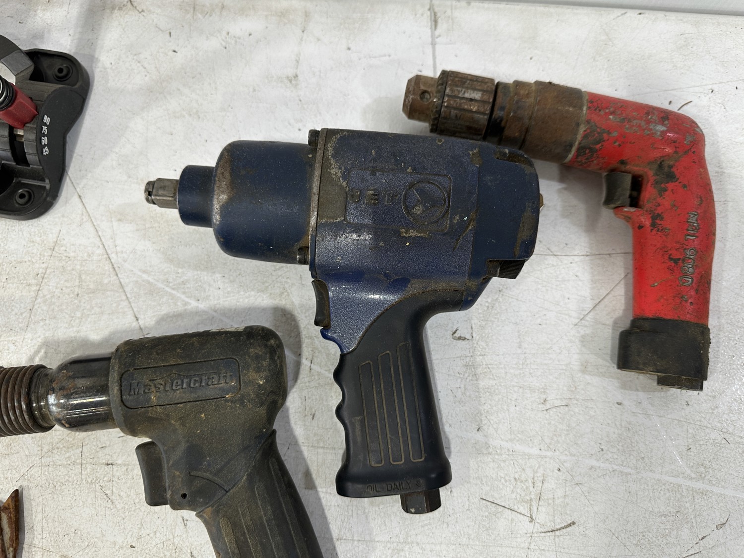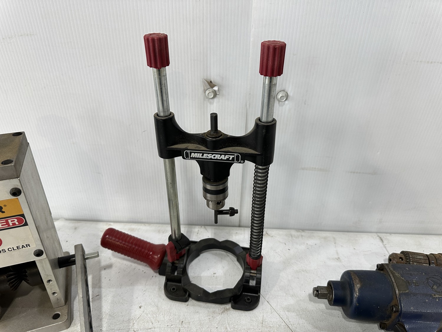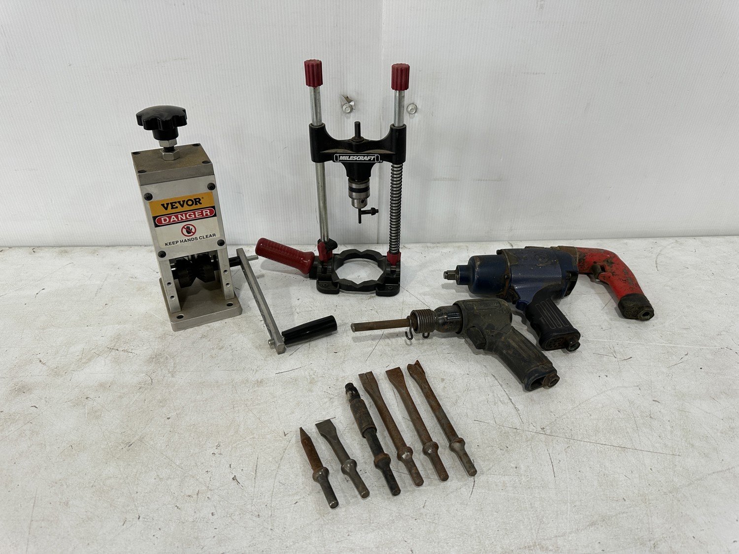 1559 (3) Air Tools with Bits, Manual Wire Stripper Machine and Manual Drill Press